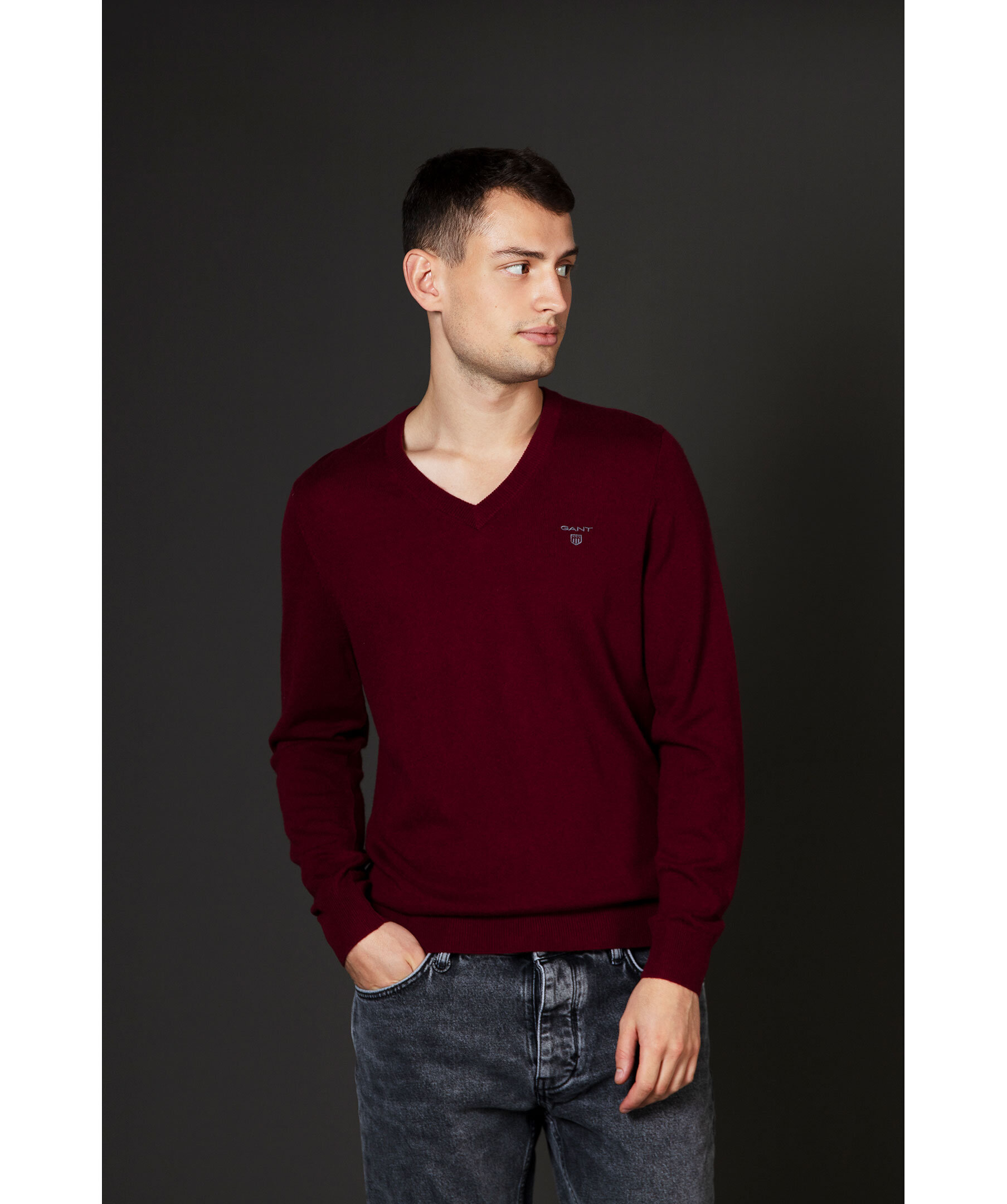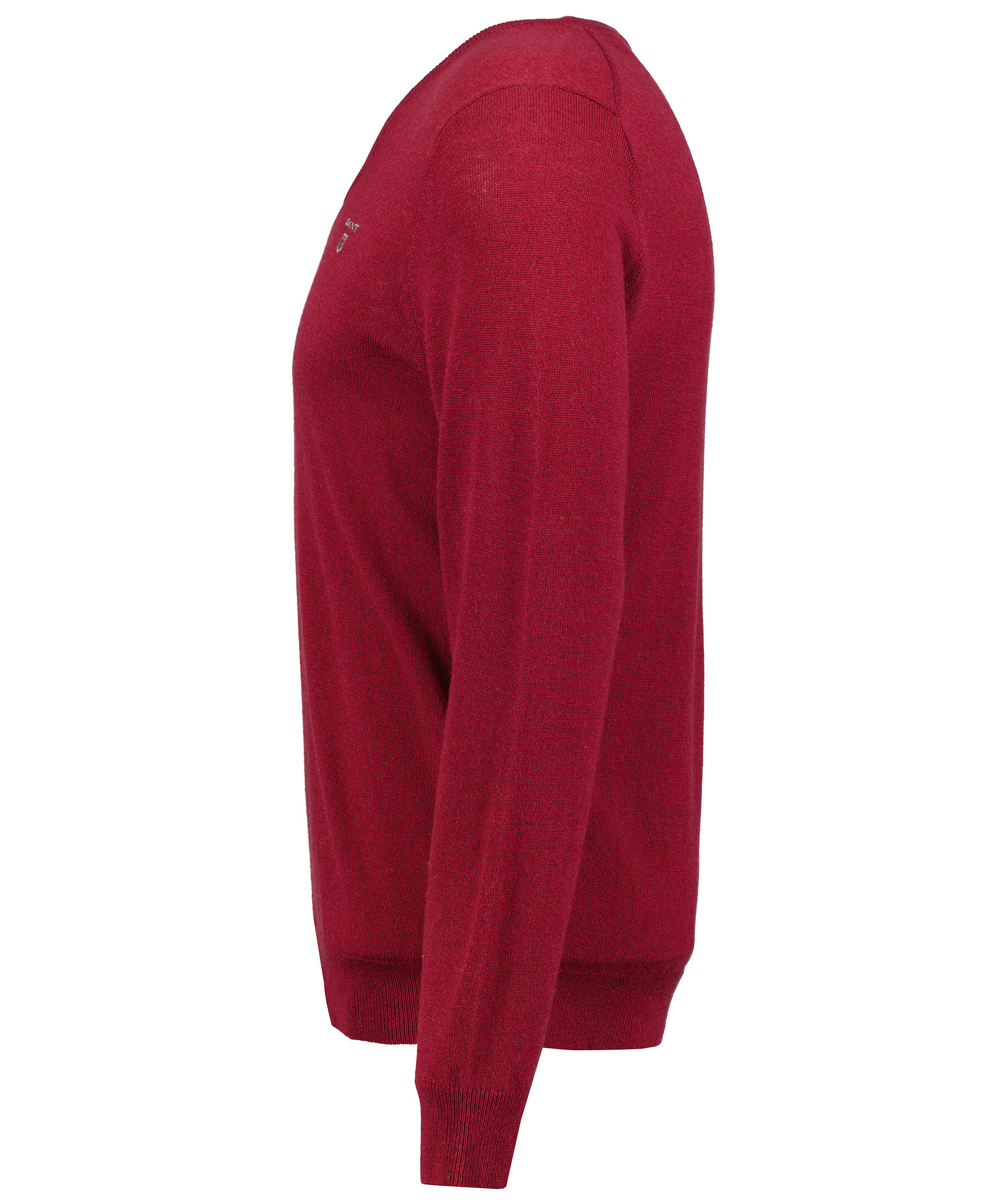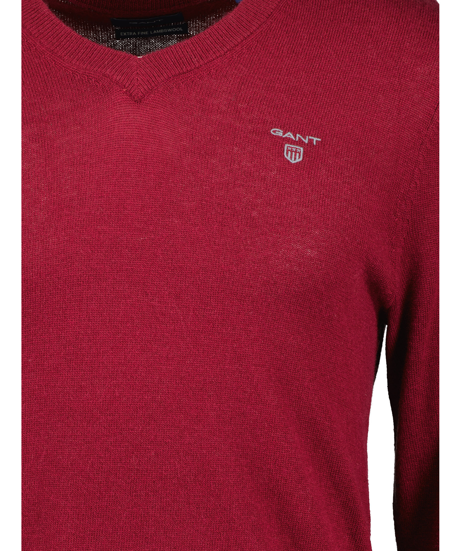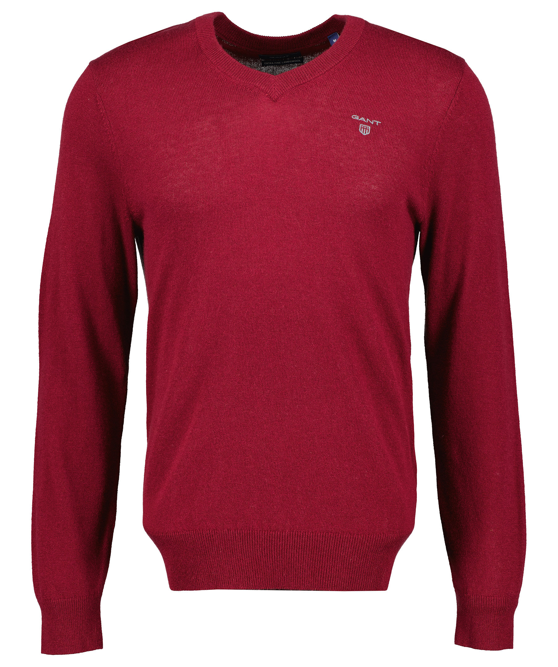 Vinröd finstickad V-ringad tröja från Gant. Tröjan är gjord i ett tunt superfint lammullsmaterial. Normal passform, ribbstickade muddar och broderad logotyp på bröstet. Perfekt att använda som en pullover.