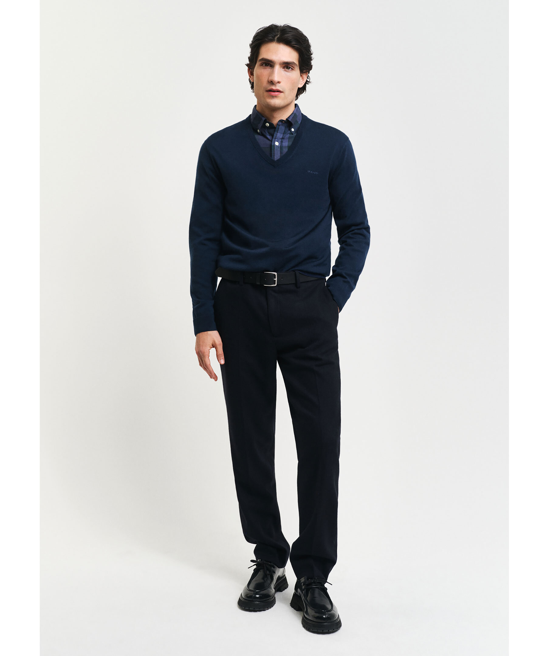 Gant Extrafine Merino V-neck - Mörkblå