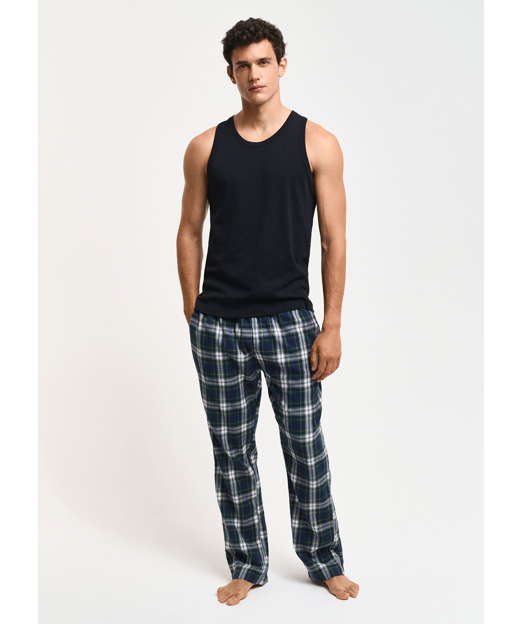 Mörkblåa rutiga pyjamasbyxor i flanell från Gant. Byxorna har elastisk midja med snörning och två sidfickor. Tillverkade i bomull.