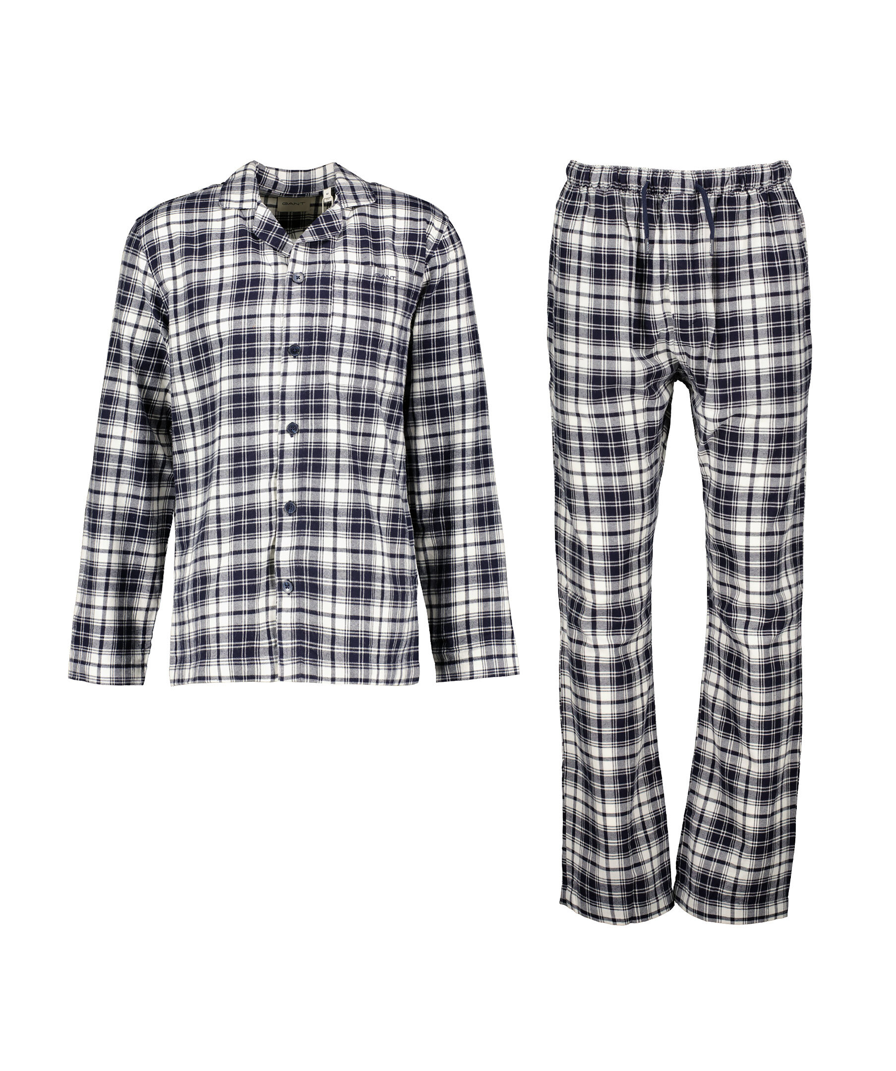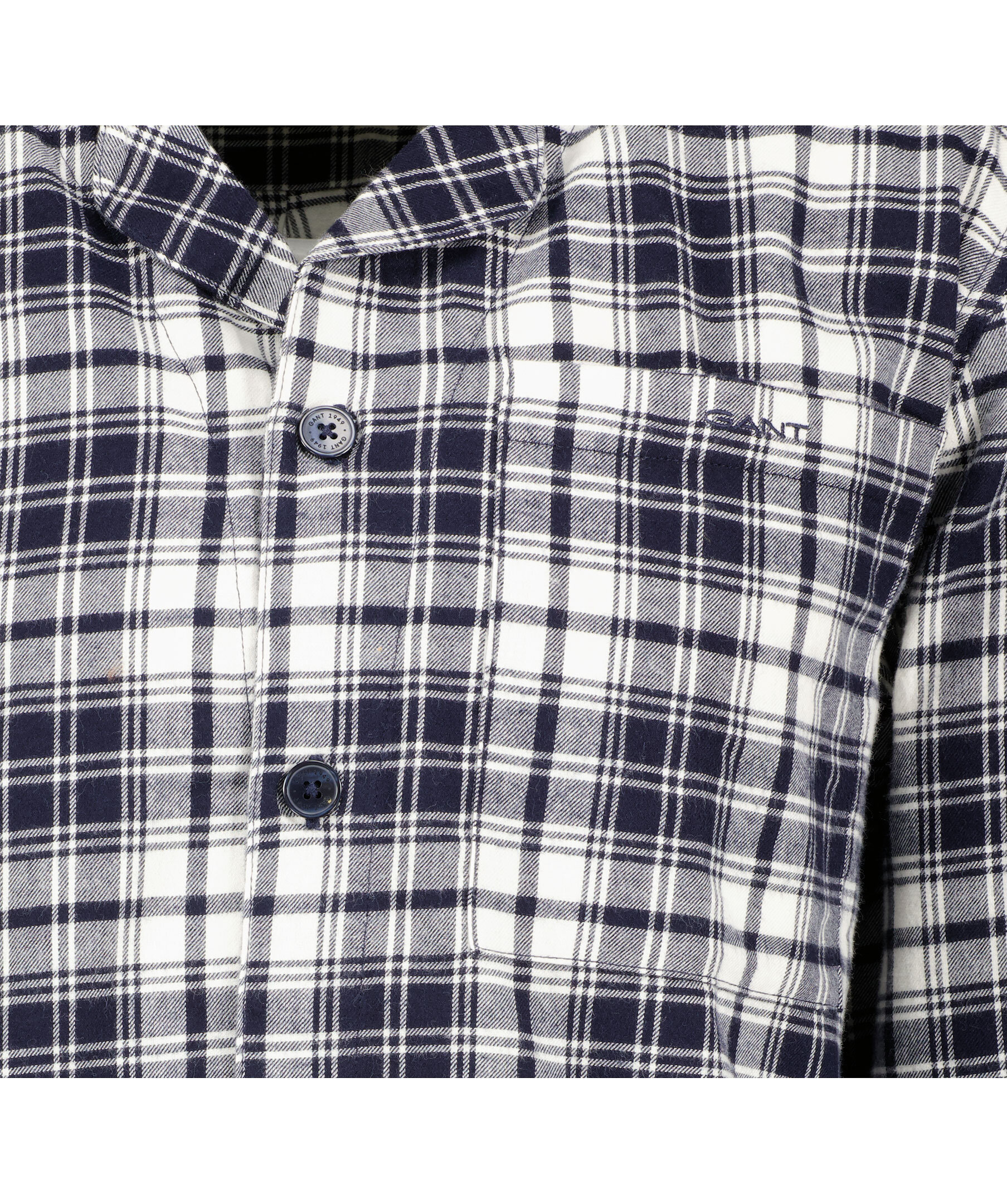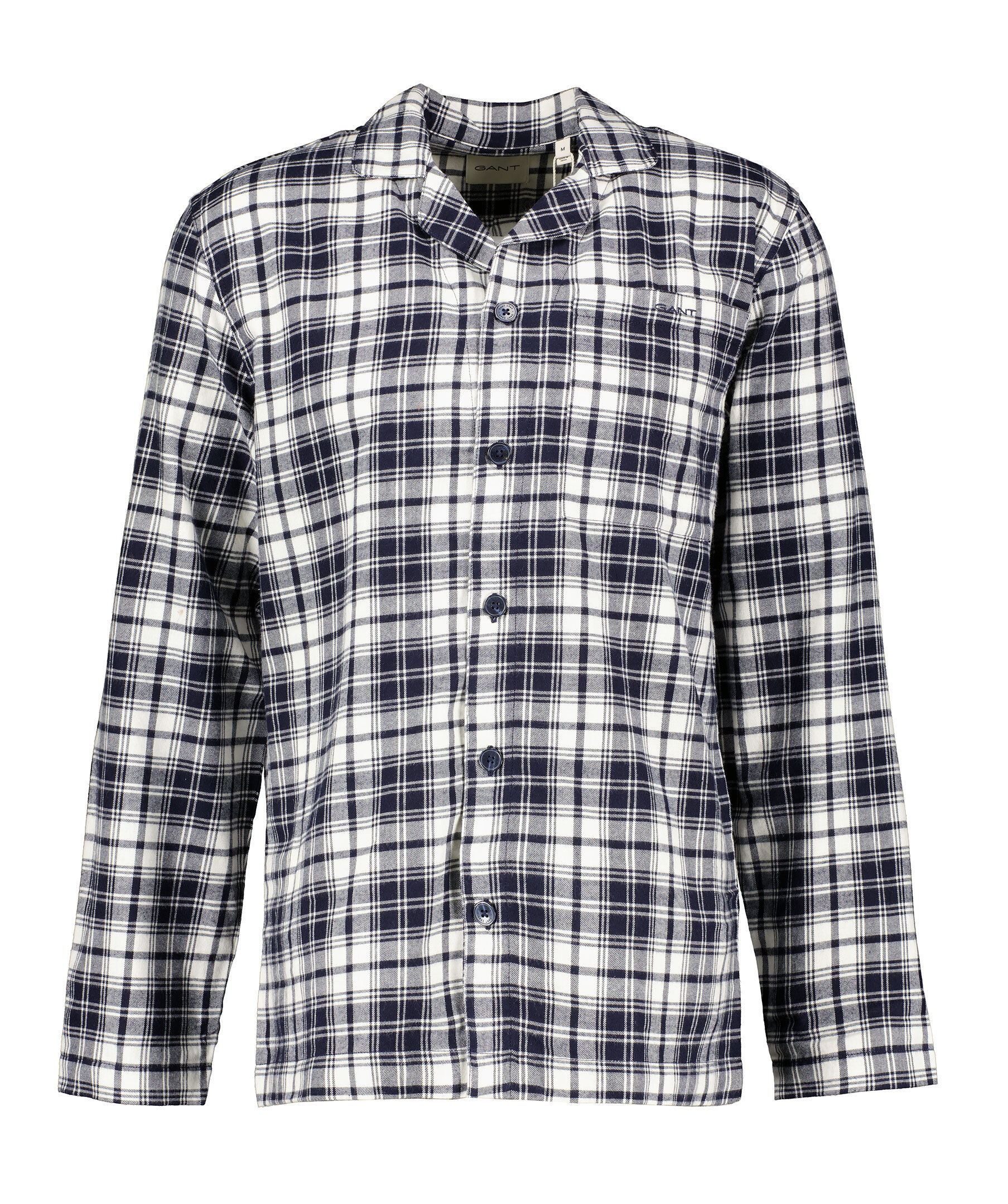 Marinblått pyjamasset i presentförpackning med en långärmad skjorta och byxor i rutig flanell från Gant. Perfekt som present. Skjortan har en bröstficka och en broderad GANT-logotyp på fickan. Byxorna har raka ben, två sidfickor, jacquardstickad resårlinning med GANT-logotyper och dragsko i midjan.