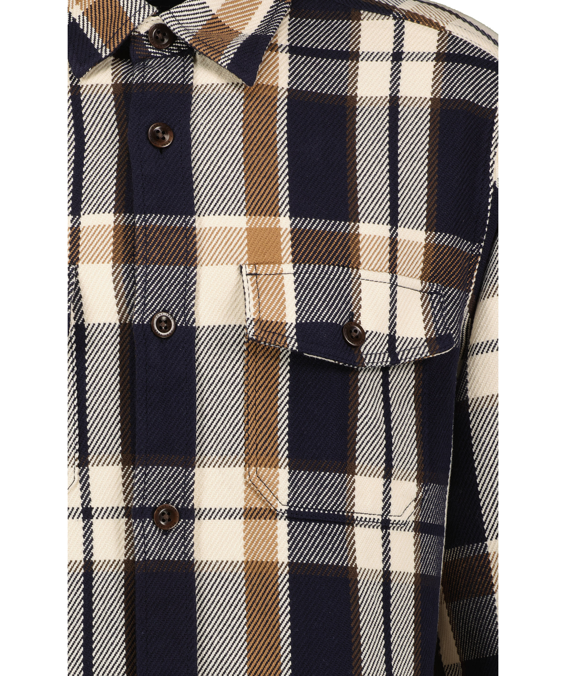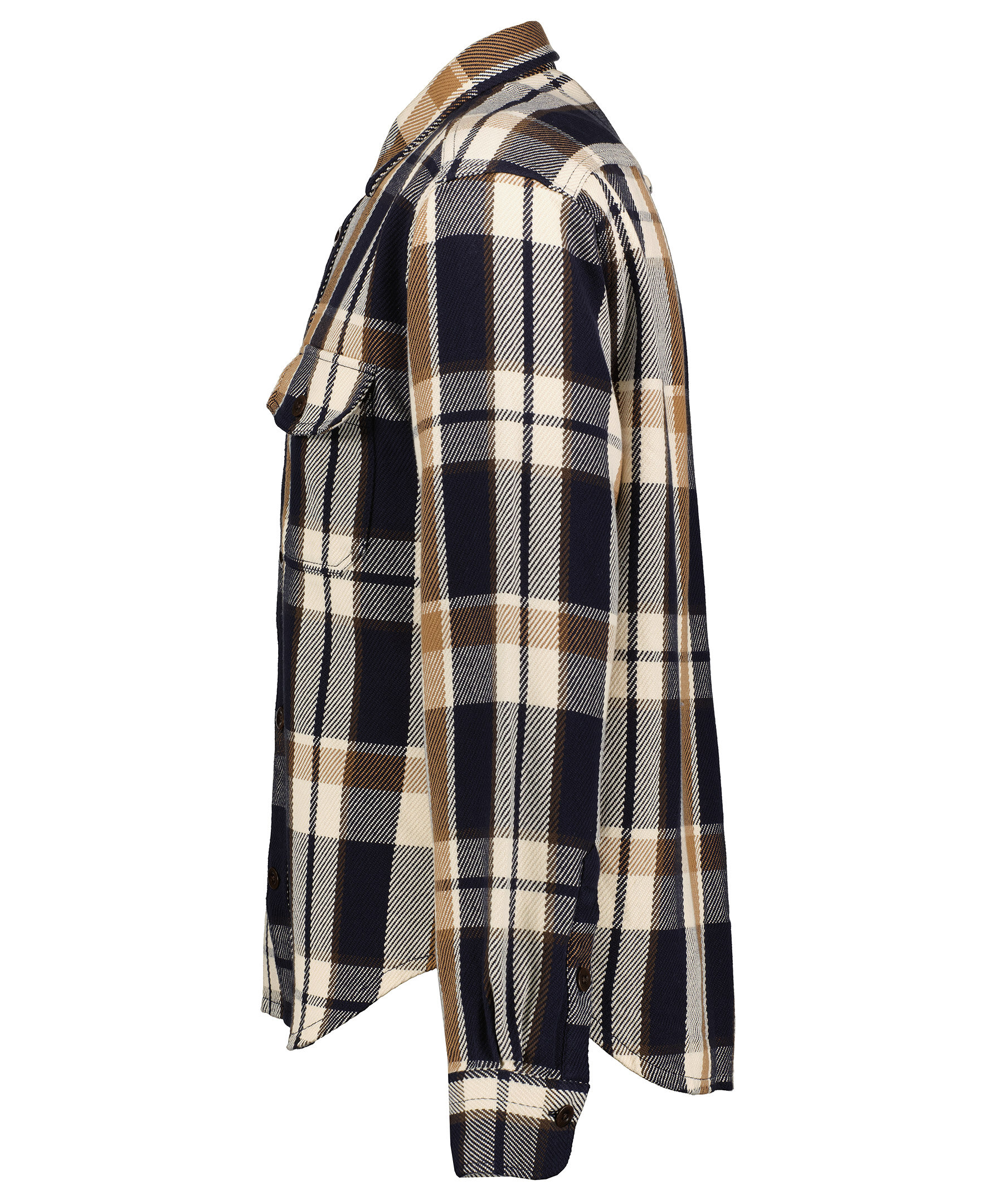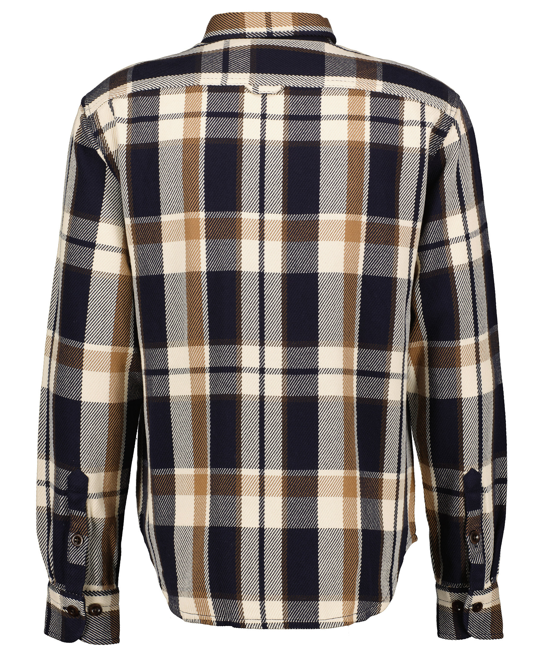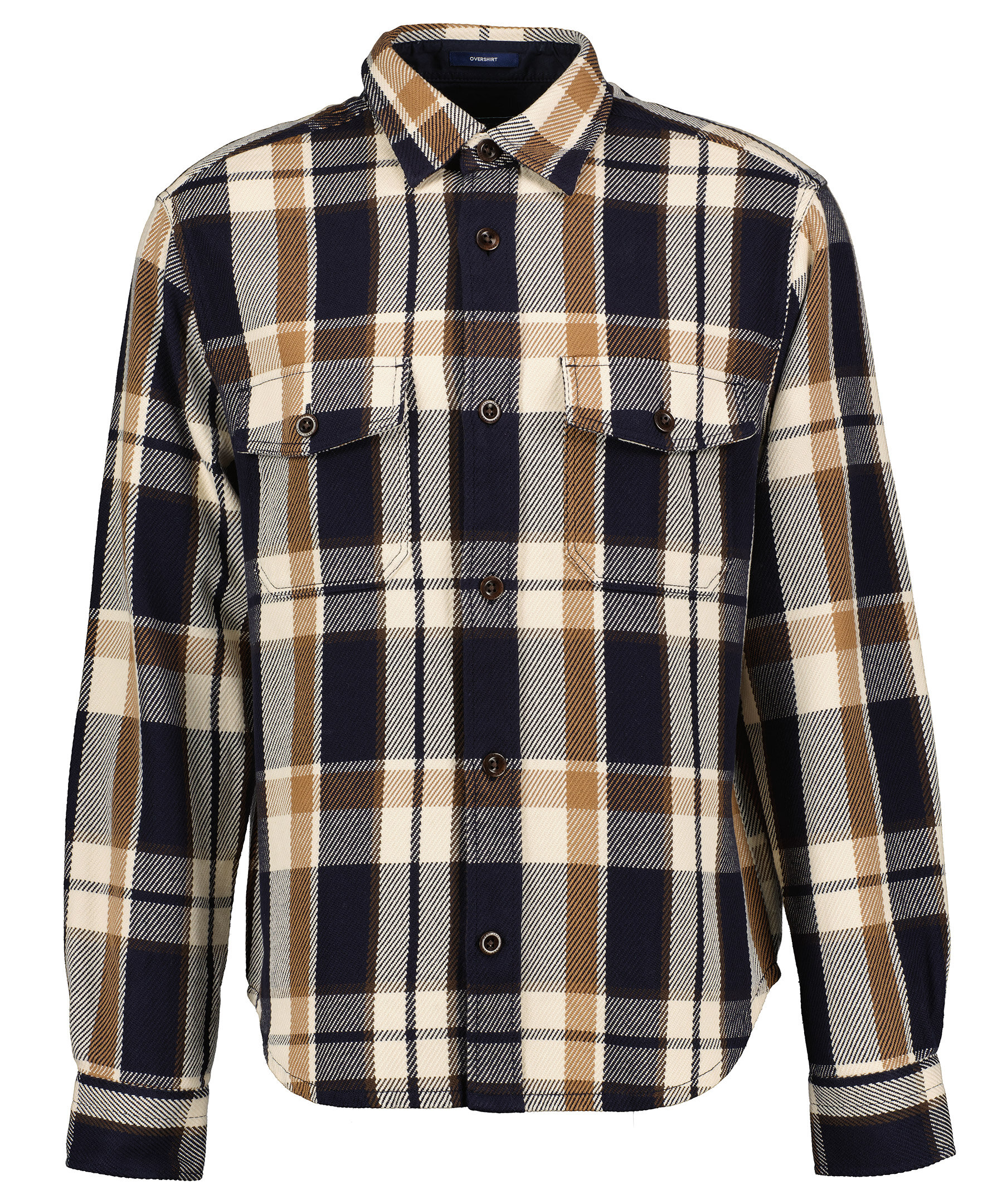Rutig skjorta i kraftigt twilltyg från Gant. Skjortans färger går i marinblått, krämvitt och brunt. Två bröstfickor med ficklock, enkel krage och locker loop i ryggen. Använd som skjorta, overshirt eller en lätt jacka.