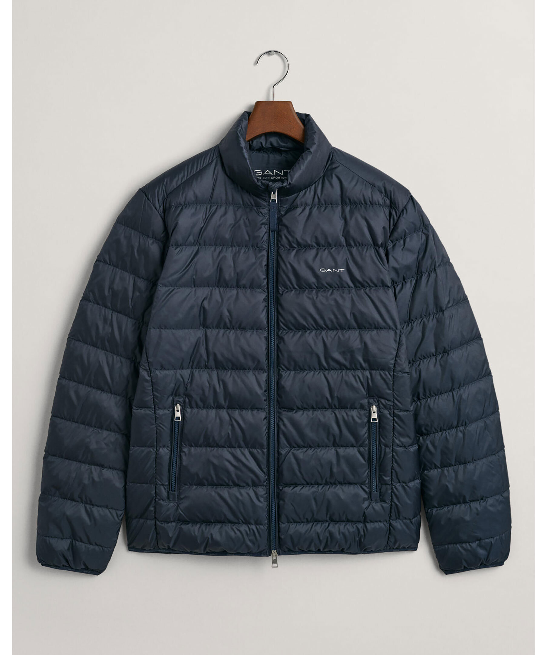 Blå dunjacka från Gant. Jackan stängs med tvåvägsdragkedja och har två sidfickor med dragkedja, resårfåll samt logotyp på bröstet. Jackan är vattenavvisande. Tillverkad i polyester.