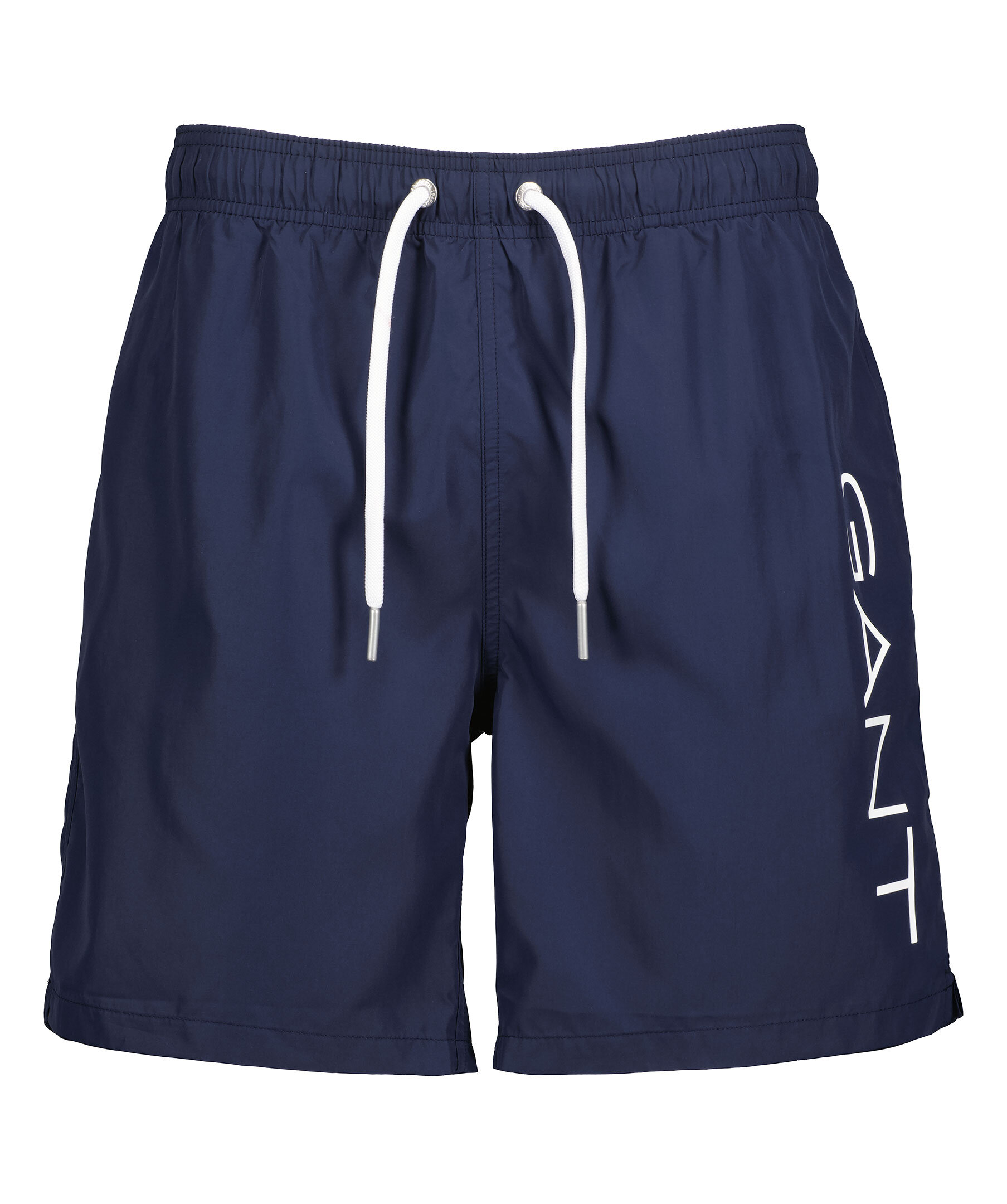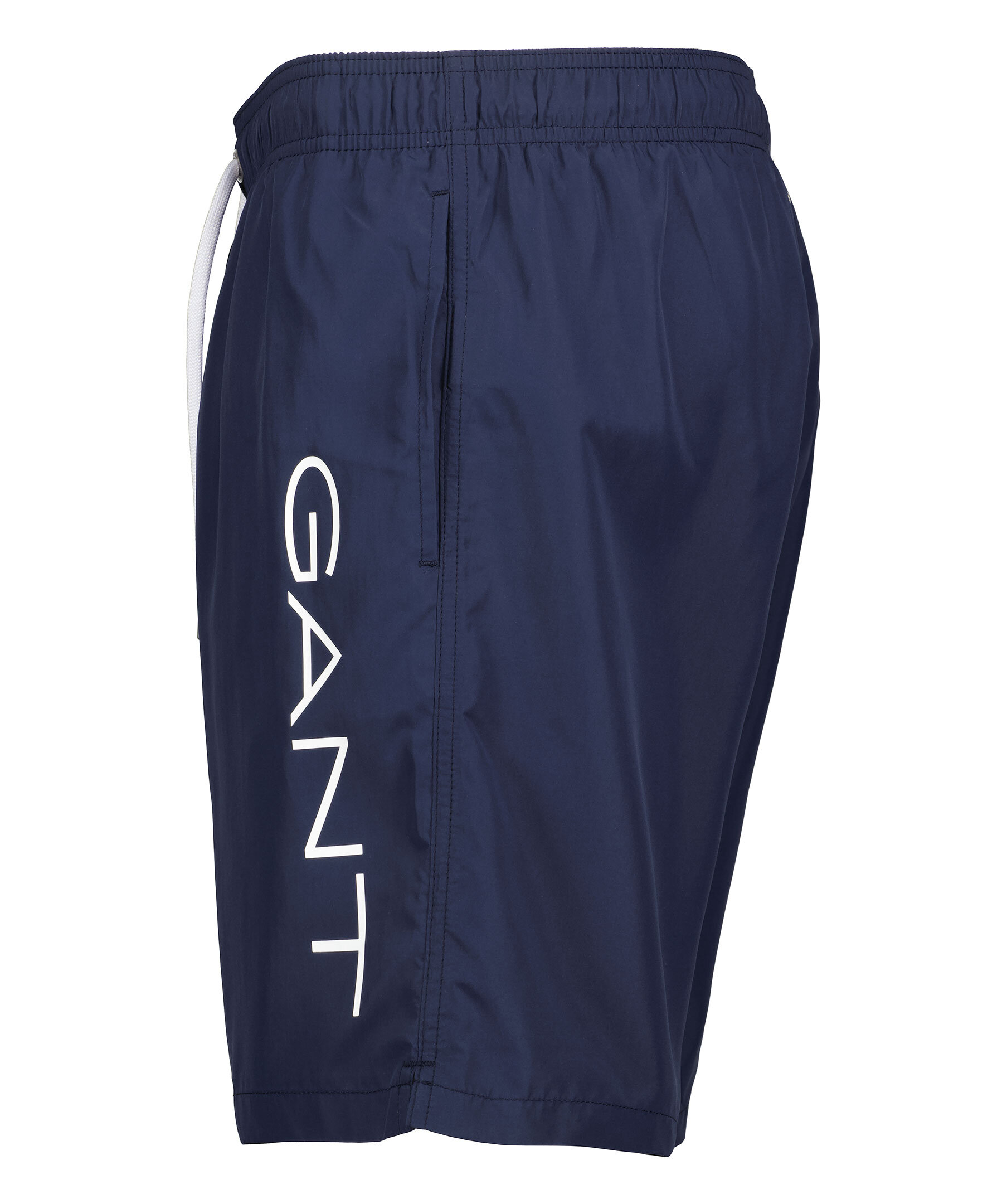 Marinblåa badshorts från Gant. Tillverkade i återvunnen polyester. Klassisk längd med resårlinning och dragsko, samt två sidfickor. Klassiska och praktiska badshorts med innerbyxa i mesh samt ett tryckt GANT-märke fastsytt på nedre delen av vänster ben.
