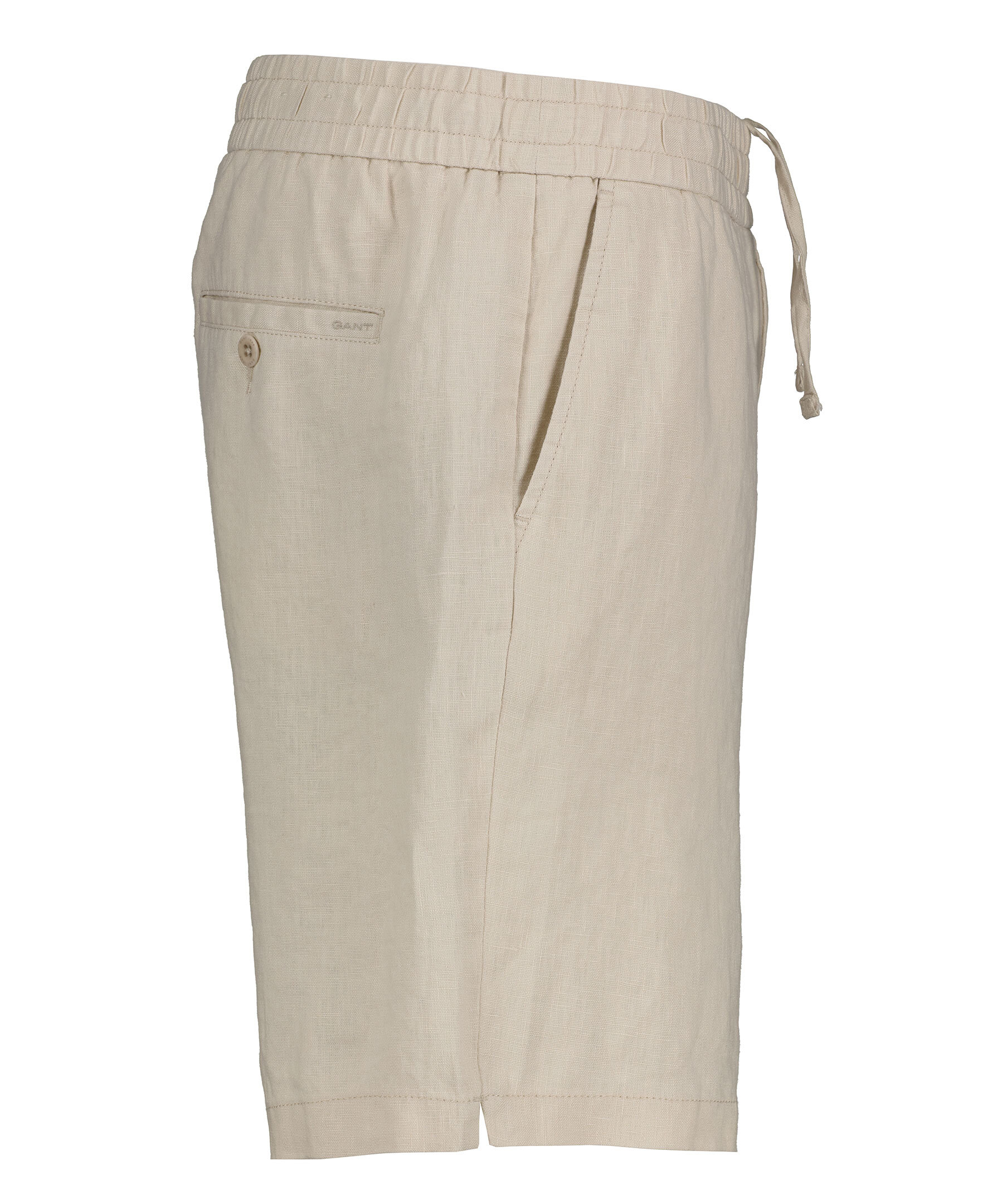 Sandfärgade shorts i linne från Gant. Resår och dragsko i midjan. Två fickor framtill. Tillverkade i 100% Linne. Kort slits vid benslut.