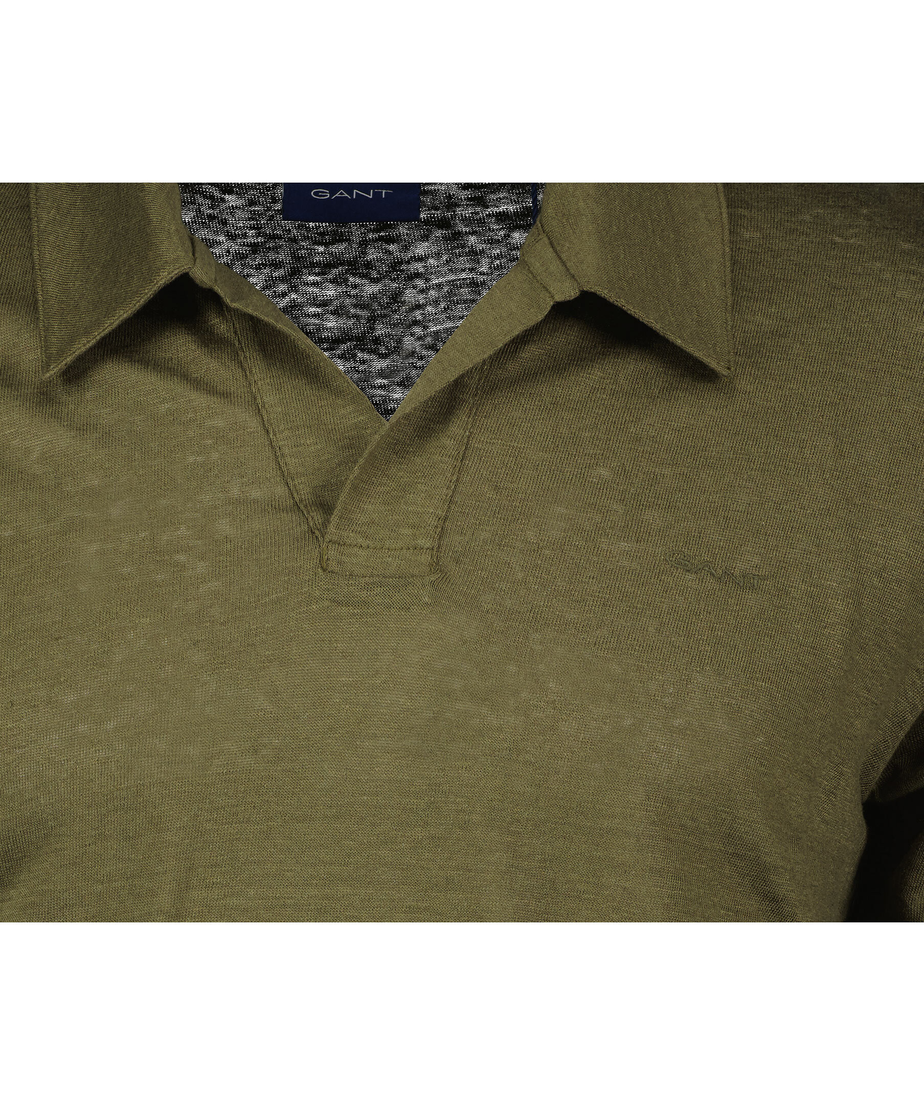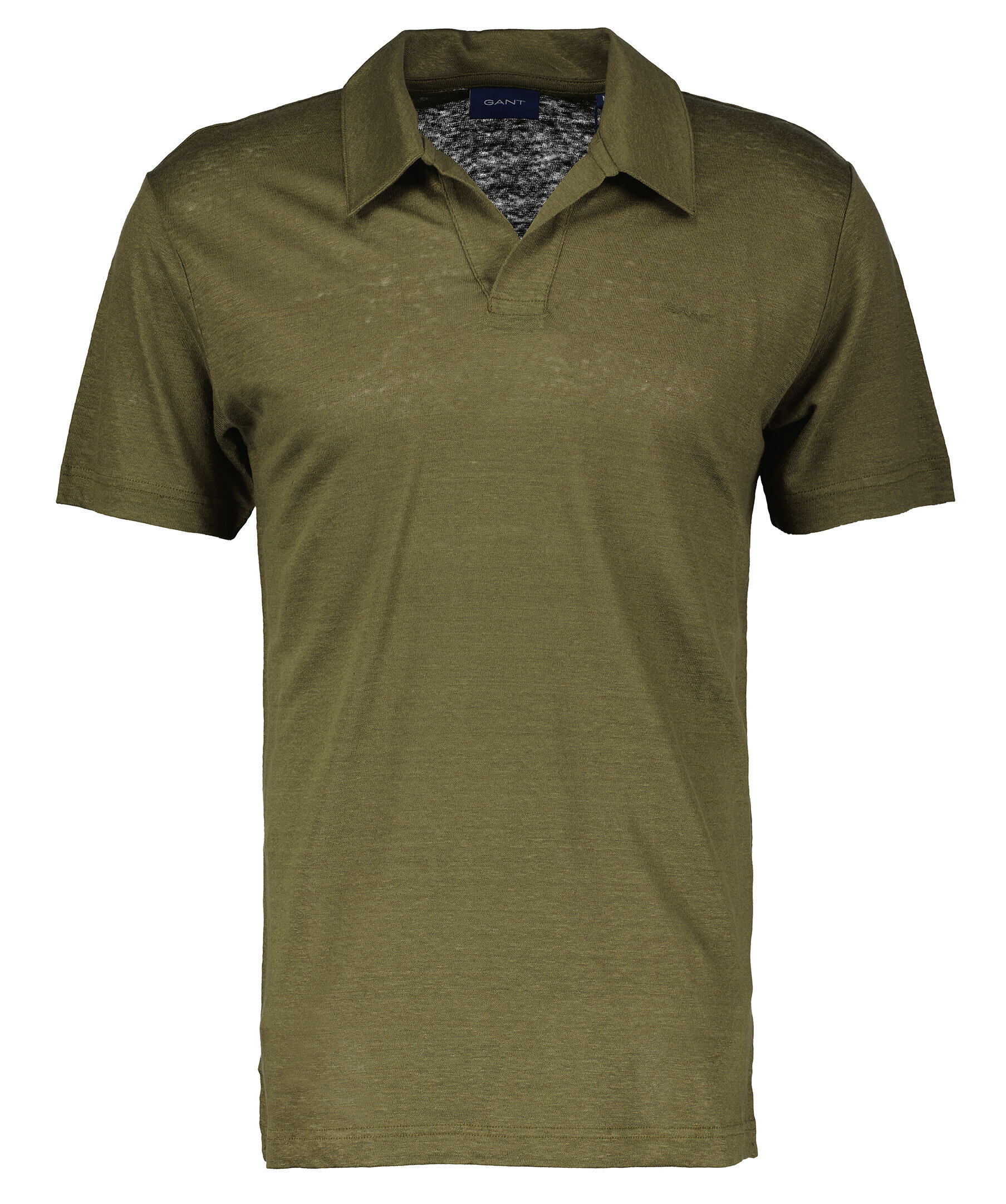 Olivgrön pikétröja från Gant. Tillverkad i 100% linne. Liten broderad logga på bröstet, normal passform.