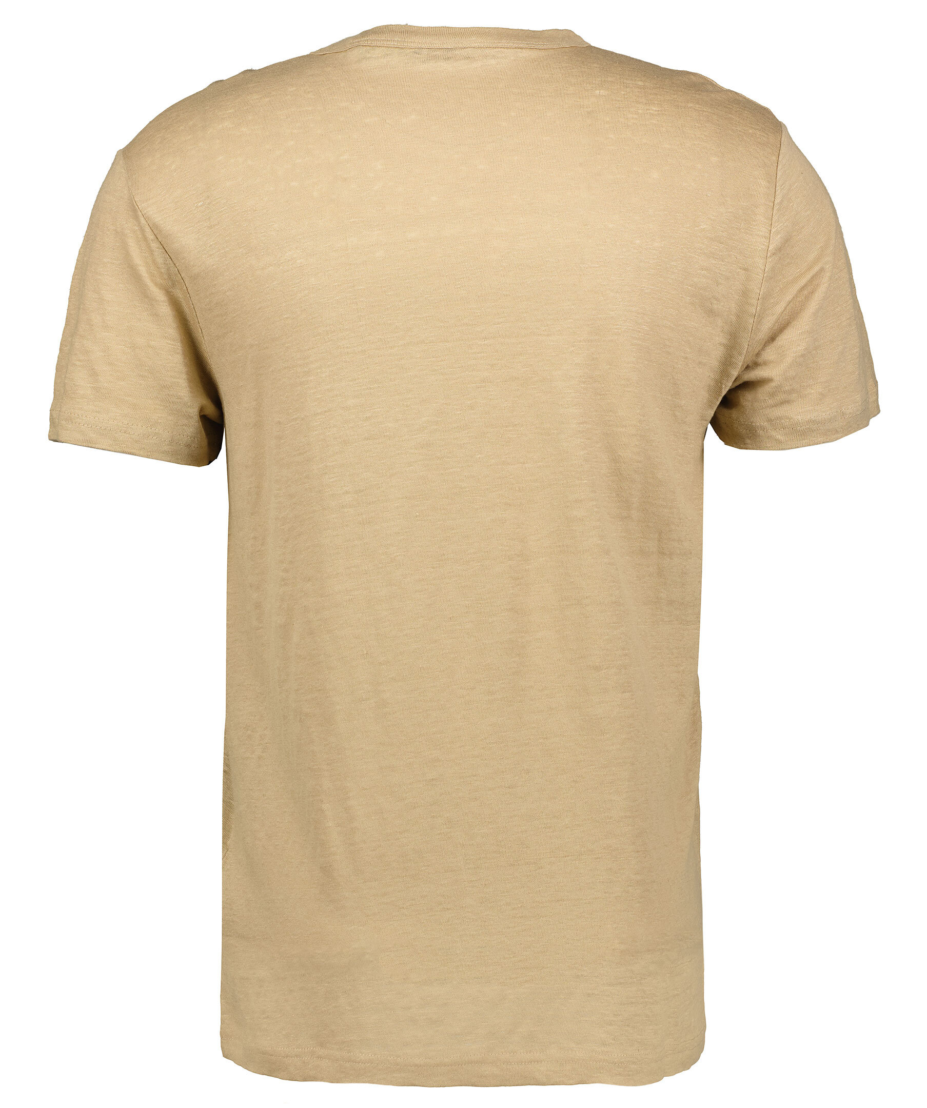 Beige t-shirt från Gant. Rundad halsringning. Broderad logotyp i ton-i-ton på vänster bröst. Tillverkad i 100% linne.
