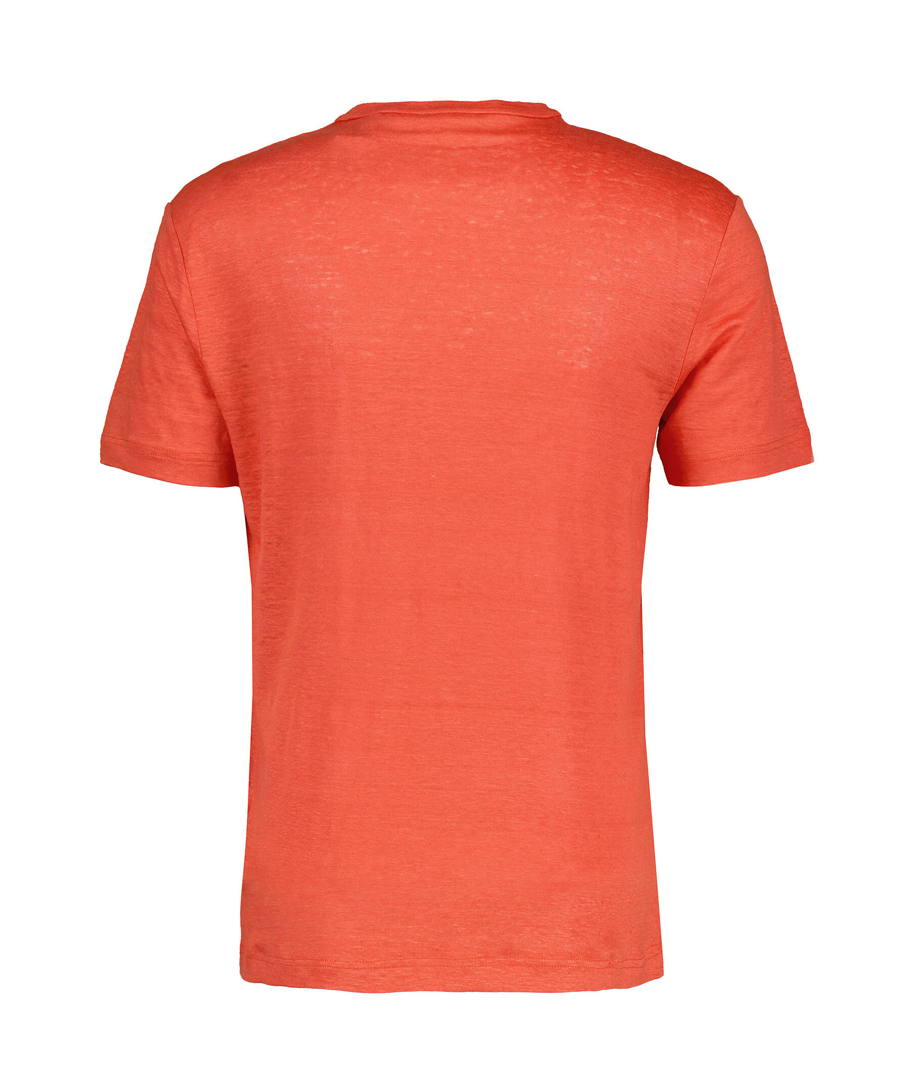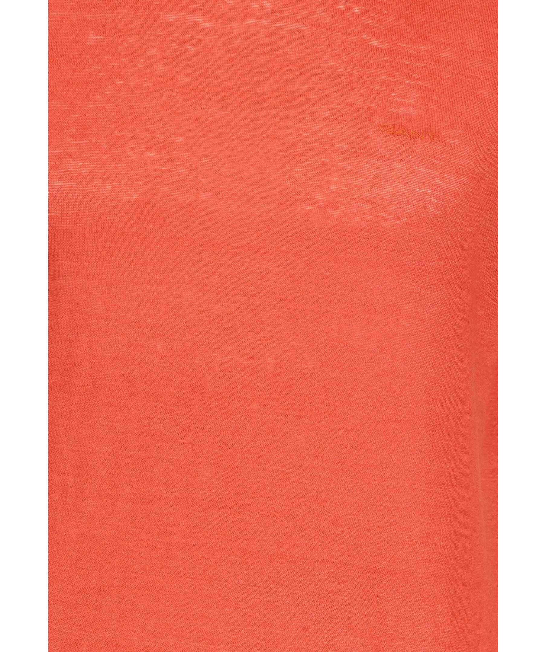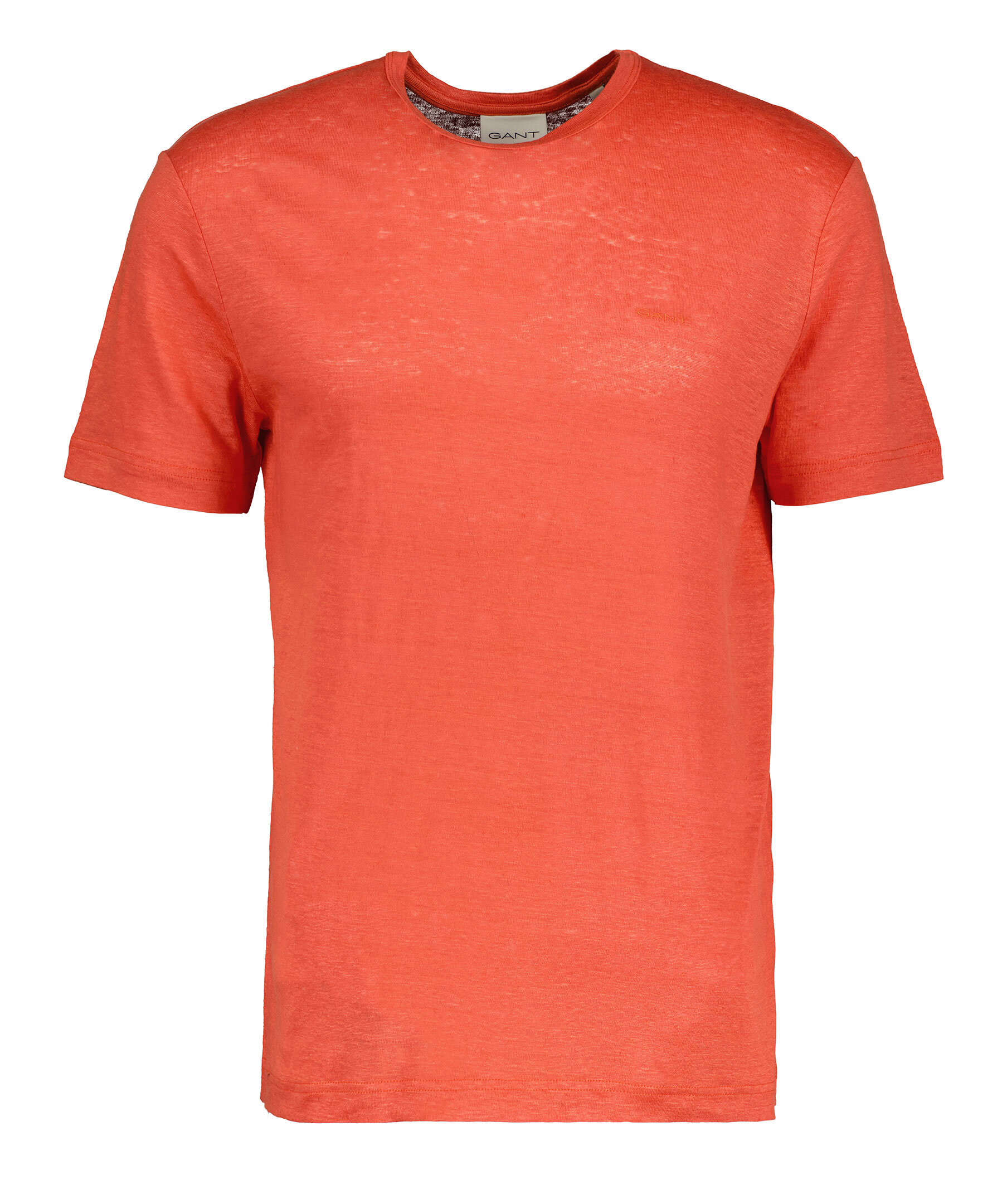 Rödorange melerad T-shirt från Gant. Tillverkad i 100% Linne. Rundad halsringning med ribbstickad kant. Tillverkad i halvtransparent tyg. Broderad logotyp på vänster bröst.