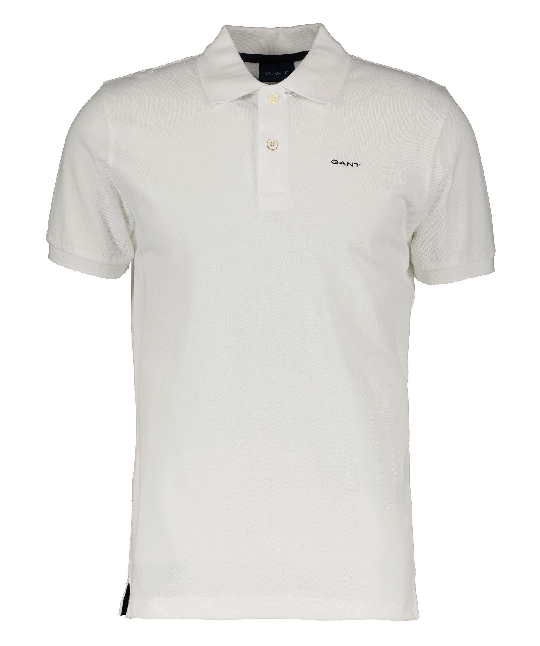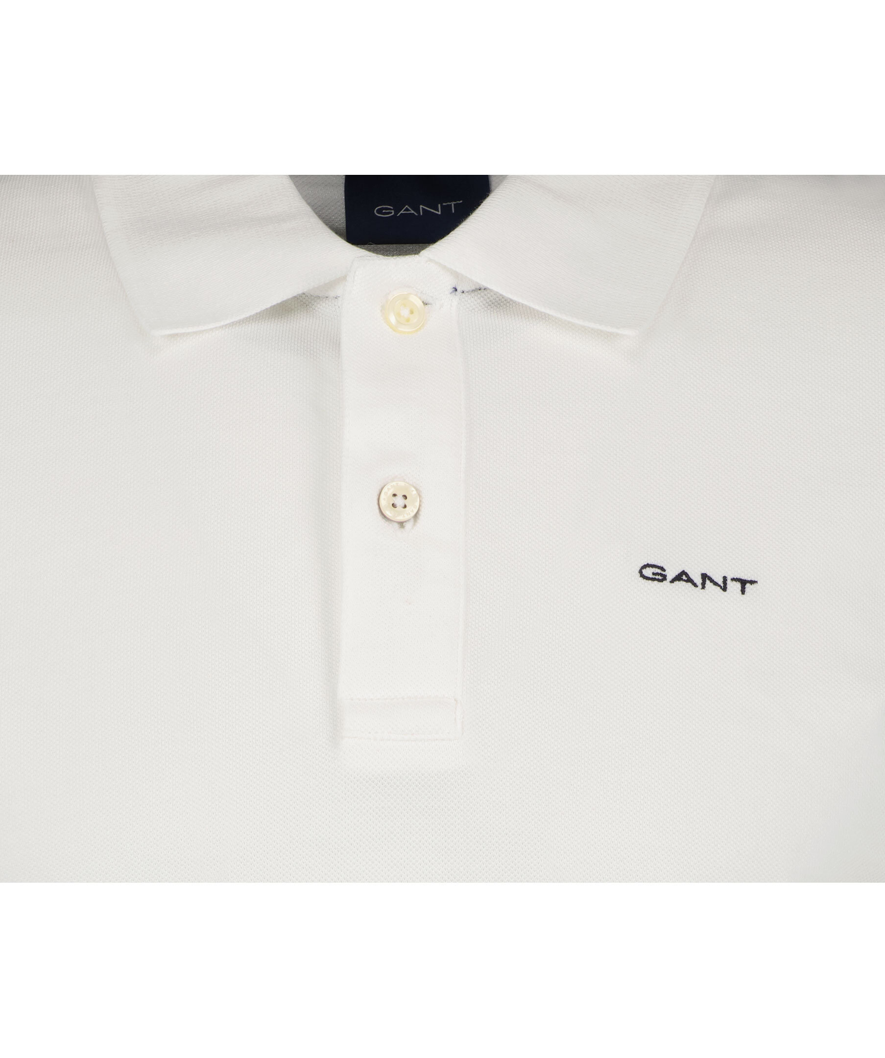 Vit pikétröja från Gant. Tillverkad i 100% bomull. Broderad logga på bröstet, normal passform och två knappar fram. Korta slitsar i sidorna och tunna muddar i ärmslut.