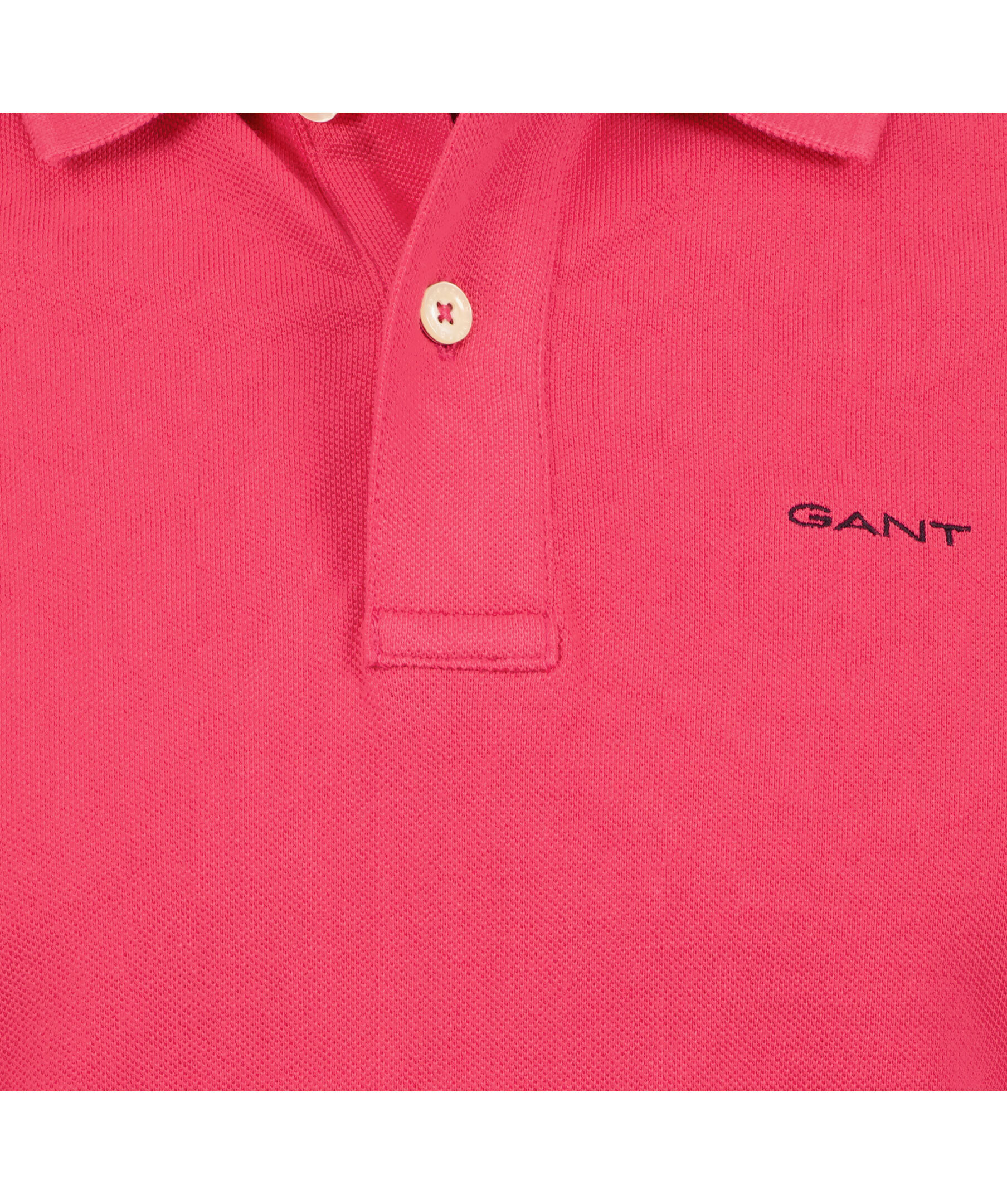 Mörkrosa pikétröja från Gant. Tillverkad i 100% bomull. Broderad logga på bröstet, normal passform och två knappar fram. Korta slitsar i sidorna och tunna muddar i ärmslut.