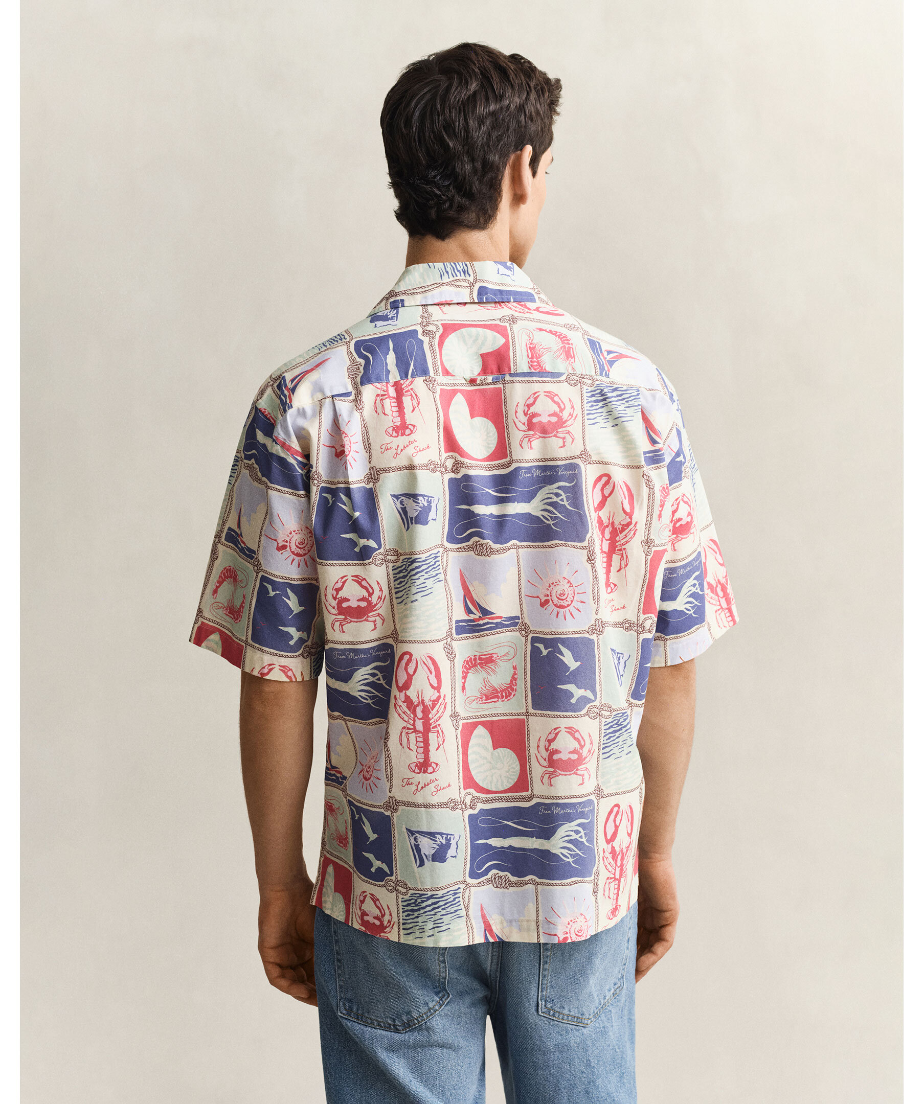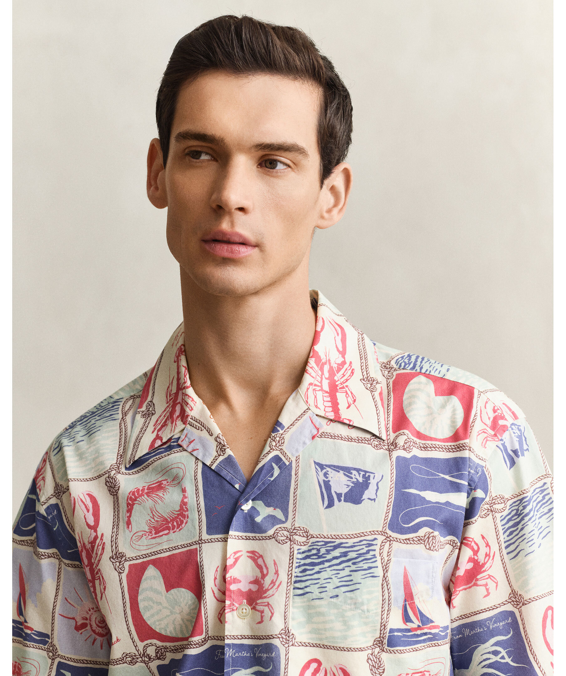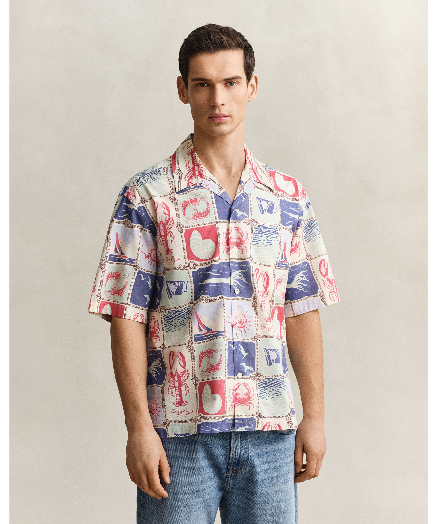 Kortärmad skjorta från Gant. Tillverkad i bomullspoplin med ett nautiskt tryck och har en avslappnad passform.