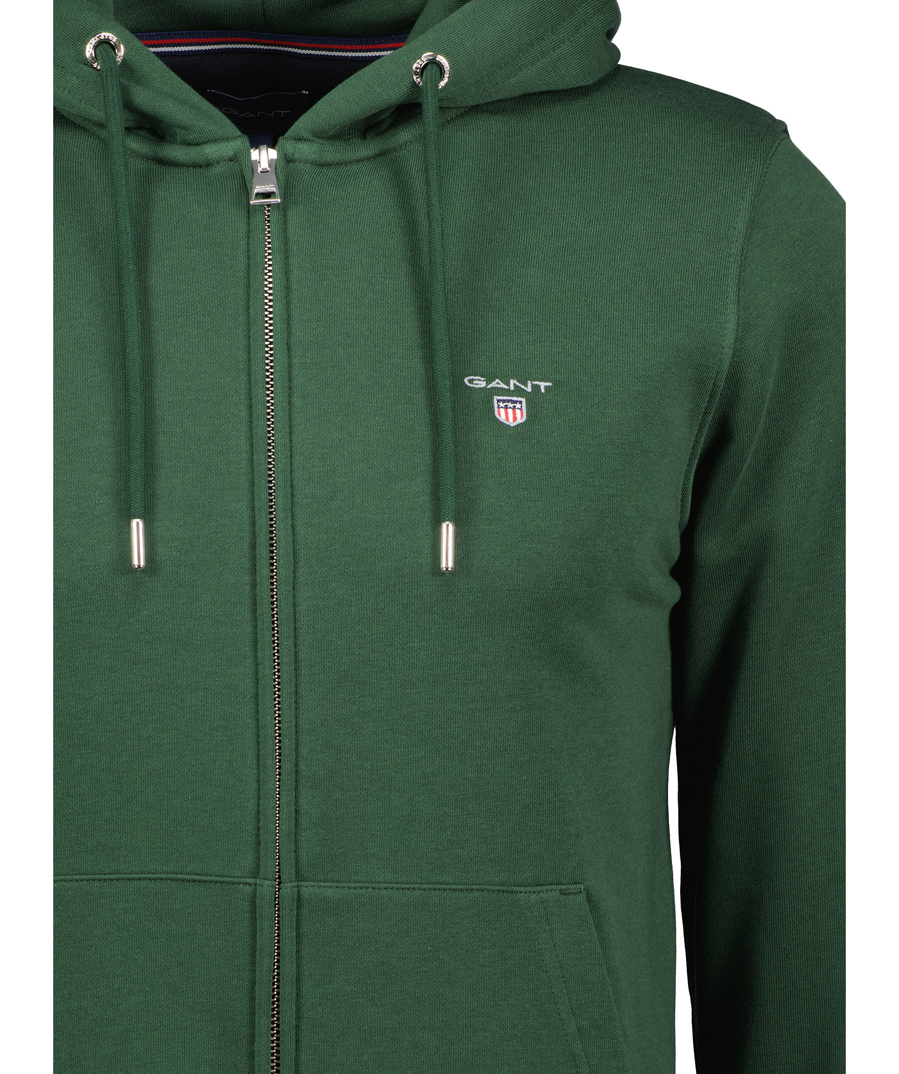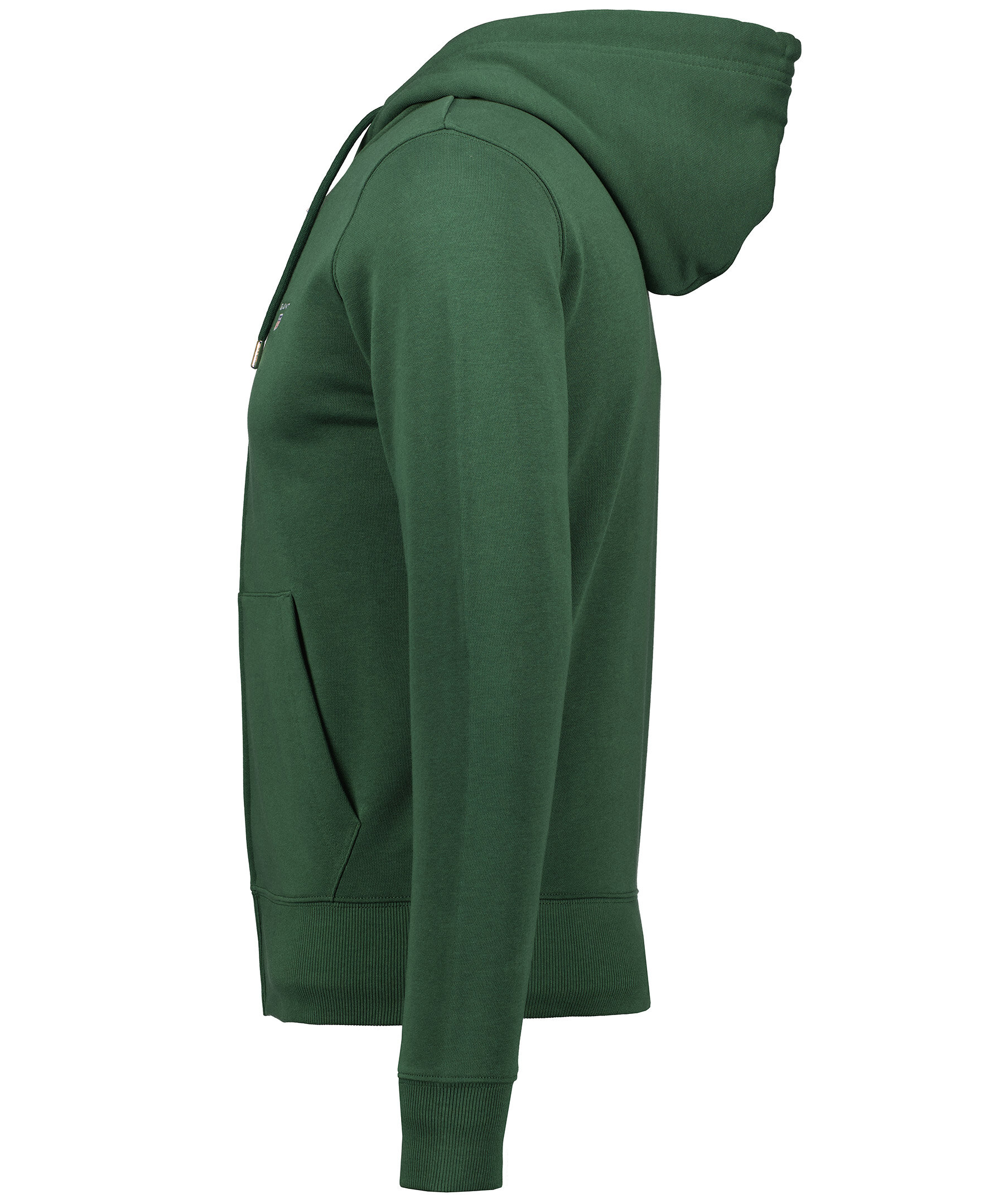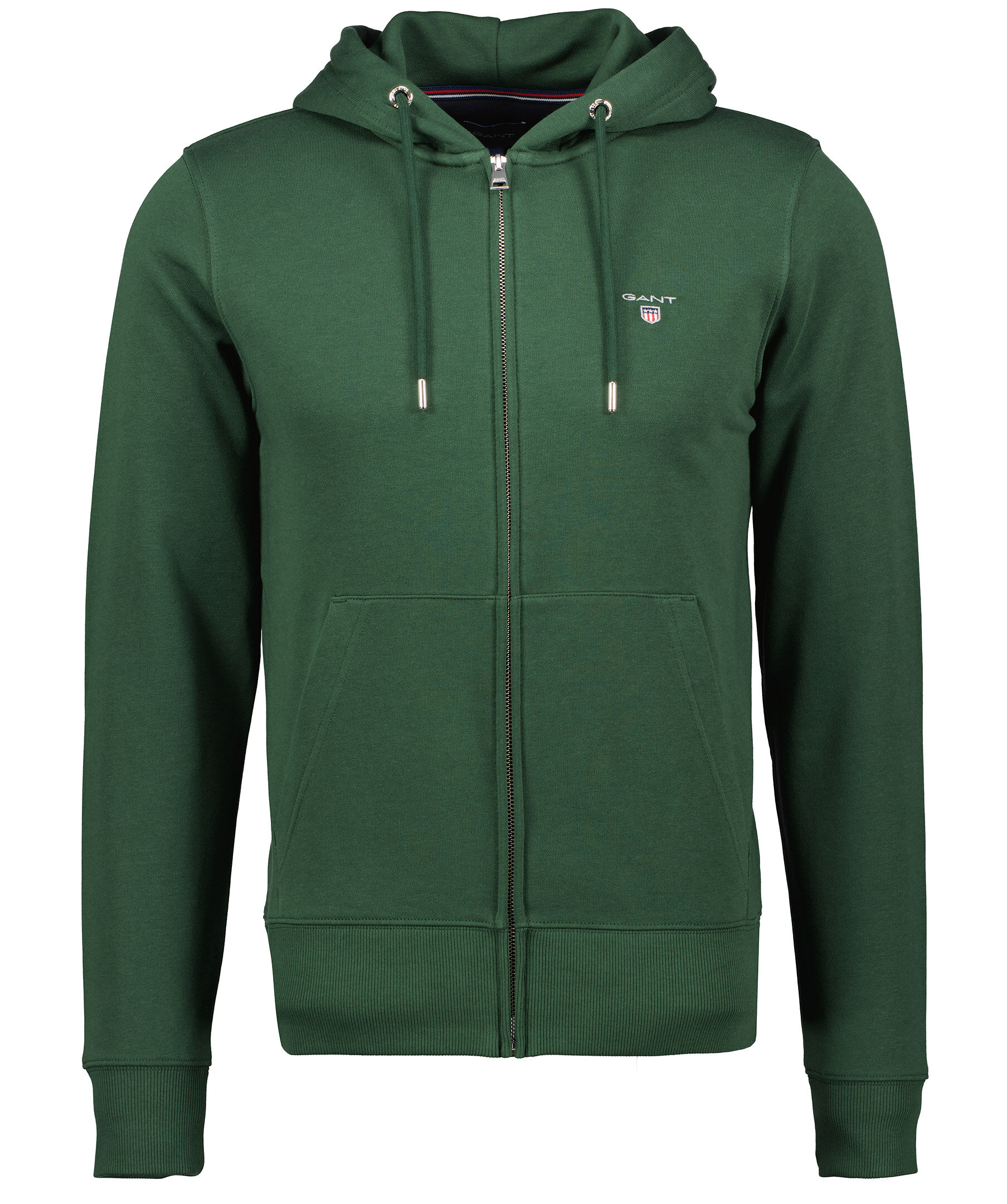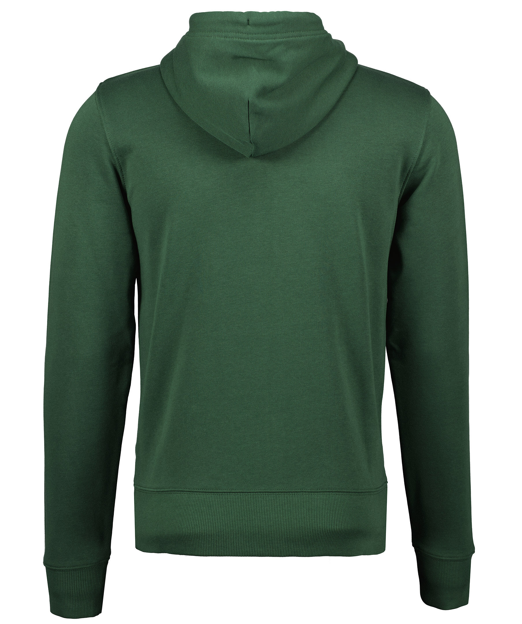 Mörkgrön huvtröjan från Gant. Normal passform, ribbstickade muddar i ärmslut och nertill. Huva med dragsko, två fickor fram samt hellång dragkedja. Broderad logga på vänster bröst.