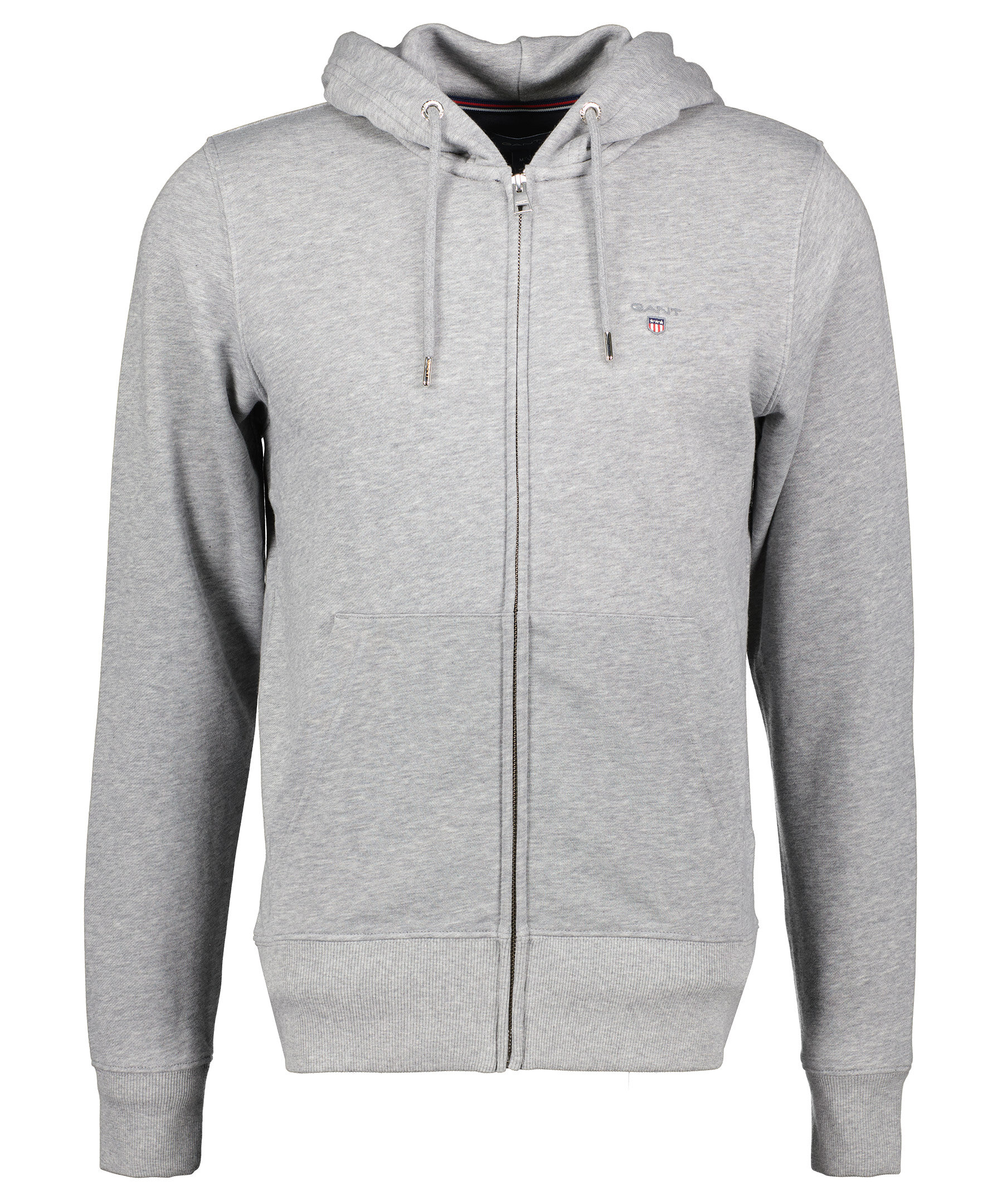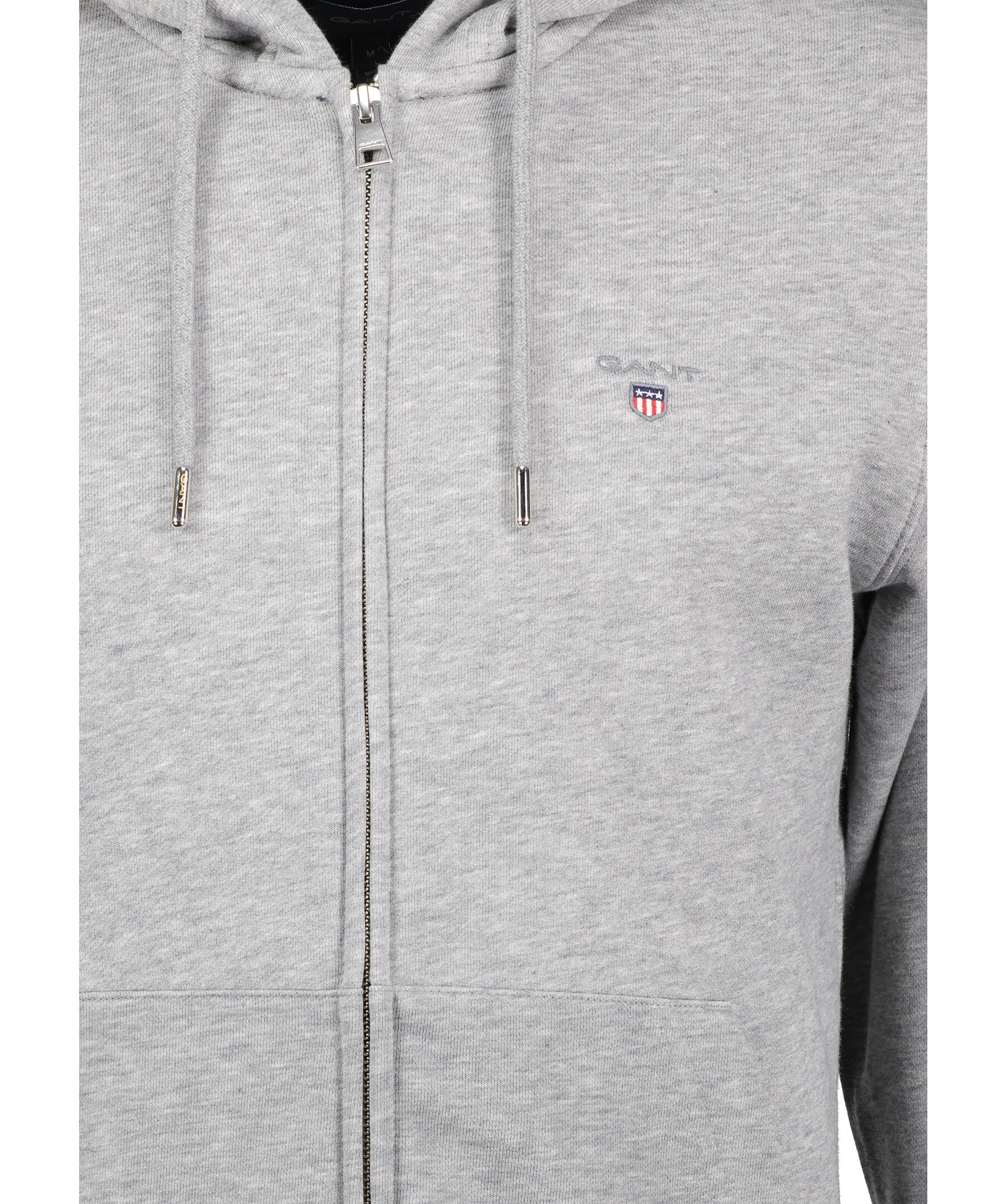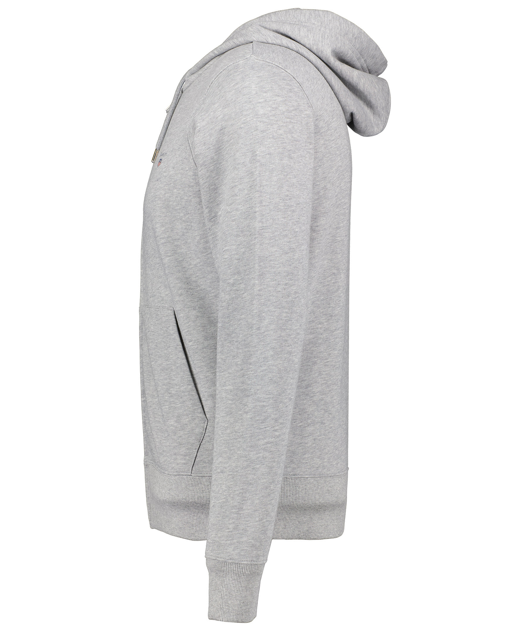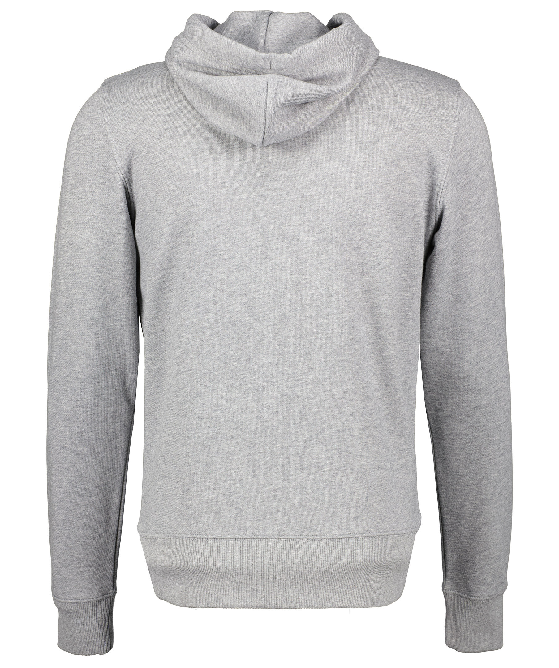 Grå hoodie från Gant. Hel dragkedja, två fickor fram, muddar i ärmslut och broderad logga på bröstet. Tillverkad i bomullsmix.