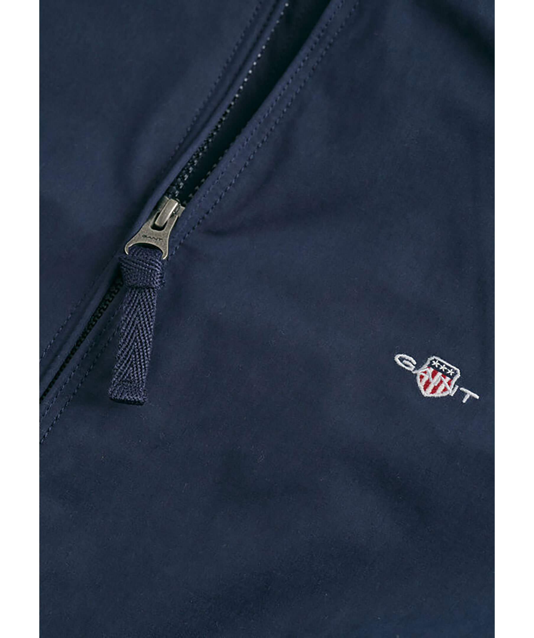 Marinblå, vadderad jacka från Gant. Jackan stängs med tvåvägsdragkedja och har ståkrage med ribbstickad insida, snedställda passpoalfickor med knapp, ribbstickade muddar och broderad logotyp på bröstet. Jackan har en vattenavvisande yta och är tillverkad i en polyester- och bomullsblandning.