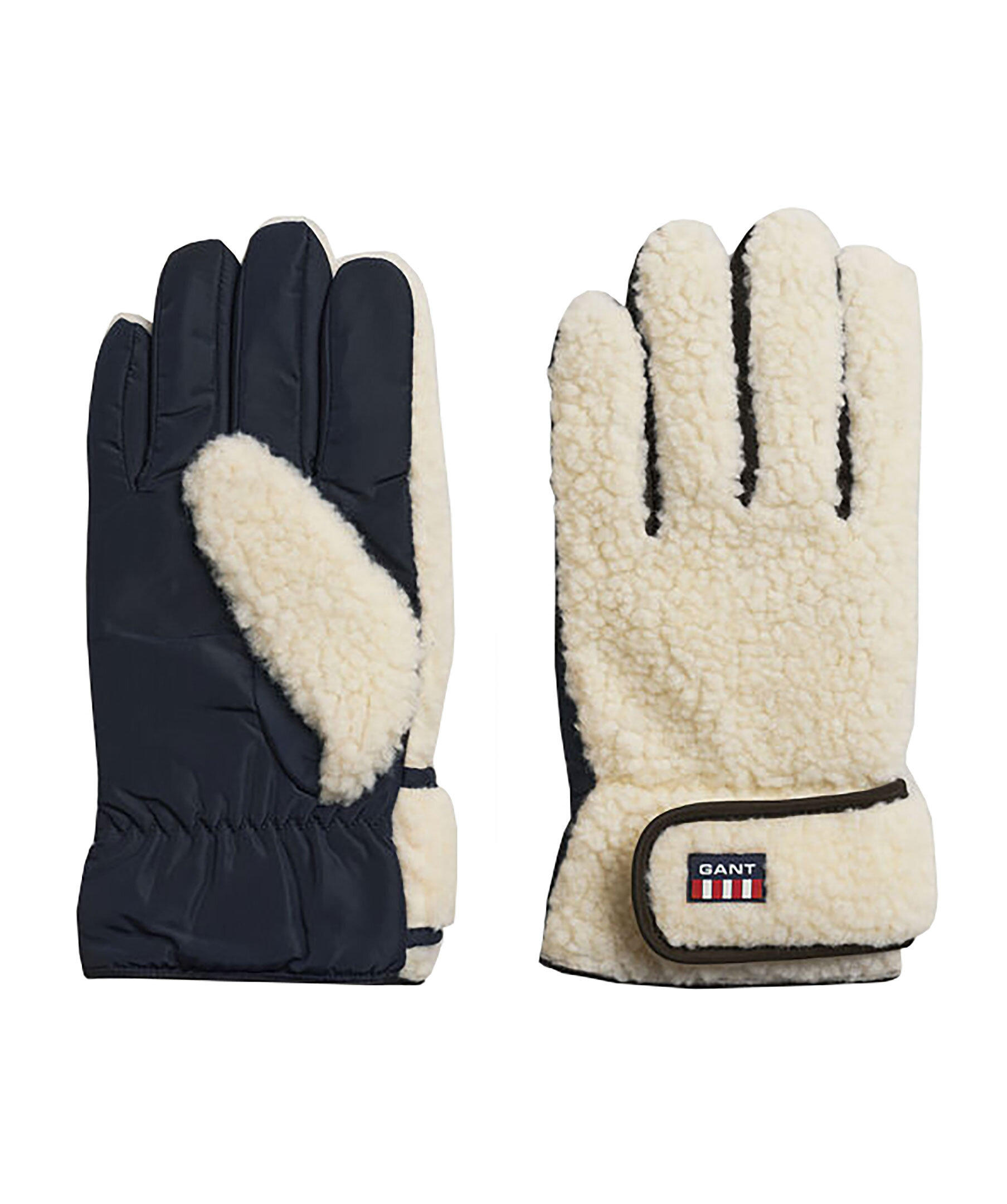 Vit/blå pile-handskar från GANT. Justerbart kardborrband vid handleden samt GANT-logga i silikon. Foder i kashmir och ull.