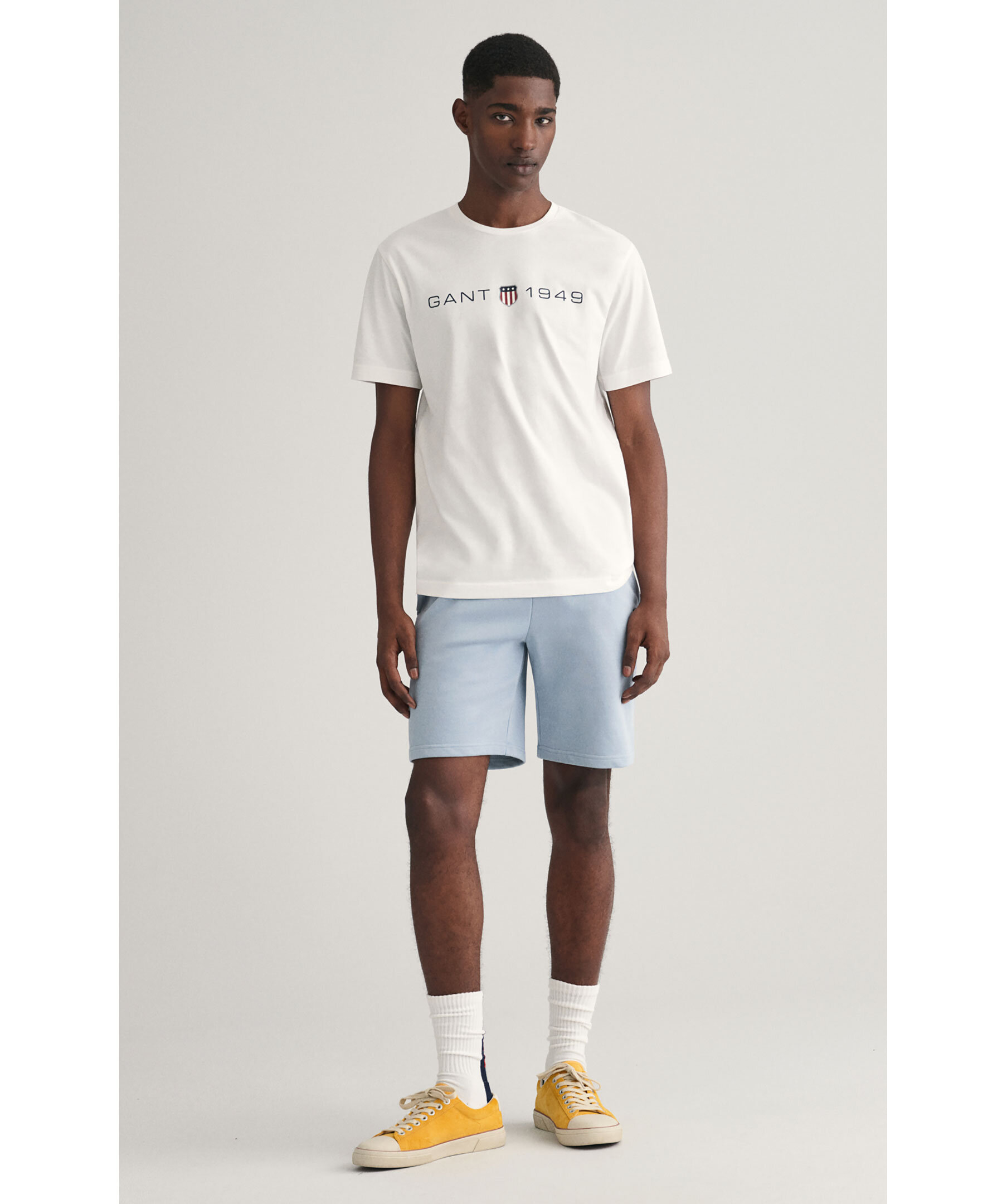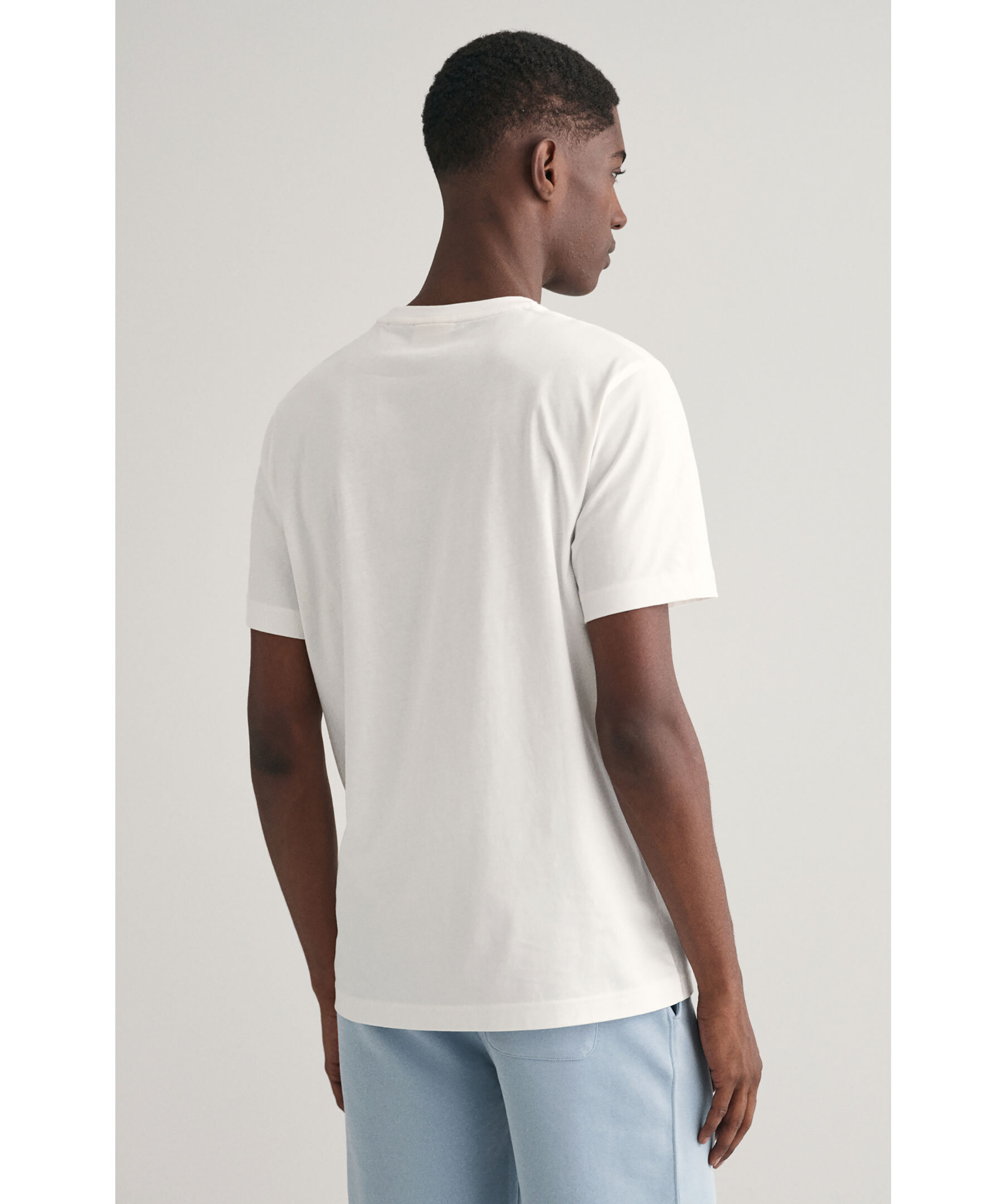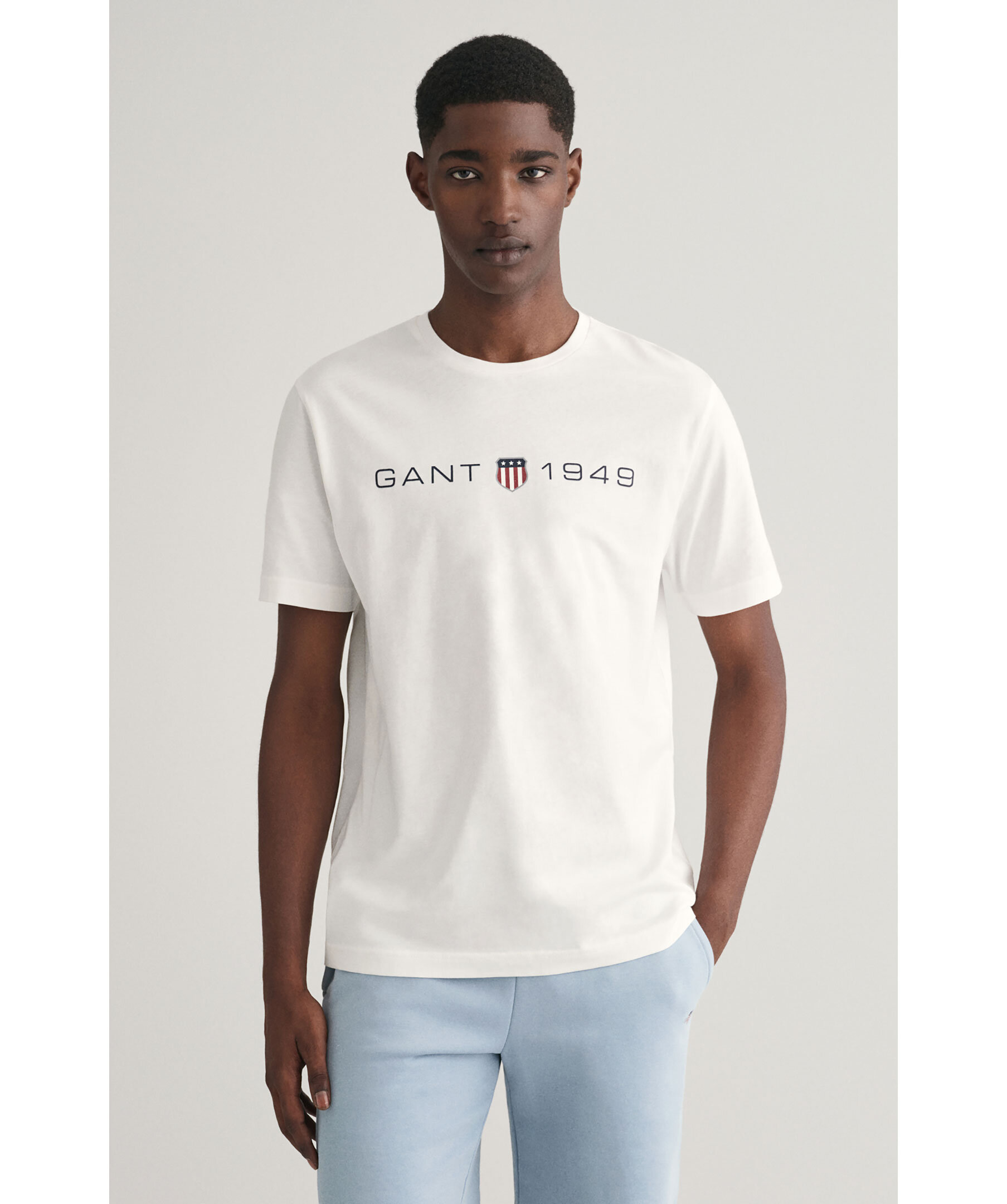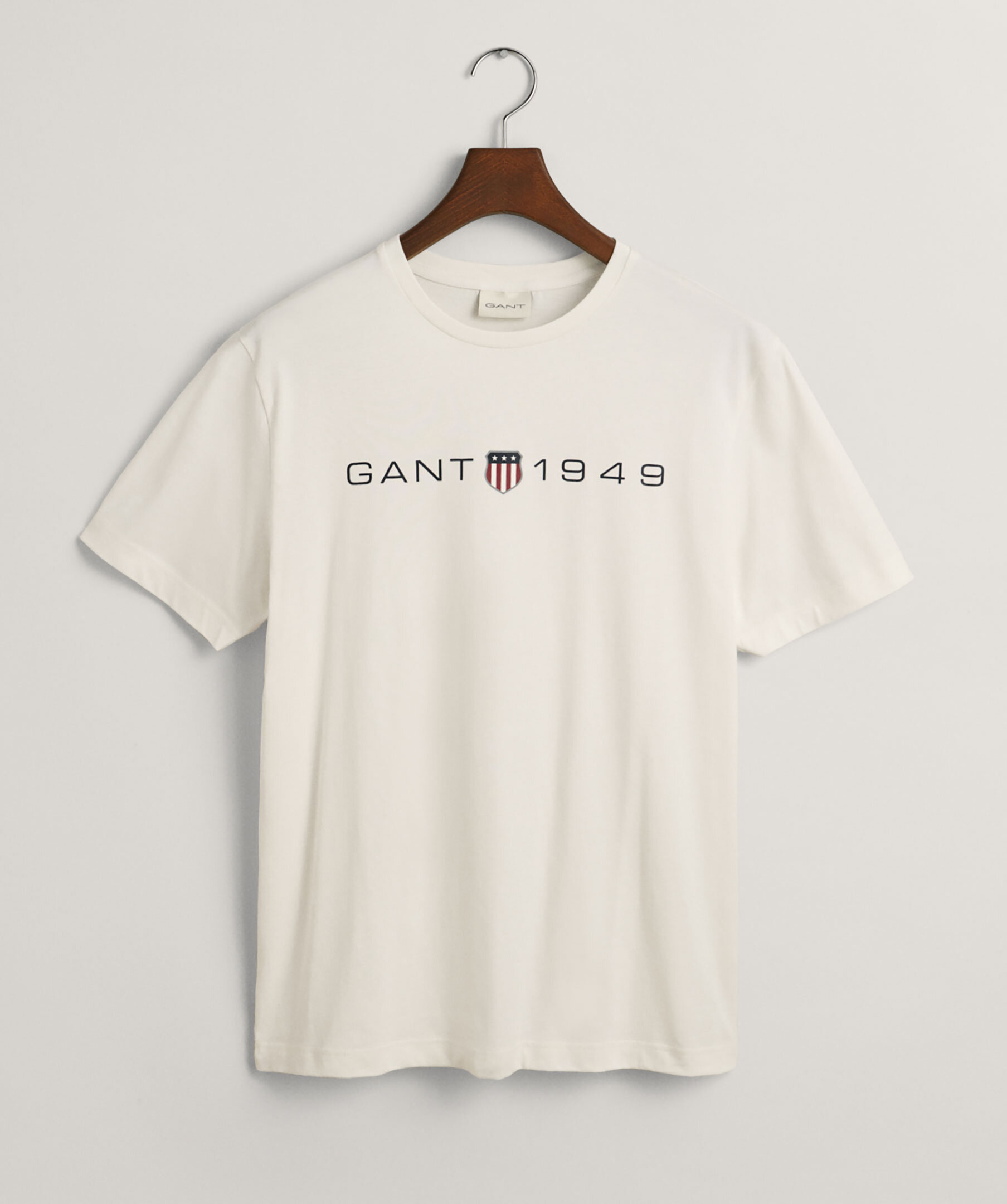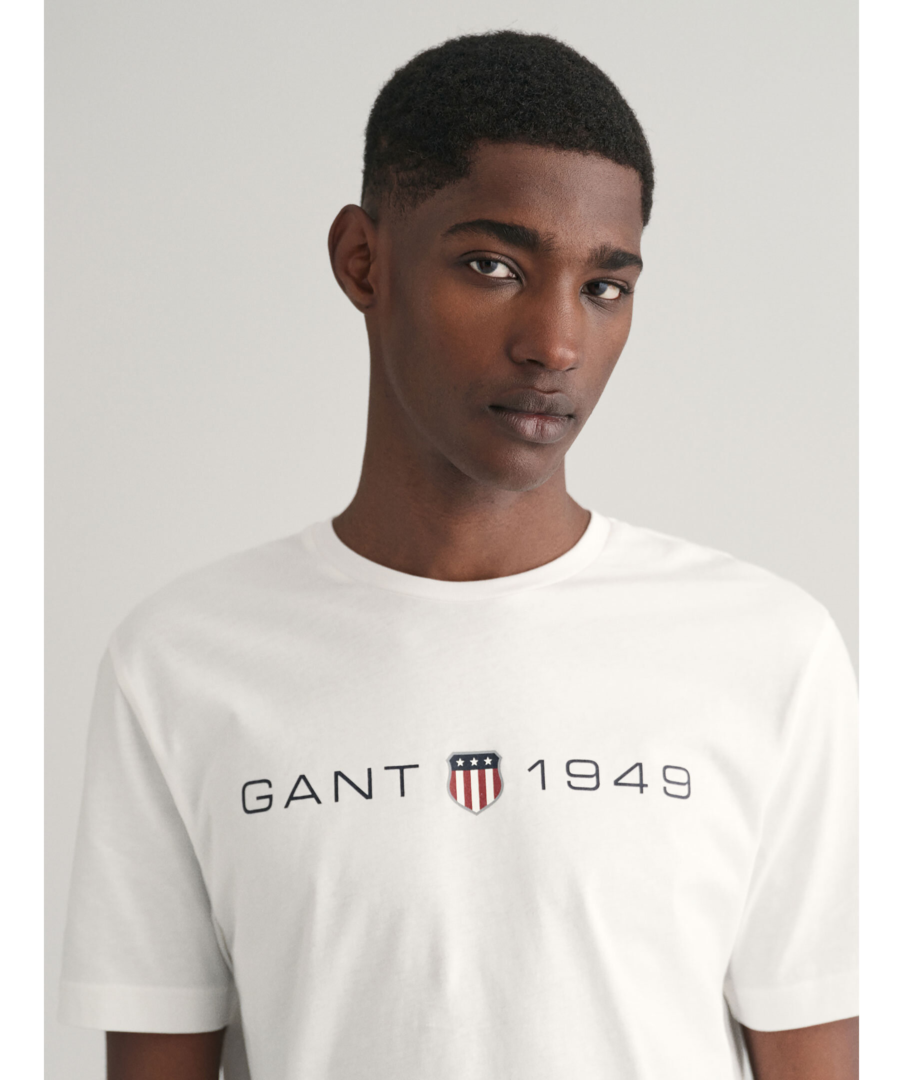 Vit T-shirt från Gant. Tryckt logotyp över bröstet. Rundad halsringning med ribbstickad kant. Tillverkad i 100% bomull.