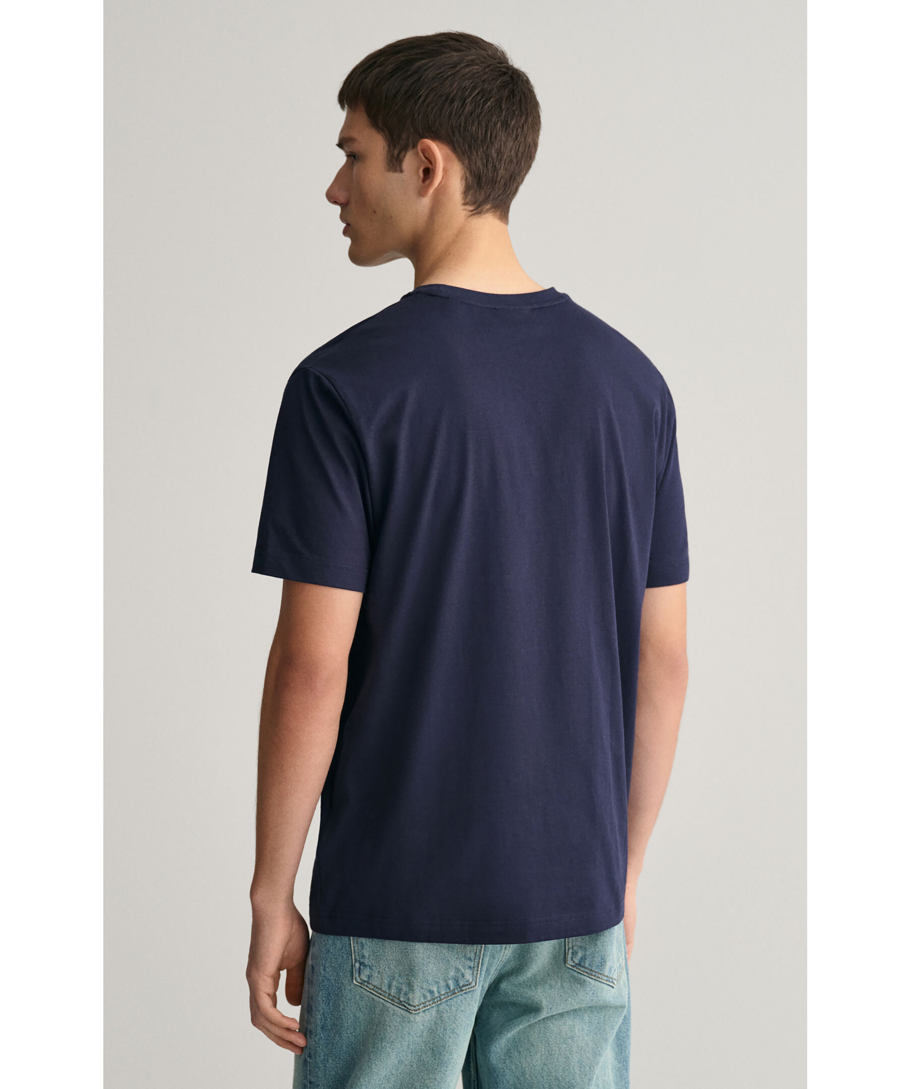 Svart T-shirt från Gant. Tryckt logotyp över bröstet. Rundad halsringning med ribbstickad kant. Tillverkad i 100% Bomull.