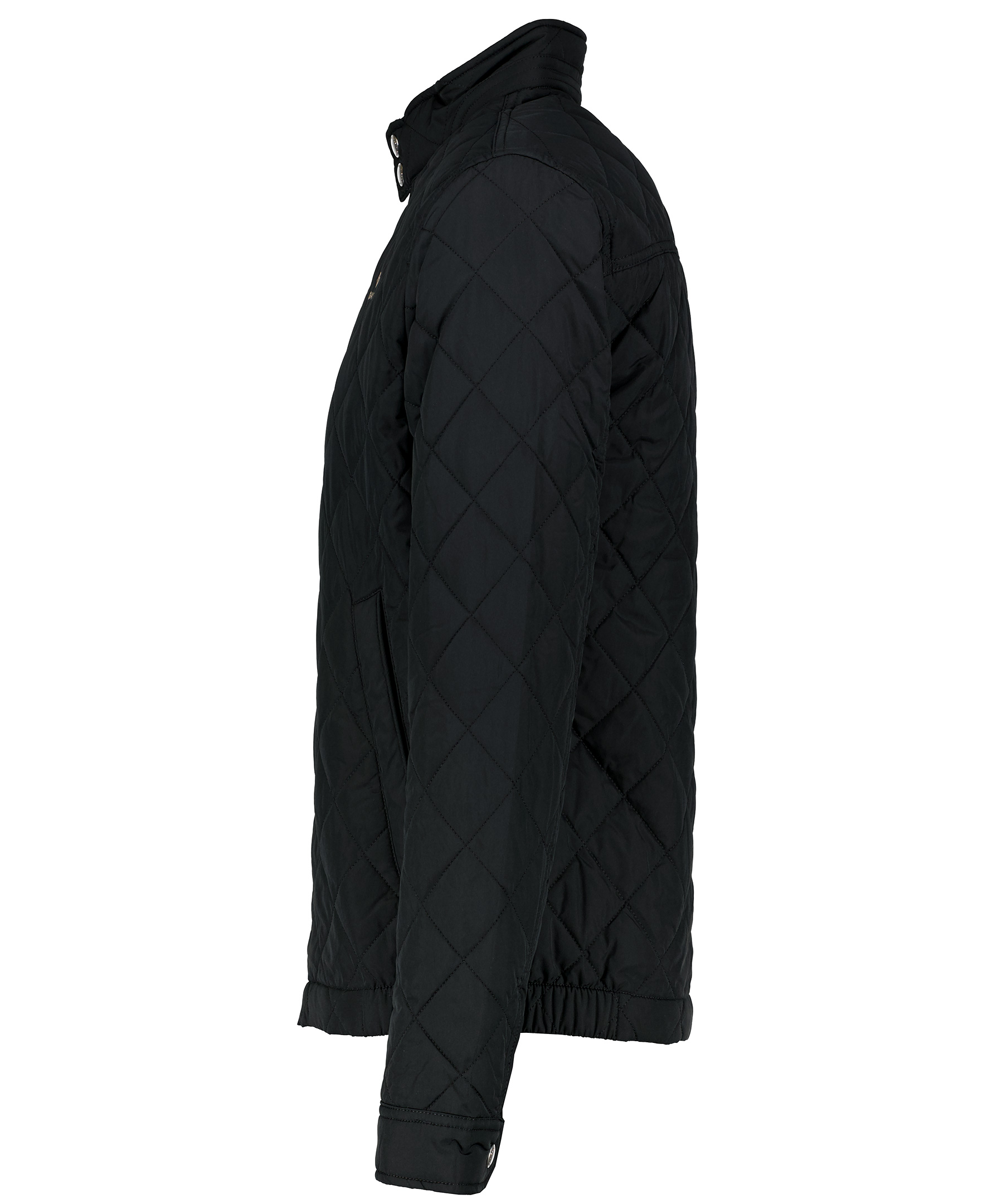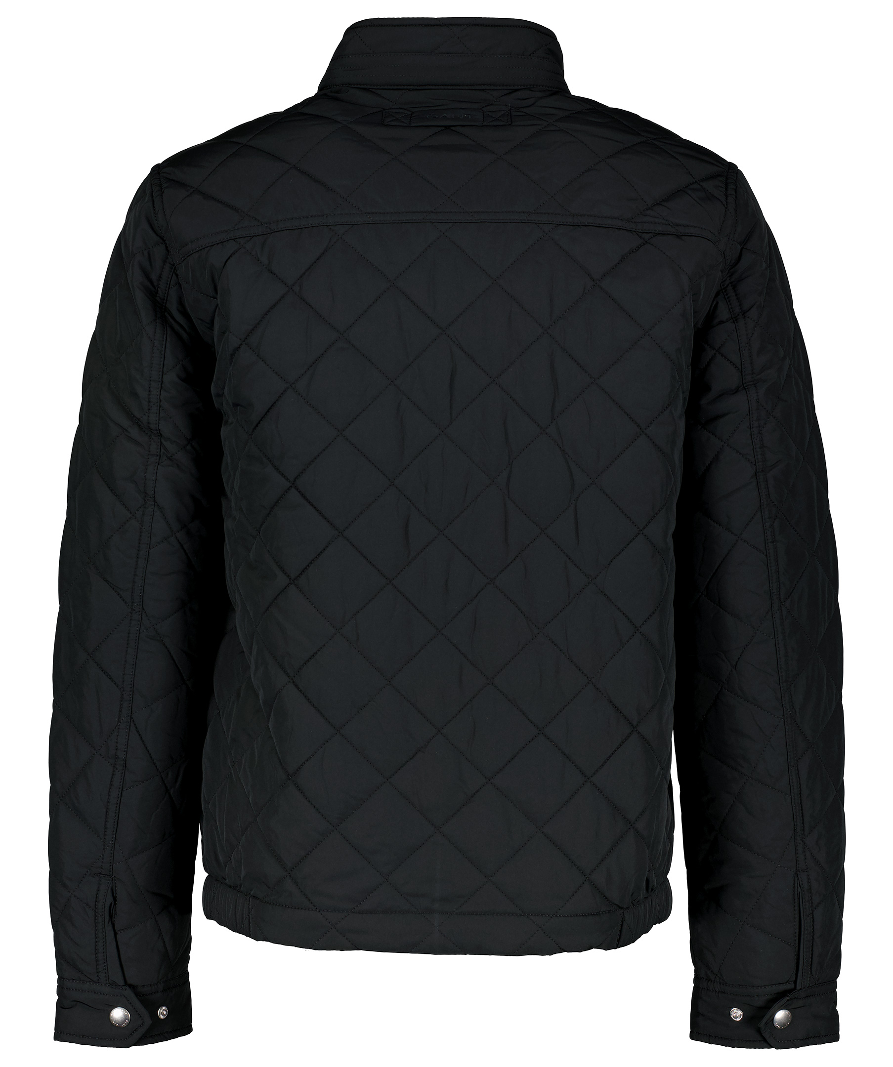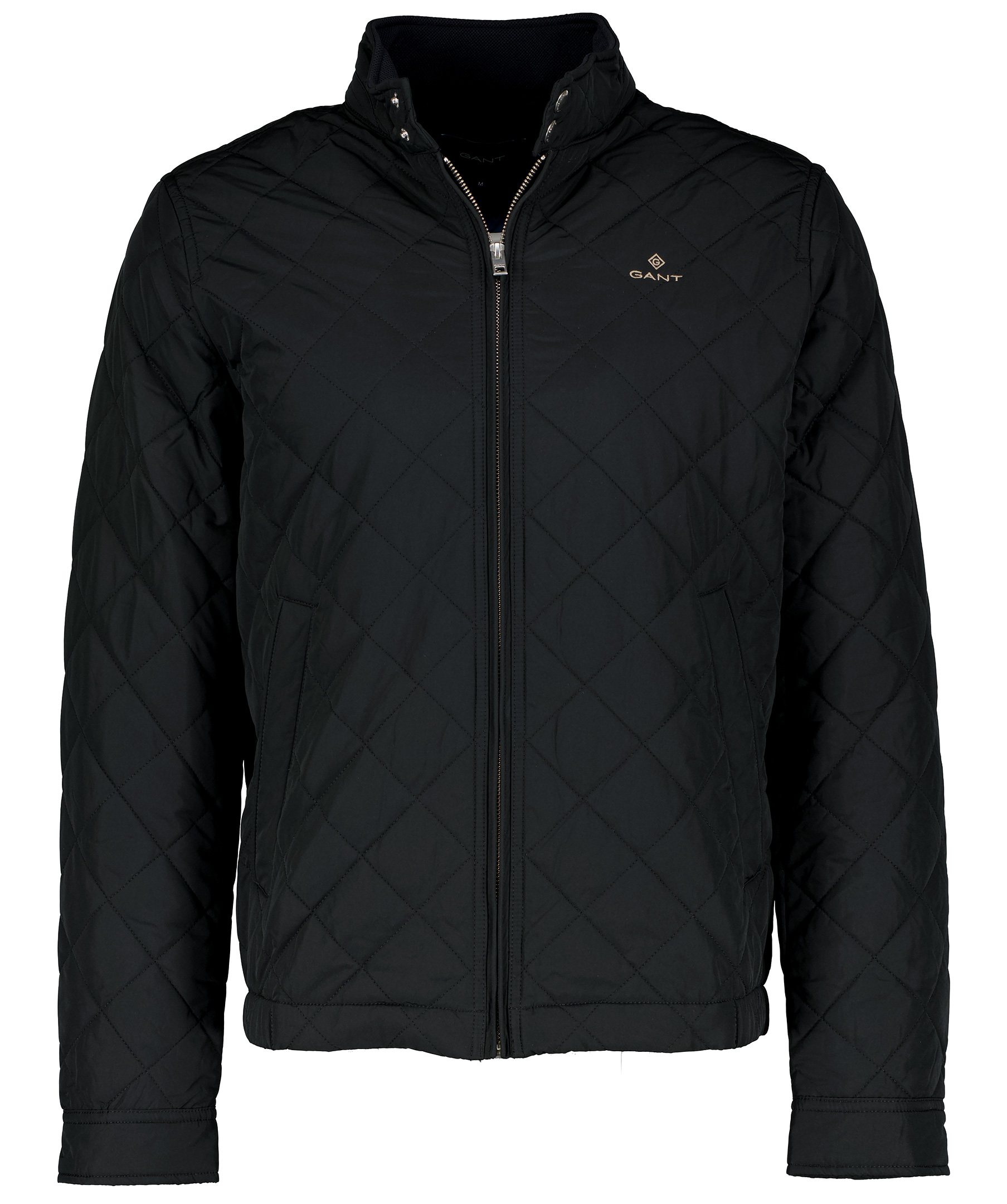 Svart quiltad jacka i 100% polyester från Gant. Fodrad i polyester och har en hög krage krage med två tryckknappar. Två fickor fram med tryckknapp, diskret logga broderad på vänster sida av bröstet och har en innerficka med dragkedja. Tryckknappar i ärmslut och stängs med dragkedja fram.