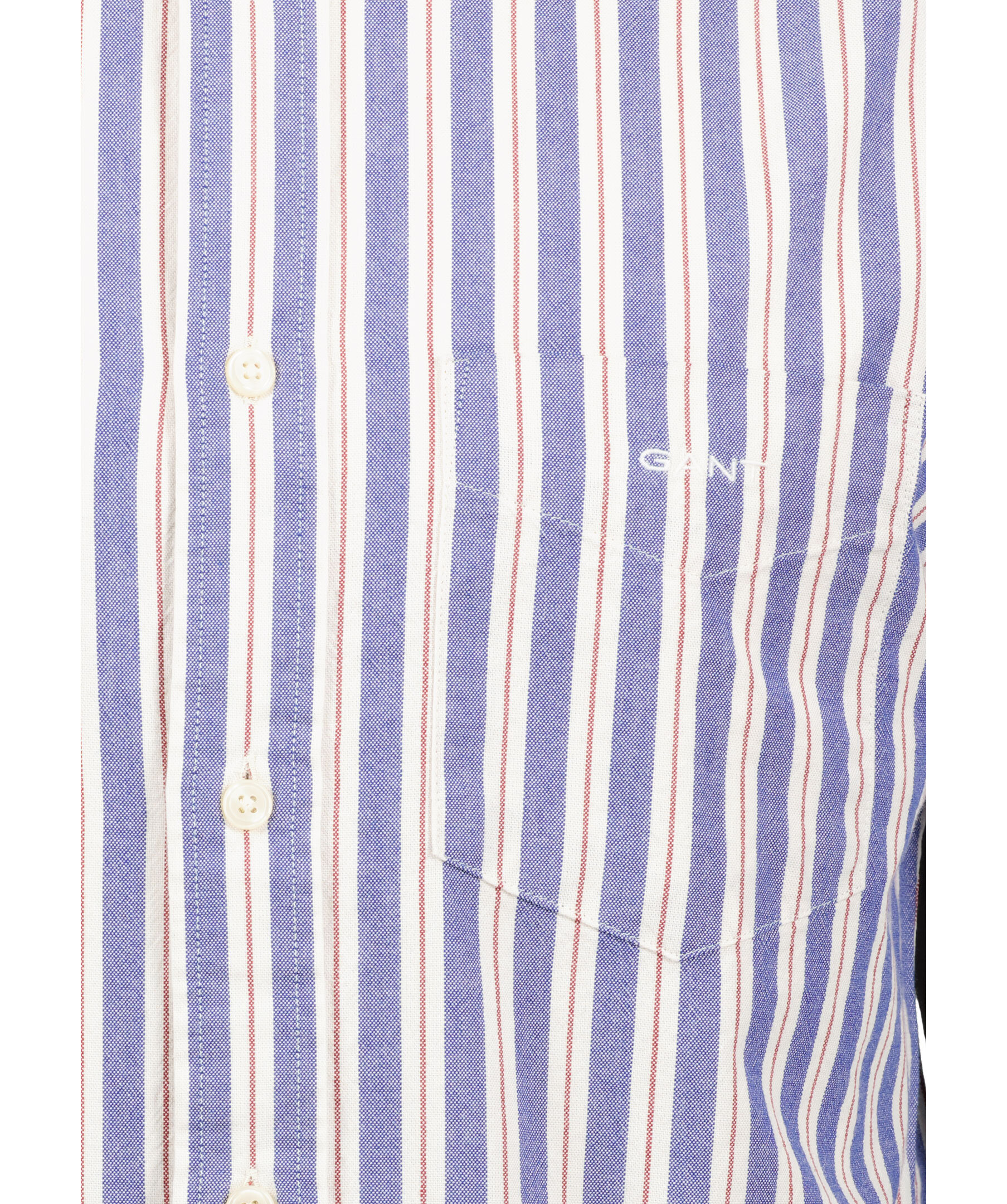 Randig oxfordskjorta från Gant i färgerna vitt, blått och rött. Button down krage och en bröstficka med broderad logotyp. Tillverkad i 100% bomull.