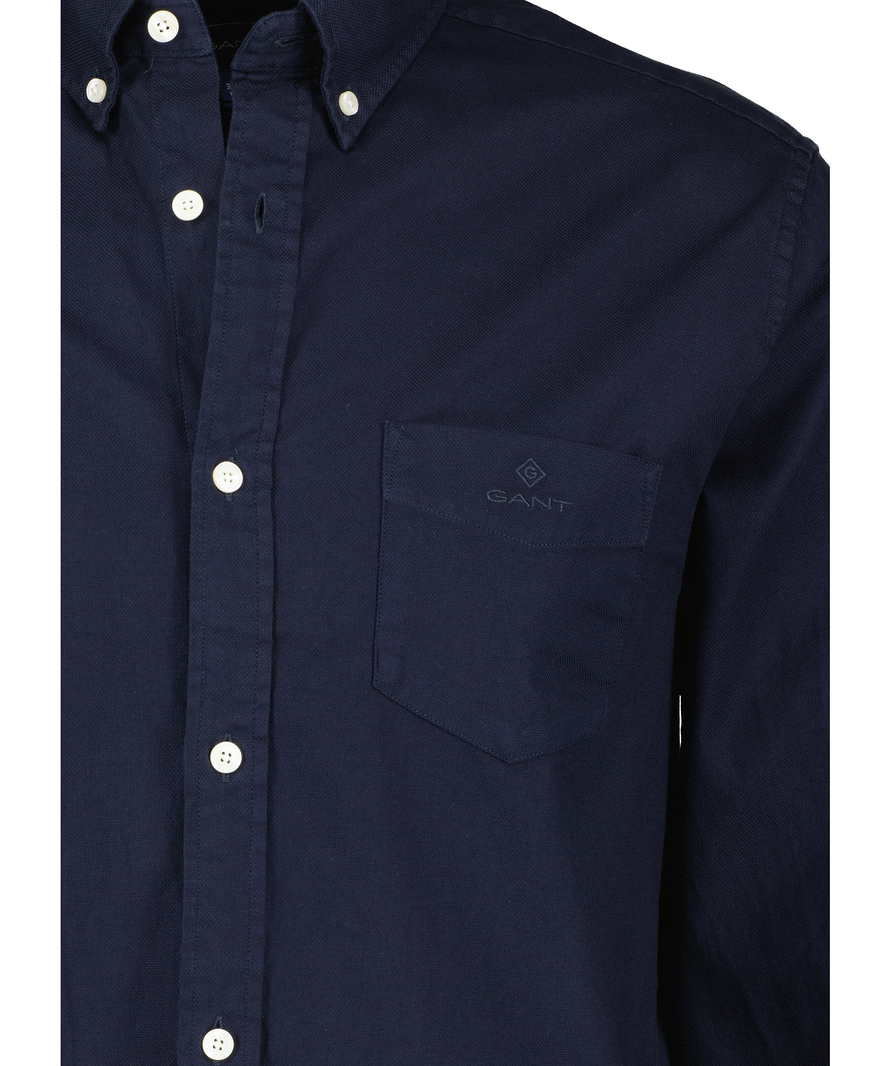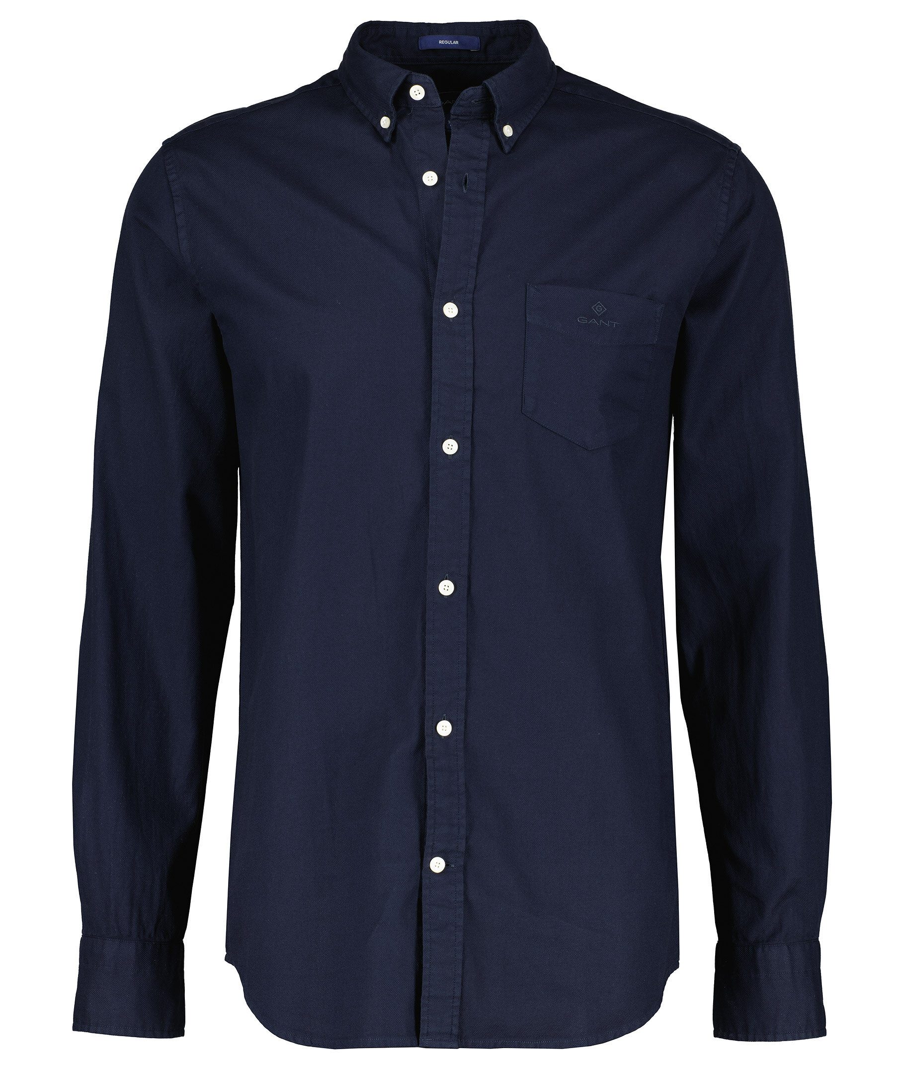 Mörkblå oxford skjorta från Gant. Bröstficka på vänster sida med broderad logotyp. Enkla manschetter. Locker loop och boxpleat i ryggen. Button down krage. Tillverkad i 100% bomull.