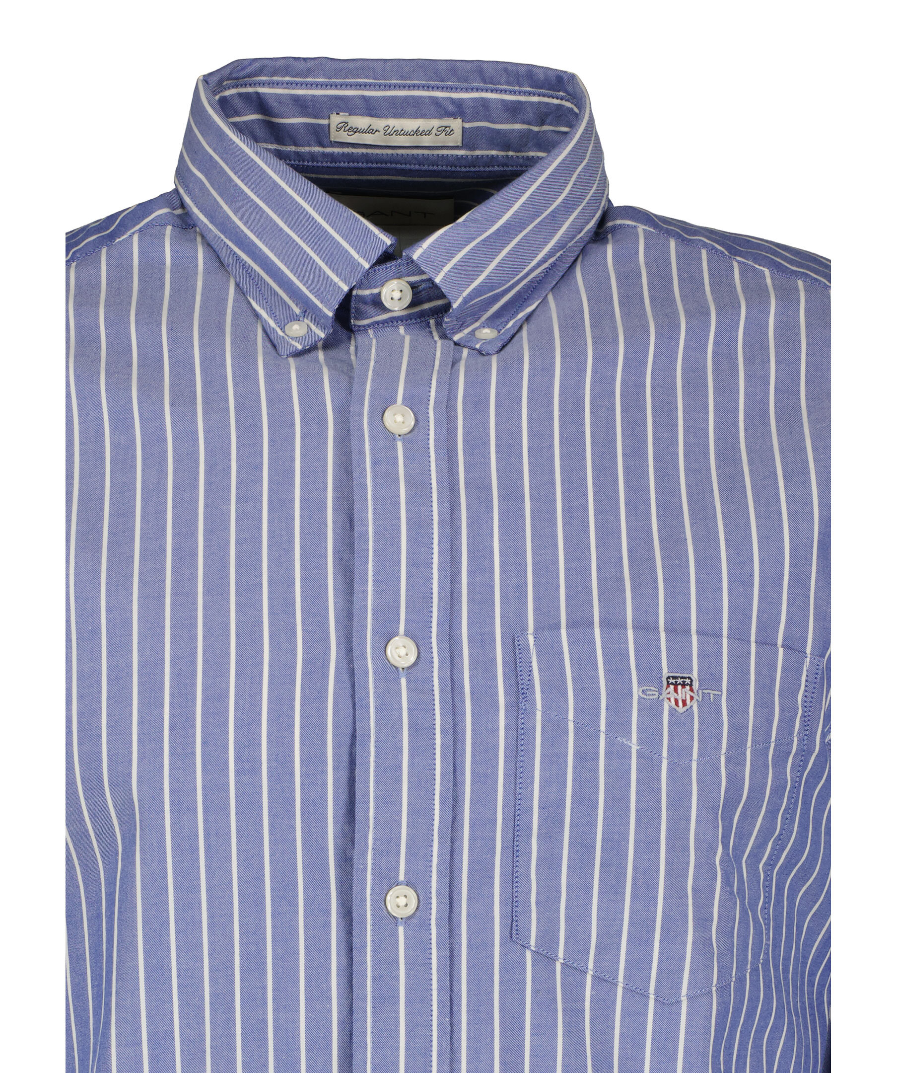 Blårandig skjorta från Gant. Skjortan stängs med knappar framtill och har en bröstficka med broderad logotyp. Tillverkad i borstad bomull.