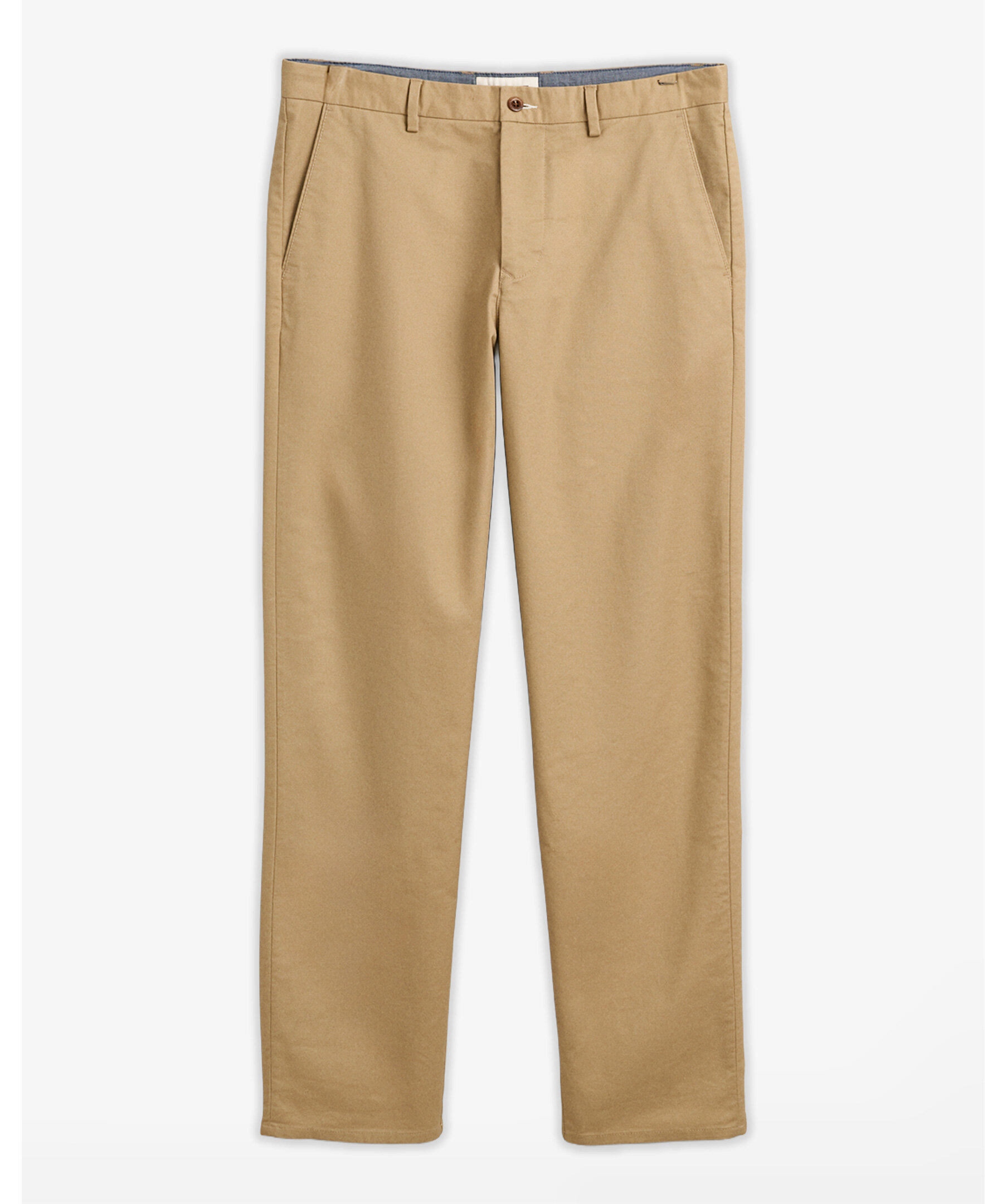 Khakifärgade chinos från Gant. Byxorna har en mellanhög midja, två sidfickor, två bakfickor med knapp, bälteshällor i midjan och GANT-logotyp på höger passpoalficka. Tillverkad i en bomullsblandning.