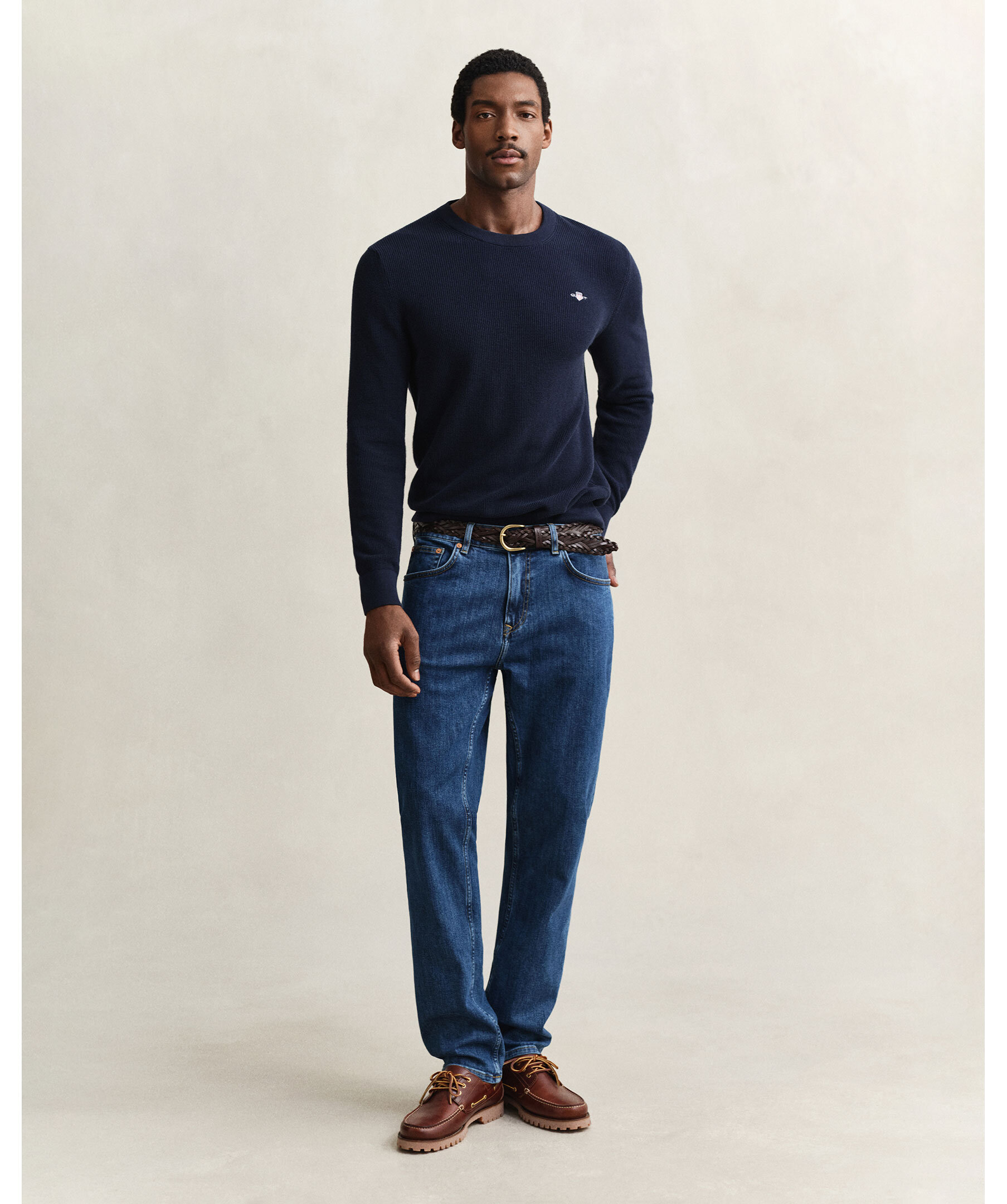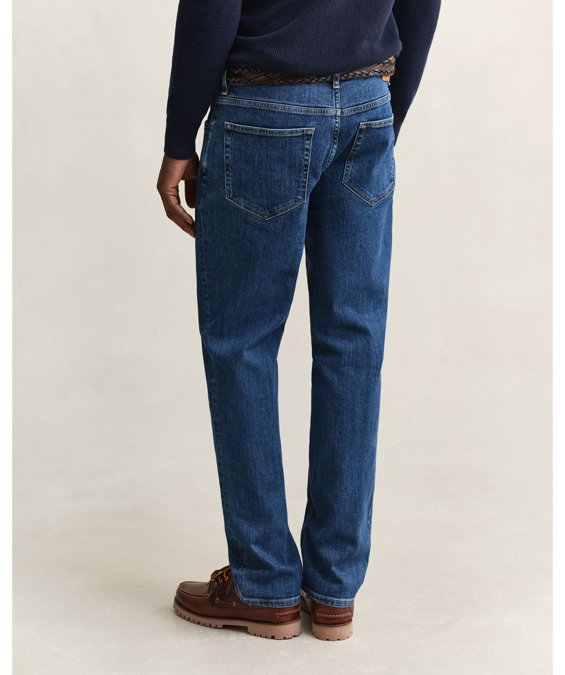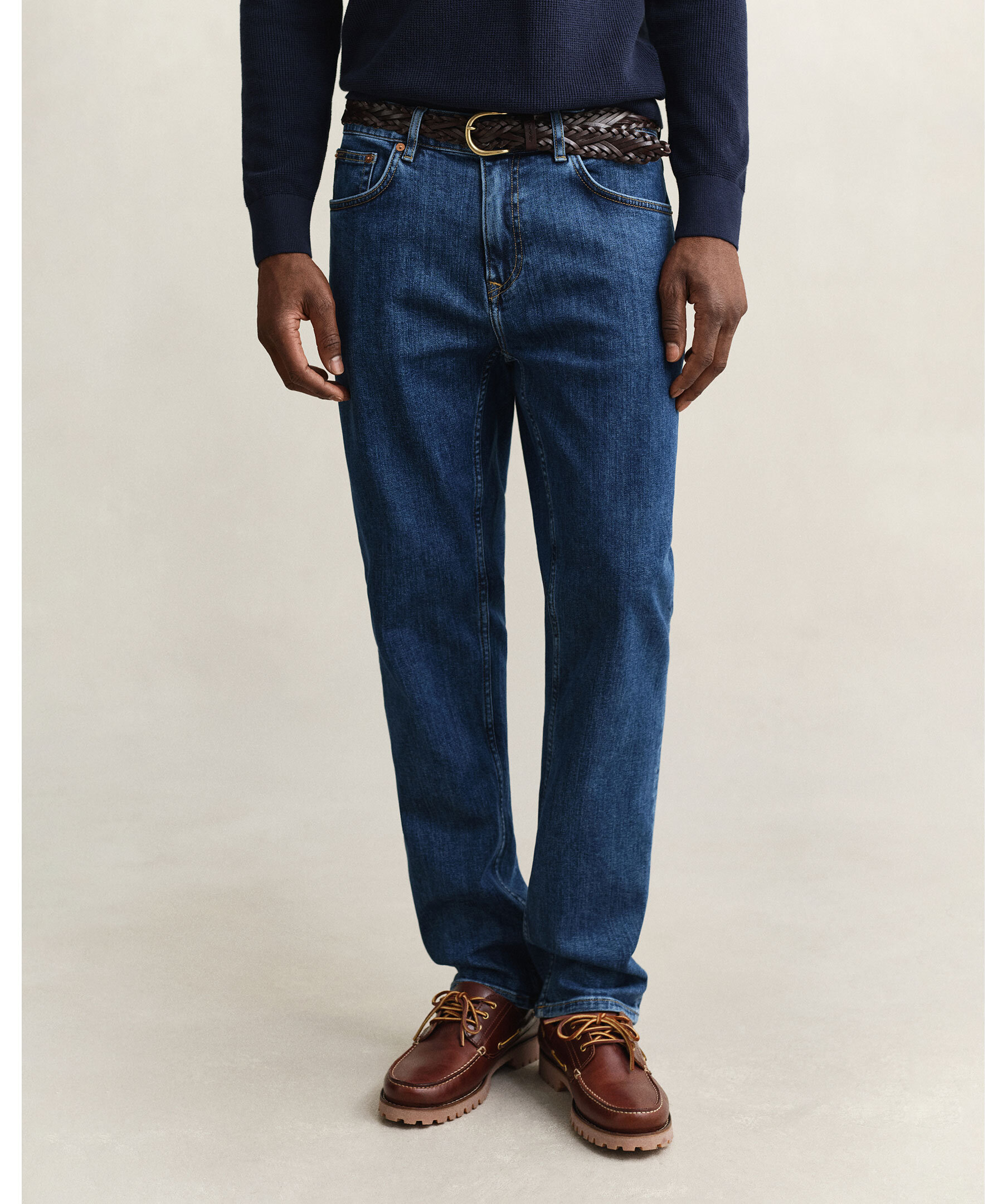 Jeans från Gant i slitstark 12 oz denim med lätt stretch för ökad komfort. Regular fit med medelhög midja och modern passform. Indigofärgad tvätt för ett uttrycksfullt utseende. Klassisk femficksmodell med märkta nitar och knappar, gylf med dragkedja samt läderetikett bak. Modellen har en uppdaterad passform som är normal i storleken – välj din vanliga Gant-storlek.