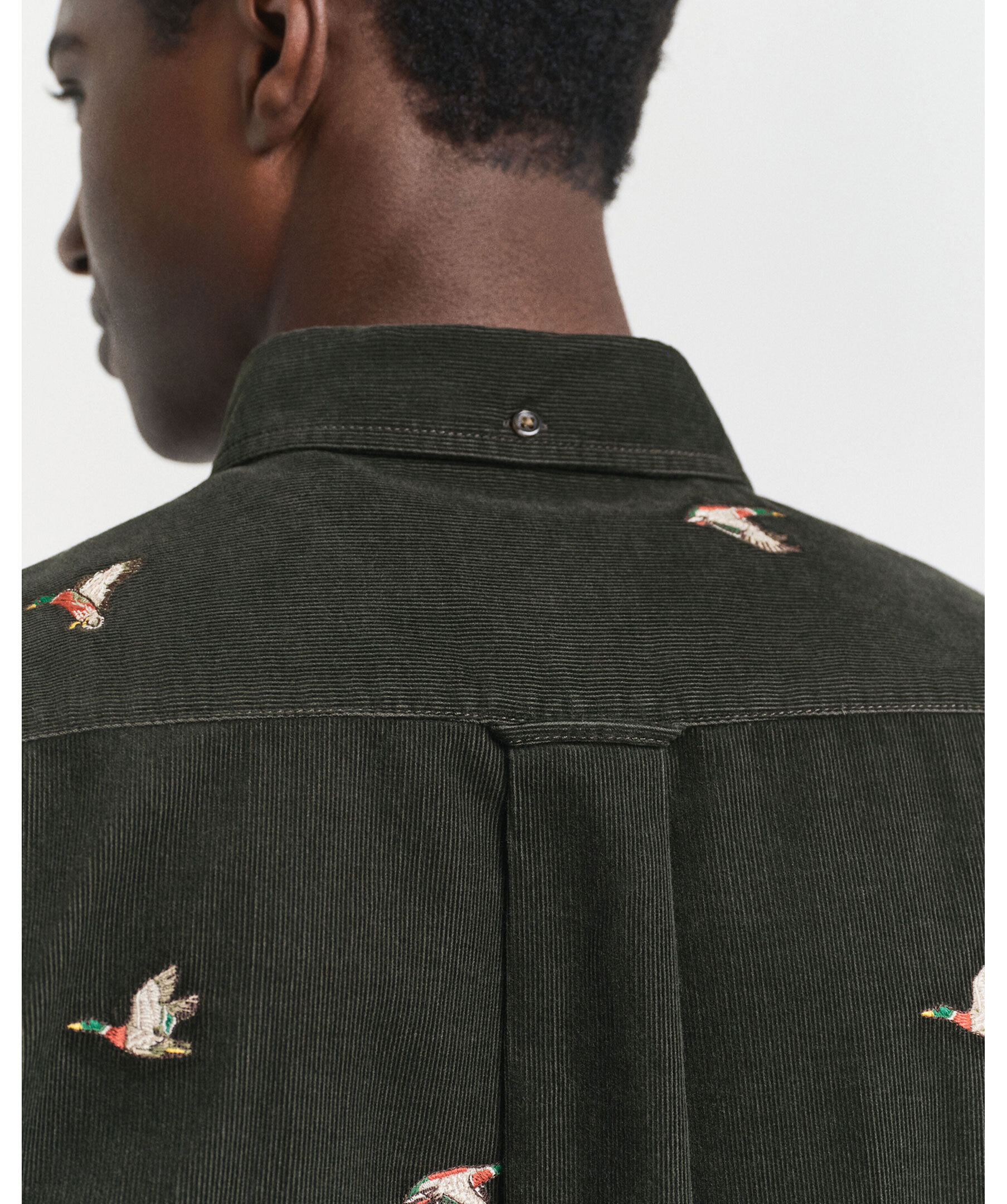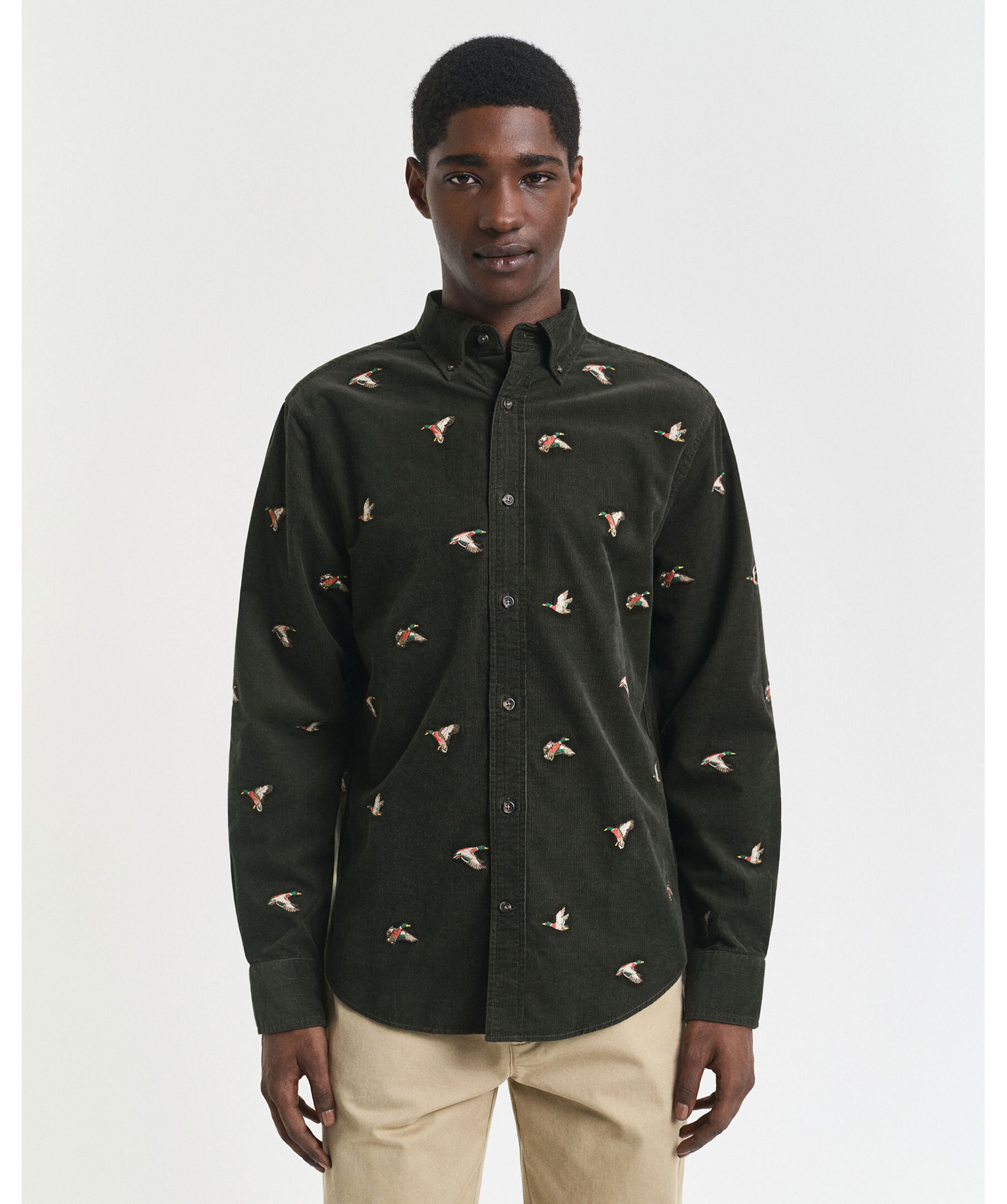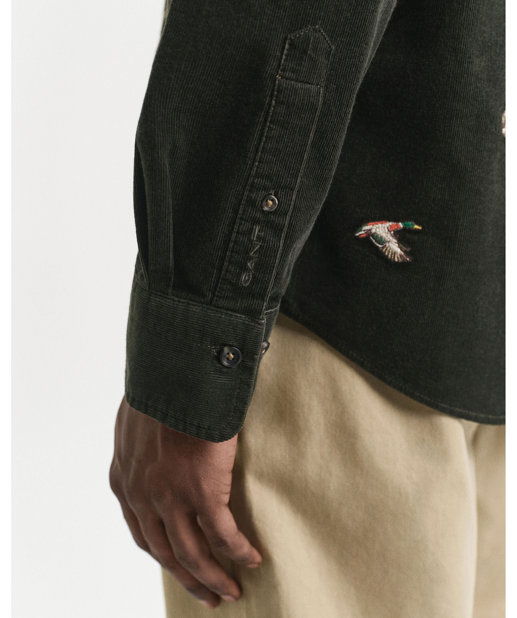 Mörkgrön skjorta i manchester från GANT. Button-down-krage och justerbara ärmslut. Dekorerad med broderad ankor. Skjortan har en broderad GANT-logga på ärmslutet och kombinerar klassisk stil med modern komfort. Passar lika bra till vardags som till lite mer uppklädda tillfällen.