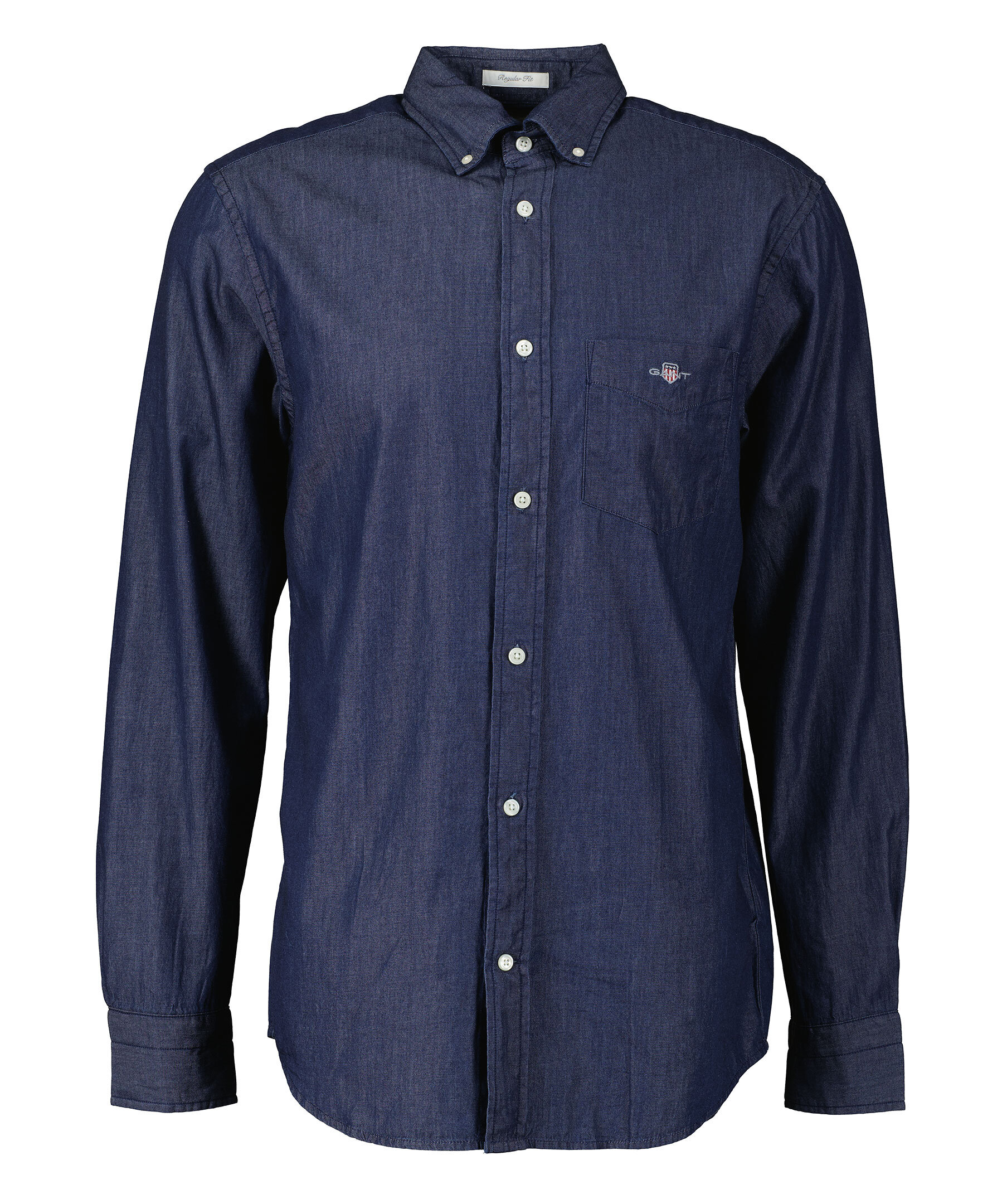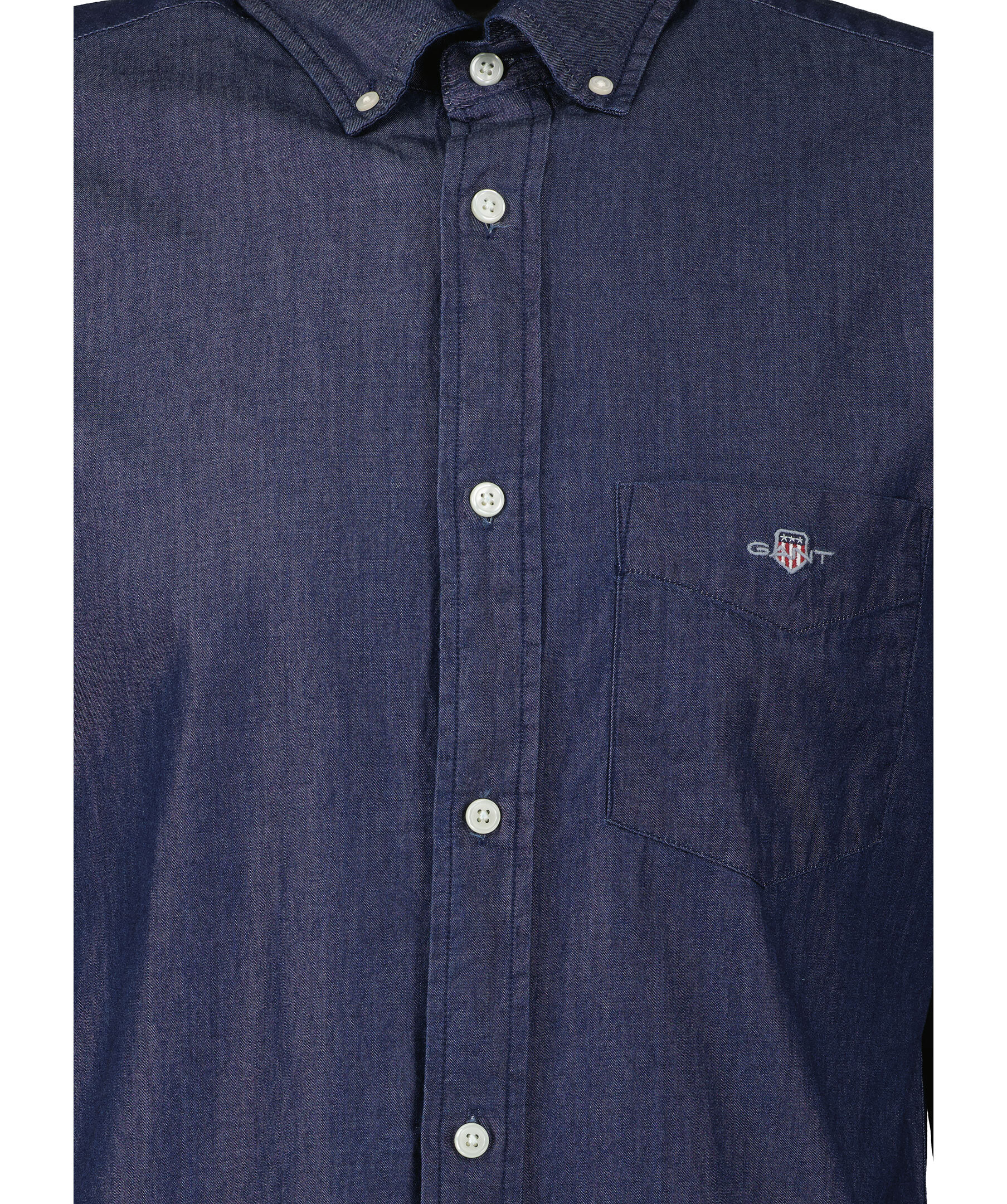Mörkblå jeansskjorta från Gant. Stängs framtill med knappar. Enkla manschetter. Button down-krage. Bröstficka på vänster sida med broderad logotyp. Boxpleat med locker loop i ryggen.