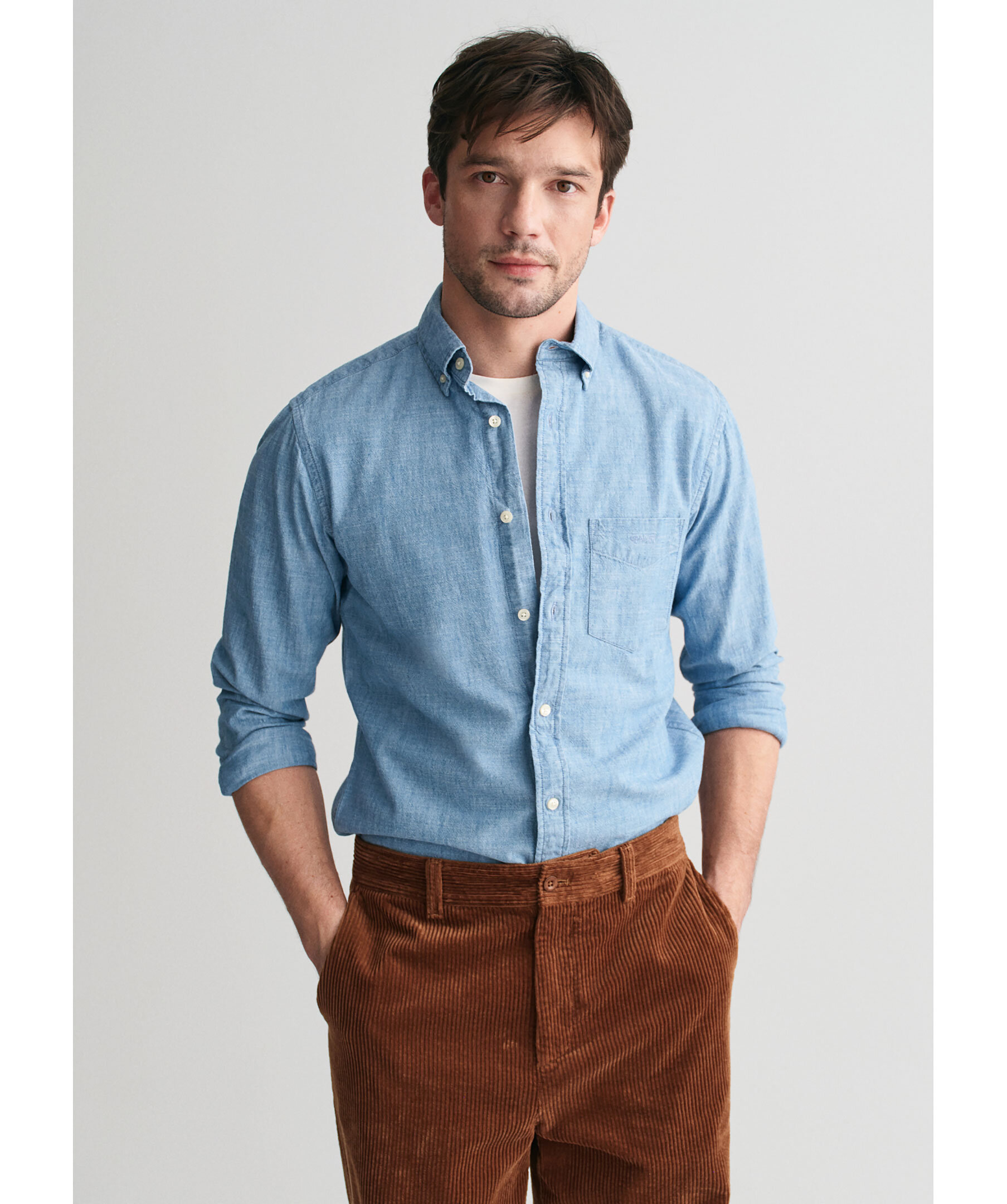 Ljusblå jeansskjorta från Gant. Skjortan har button-down krage, justerbara manchetter, rundad fåll, boxpleat med locker loop i ryggen samt broderad logotyp på bröstfickan. Tillverkad i bomull.