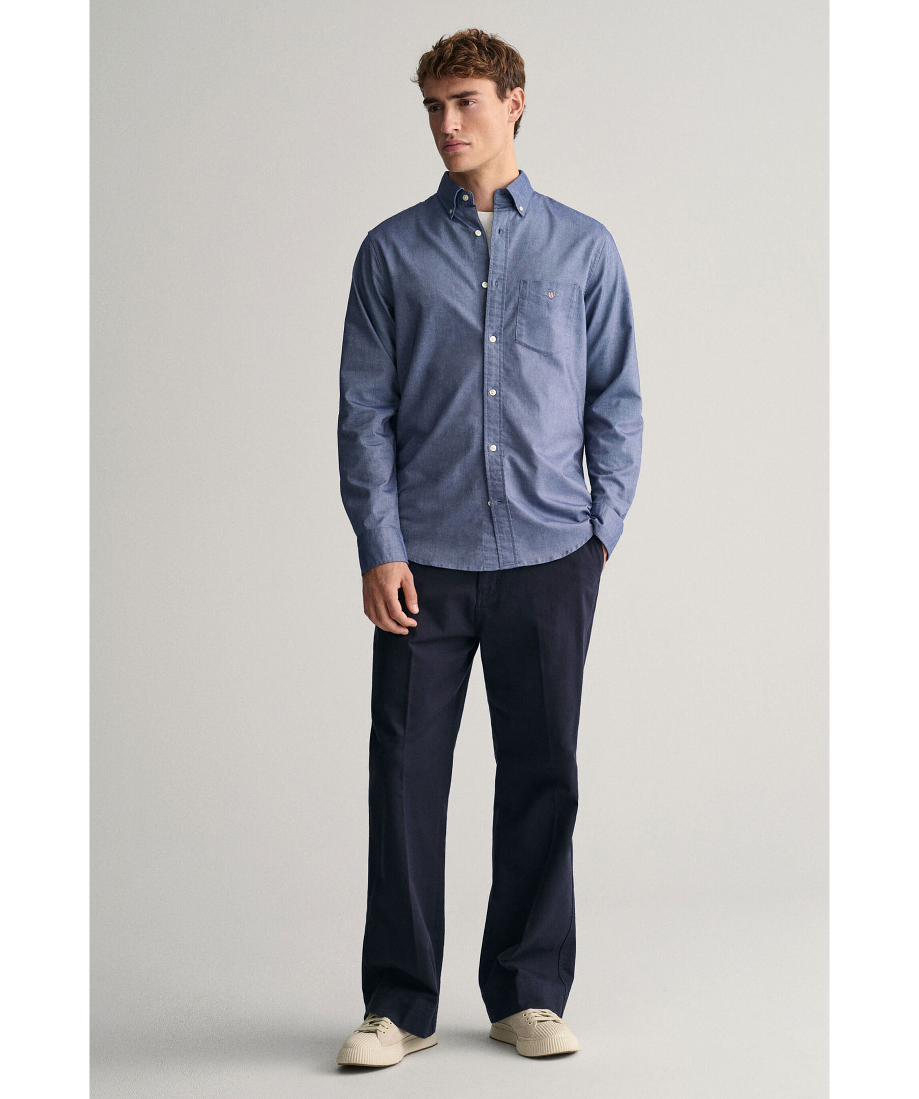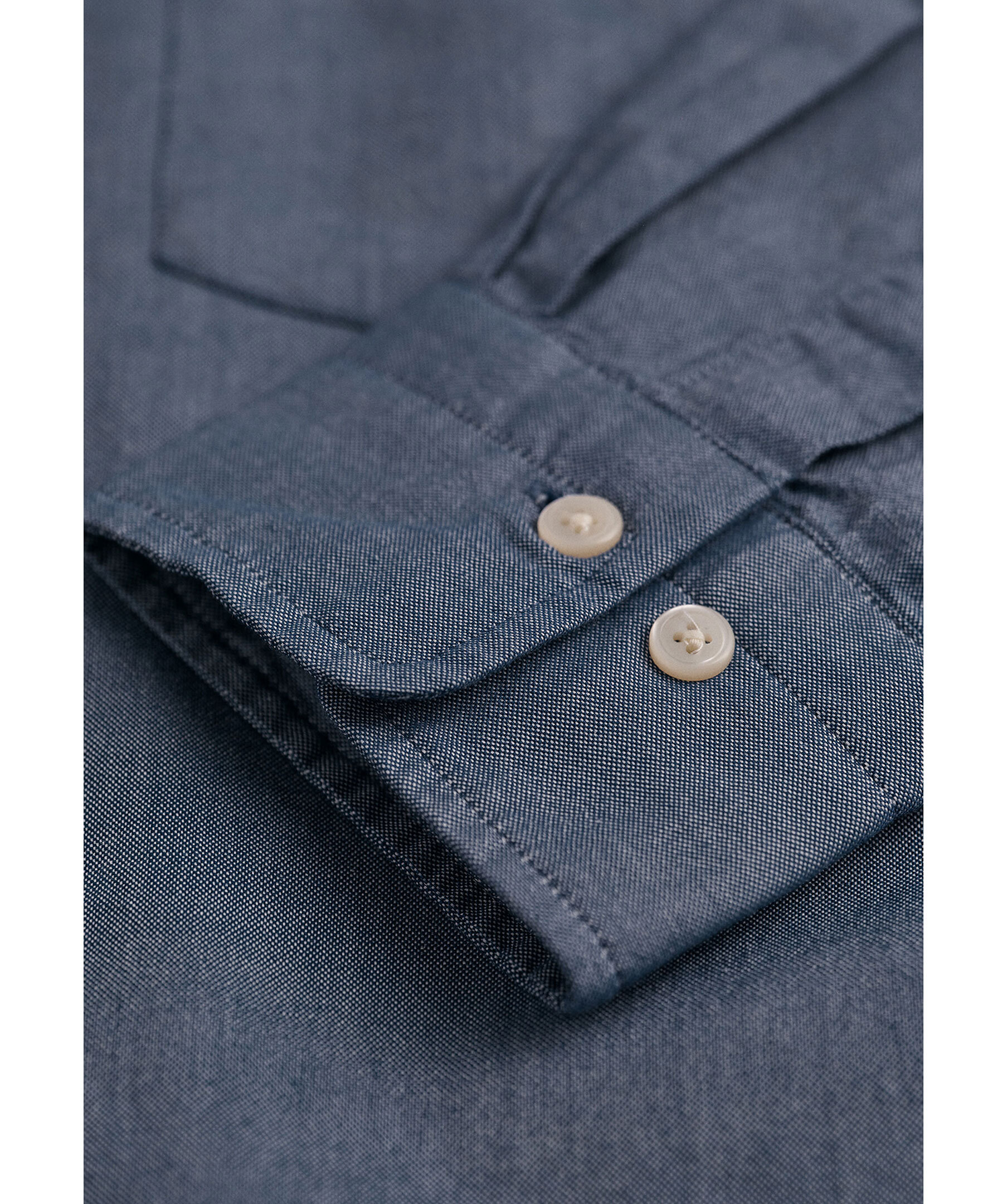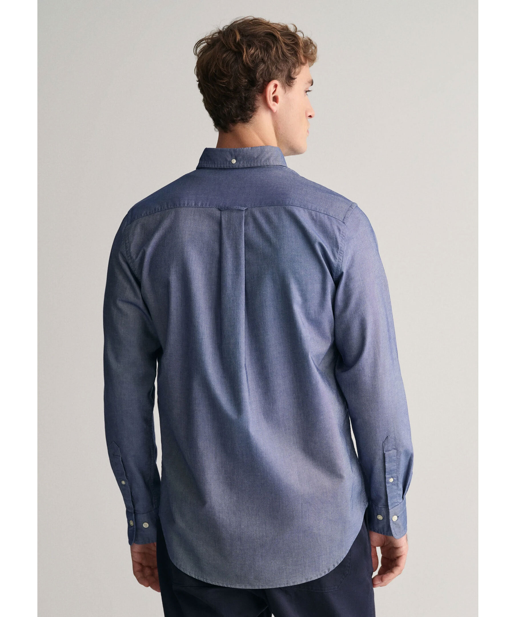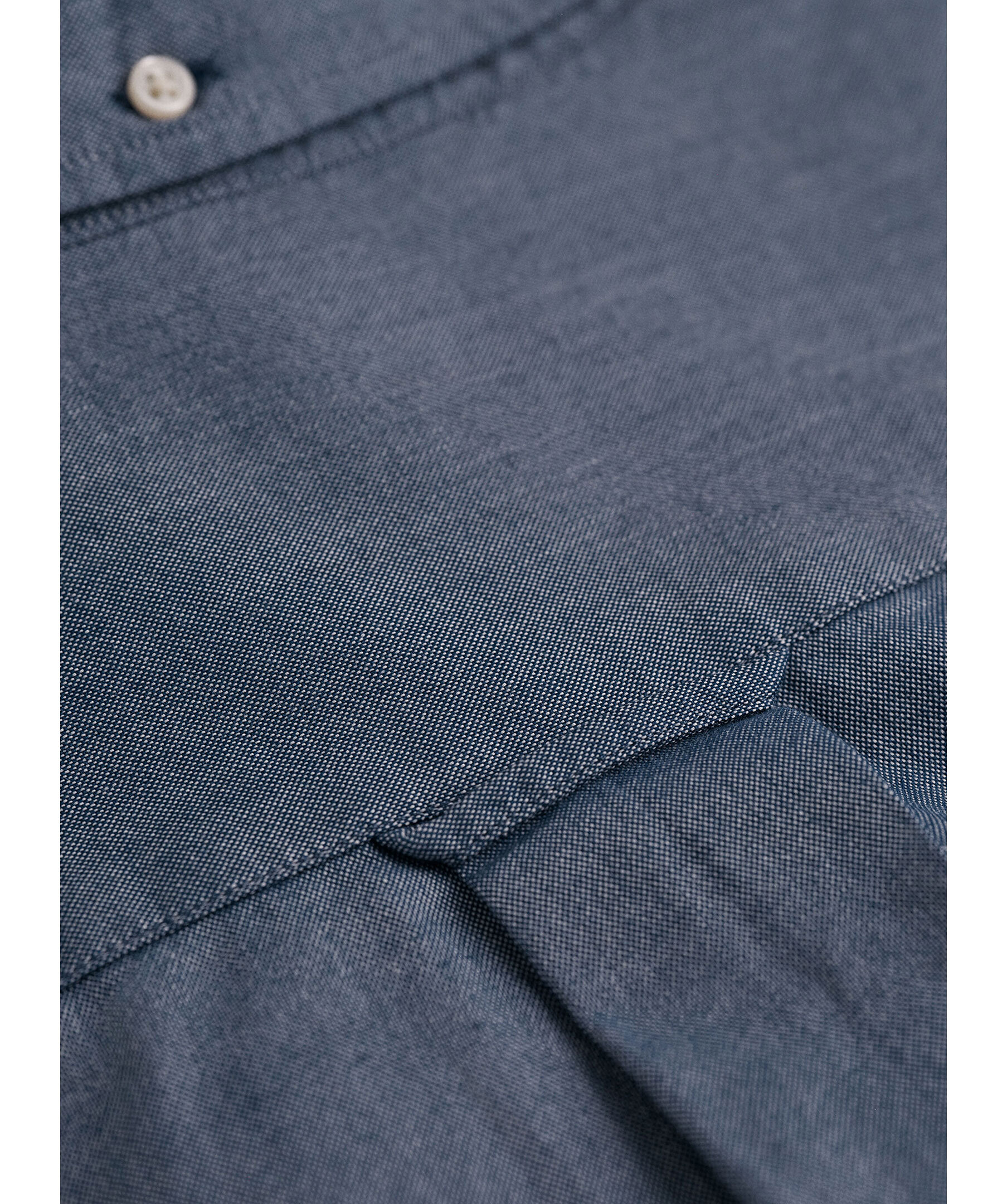 Blå oxfordskjorta i slitstark bomull från Gant. Skjortan har en 80-talsinspirerad sköldlogotyp med retrokänsla på bröstfickan. Skjortan har button down-krage och rundad fåll och är perfekt för businessgarderoben. Boxpleat med locker loop i ryggen och justerbara manschetter.