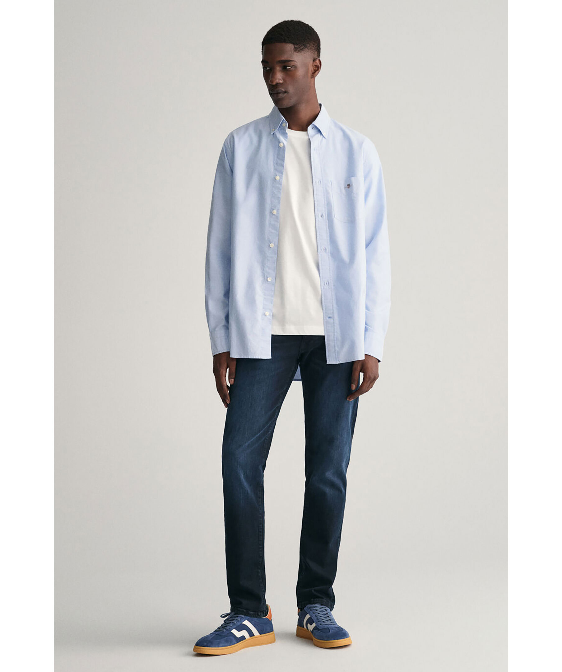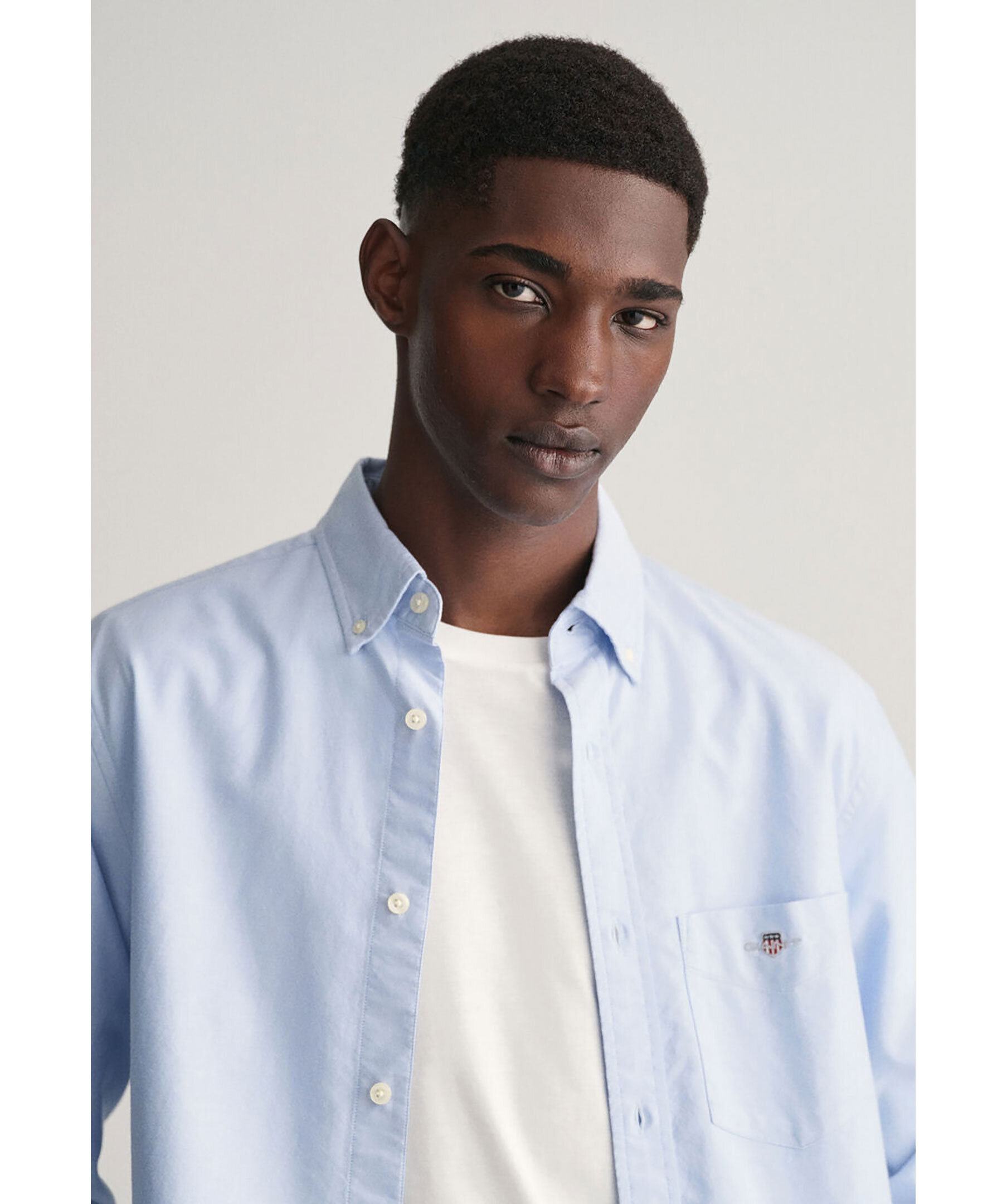 Ljusblå oxfordskjorta i slitstark bomull från Gant. Skjortan har en 80-talsinspirerad sköldlogotyp med retrokänsla på bröstfickan. Skjortan har button down-krage och rundad fåll och är perfekt för businessgarderoben. Boxpleat med locker loop i ryggen och justerbara manschetter.