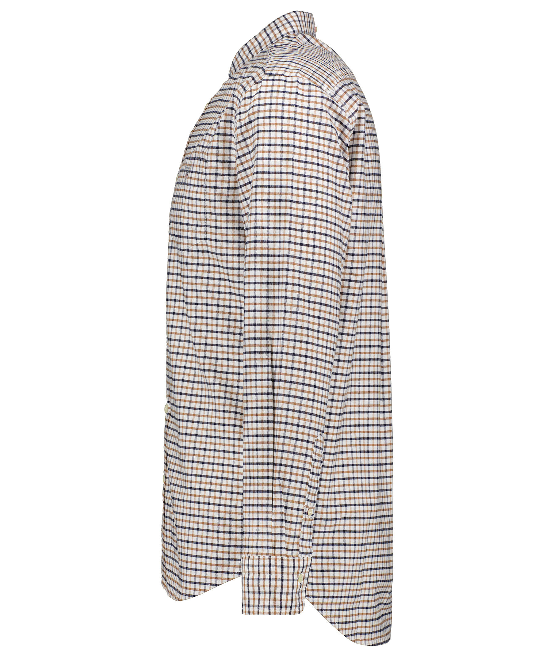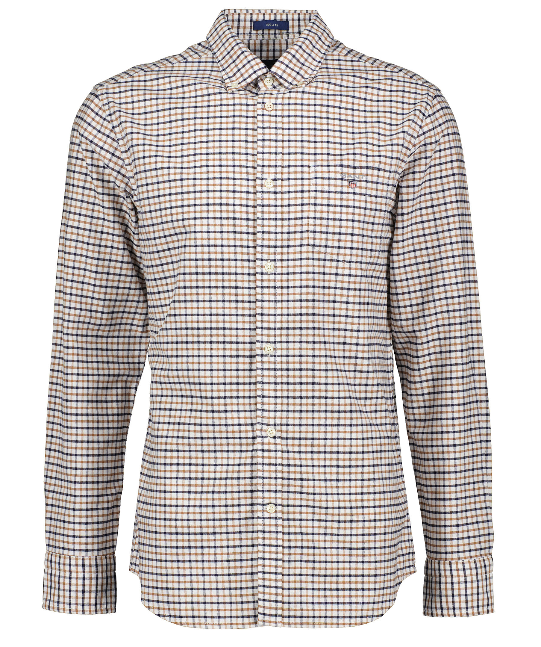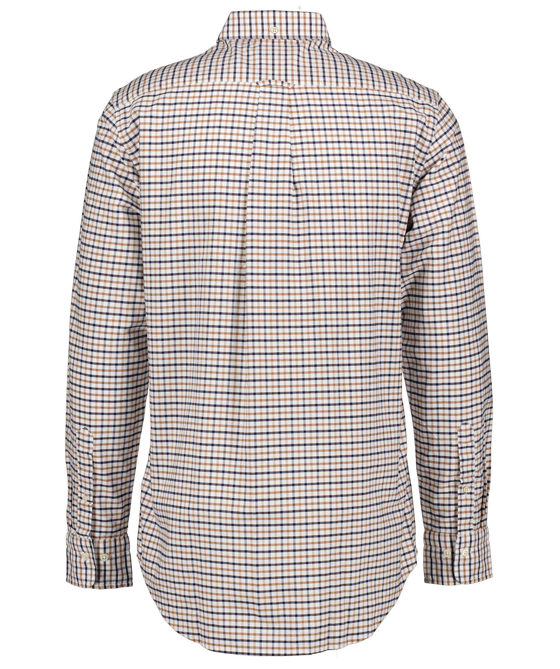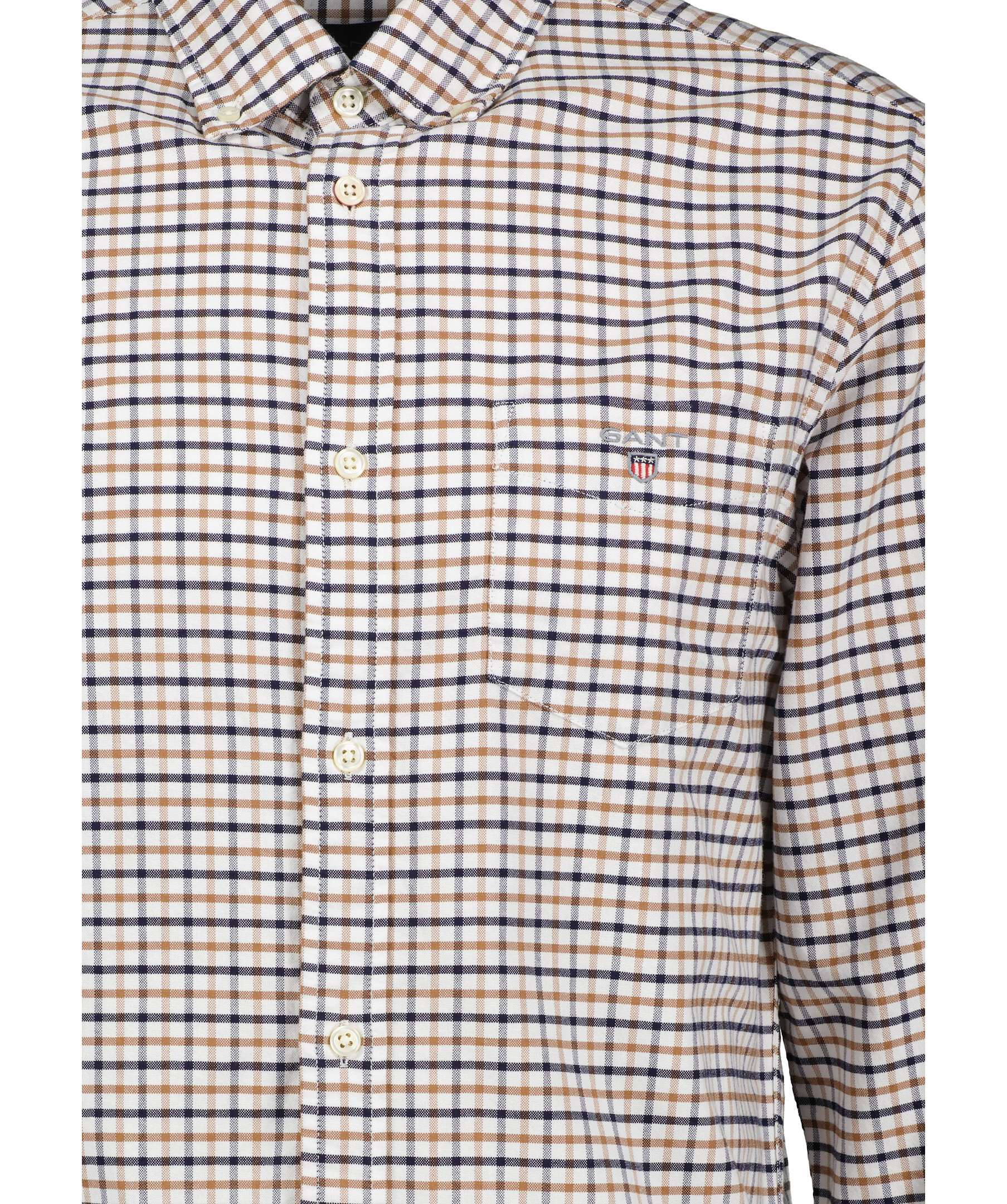 Rutig oxfordskjorta i vitt, brunt och svart från Gant. Skjortan har en normal passform, bröstficka med broderad Gant-sköld. Button down krage samt locker loop och boxpleat i ryggen. Gjord i 100% bomull.