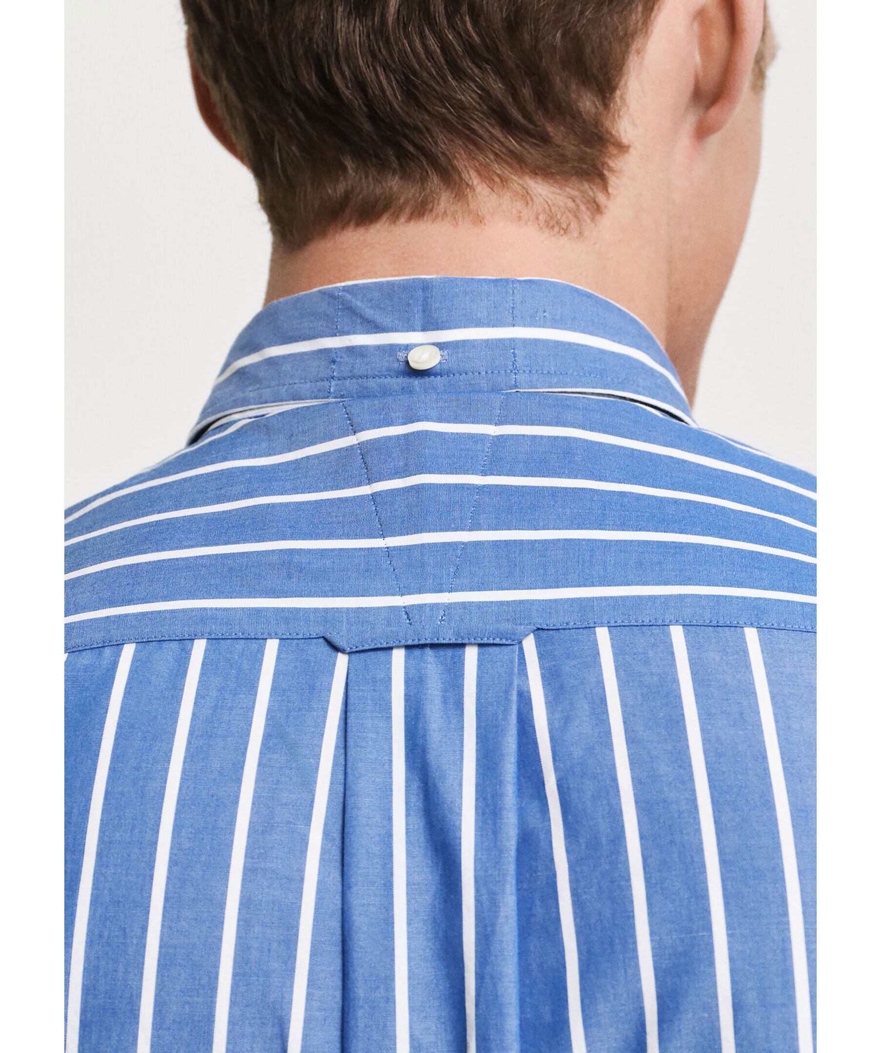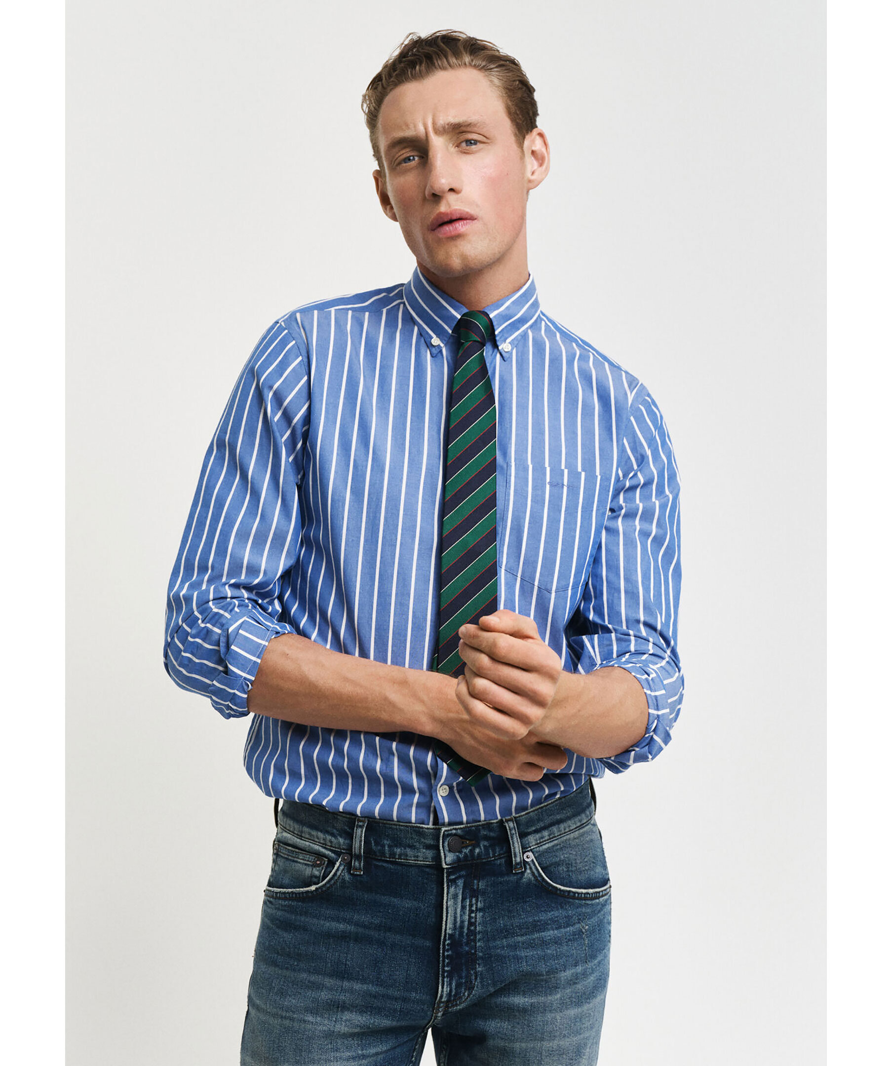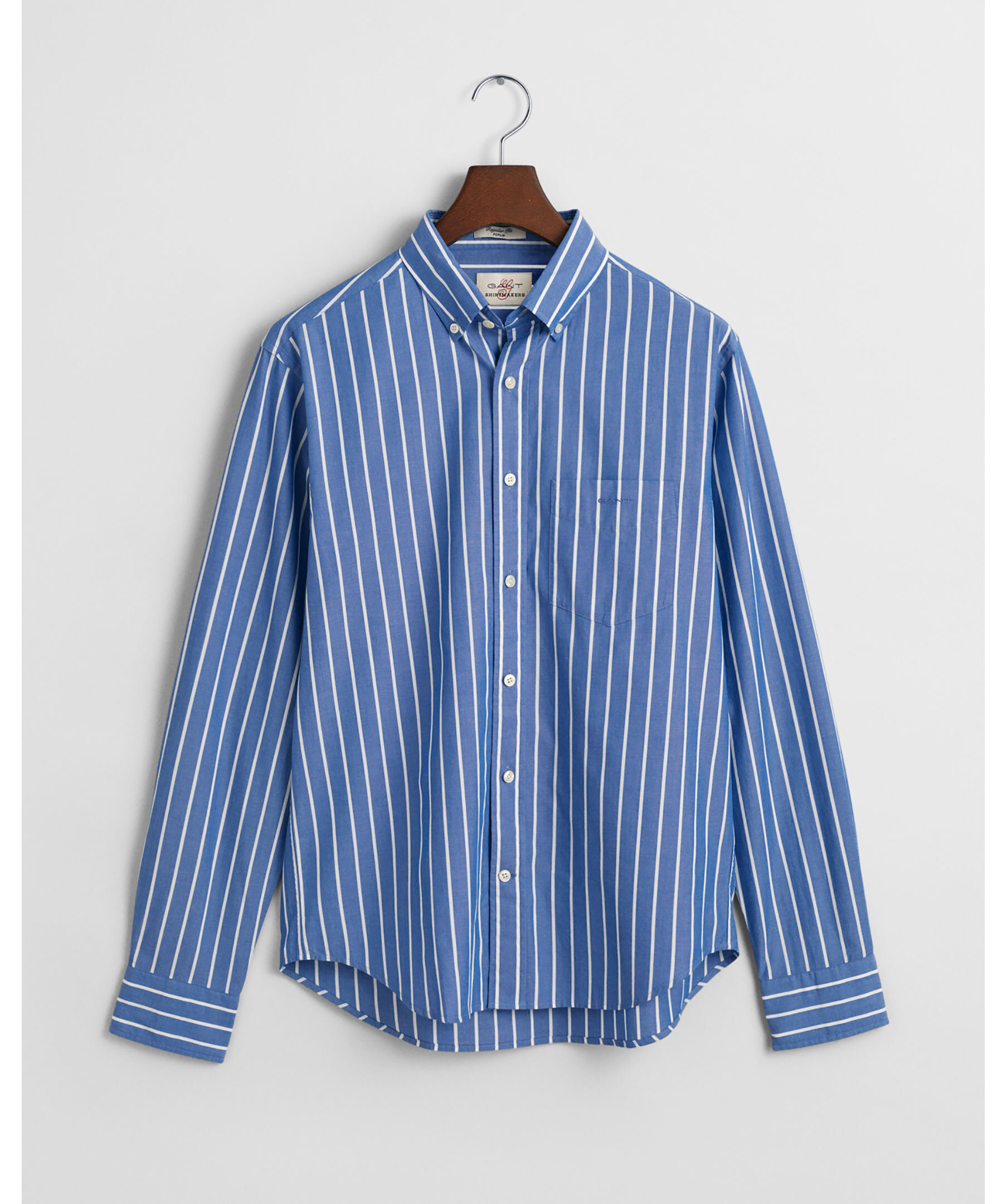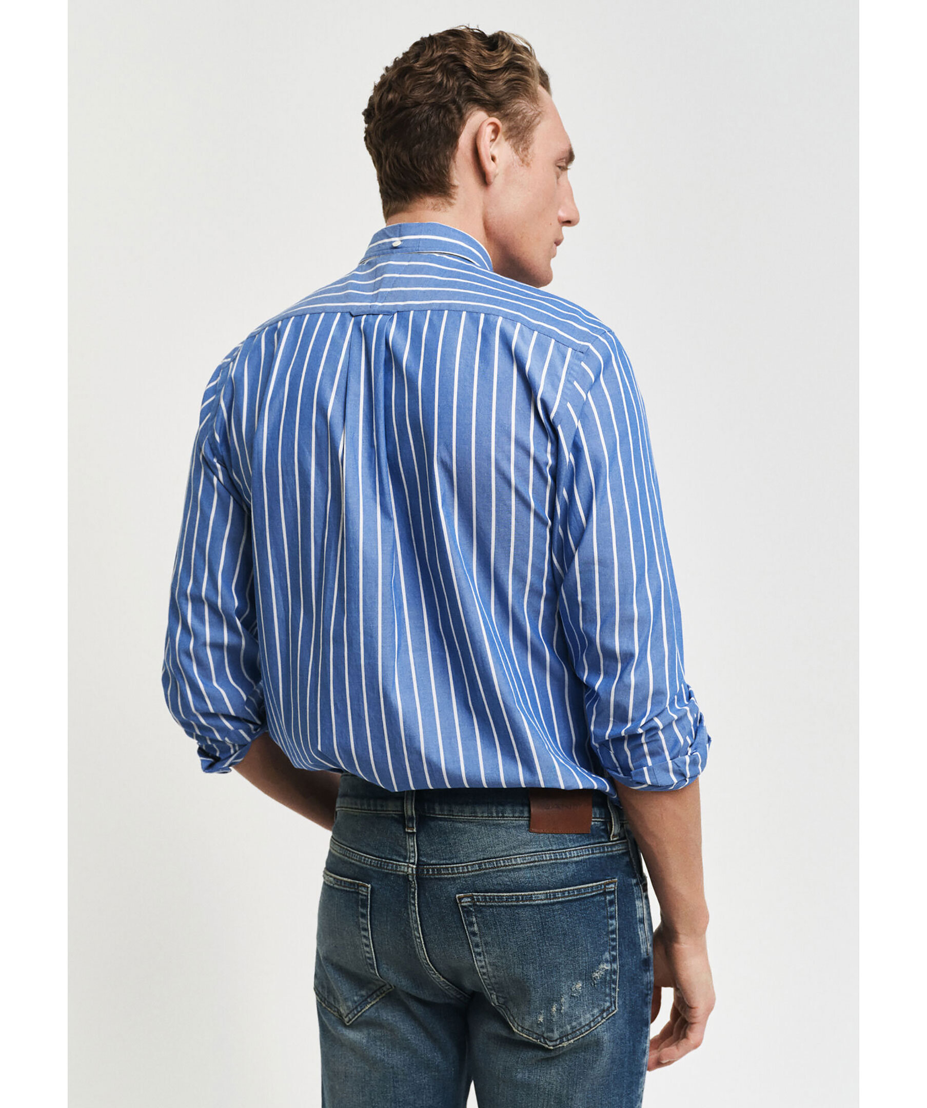 Blå, randig skjorta från Gant. Skjortan är inspirerad av vintageplagg från GANT och har garnfärgade ränder, button-down krage, rundad fåll, justerbara manschetter, boxpleat med locker loop i ryggen samt broderad logotyp på bröstfickan. Tillverkad i bomull.