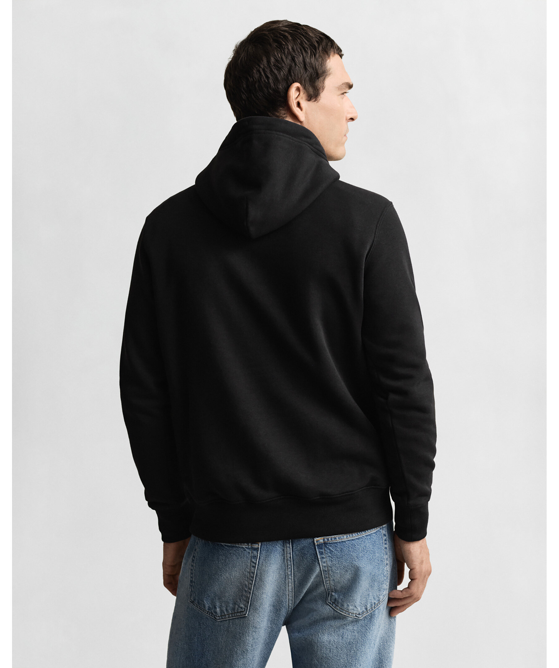Svart hoodie från Gant. Hoodien har huva, känguruficka på magen, ribbstickade muddar vid ärm- och plaggslut samt broderad Gant-logotyp på bröstet. Tillverkad i en bomullsblandning.