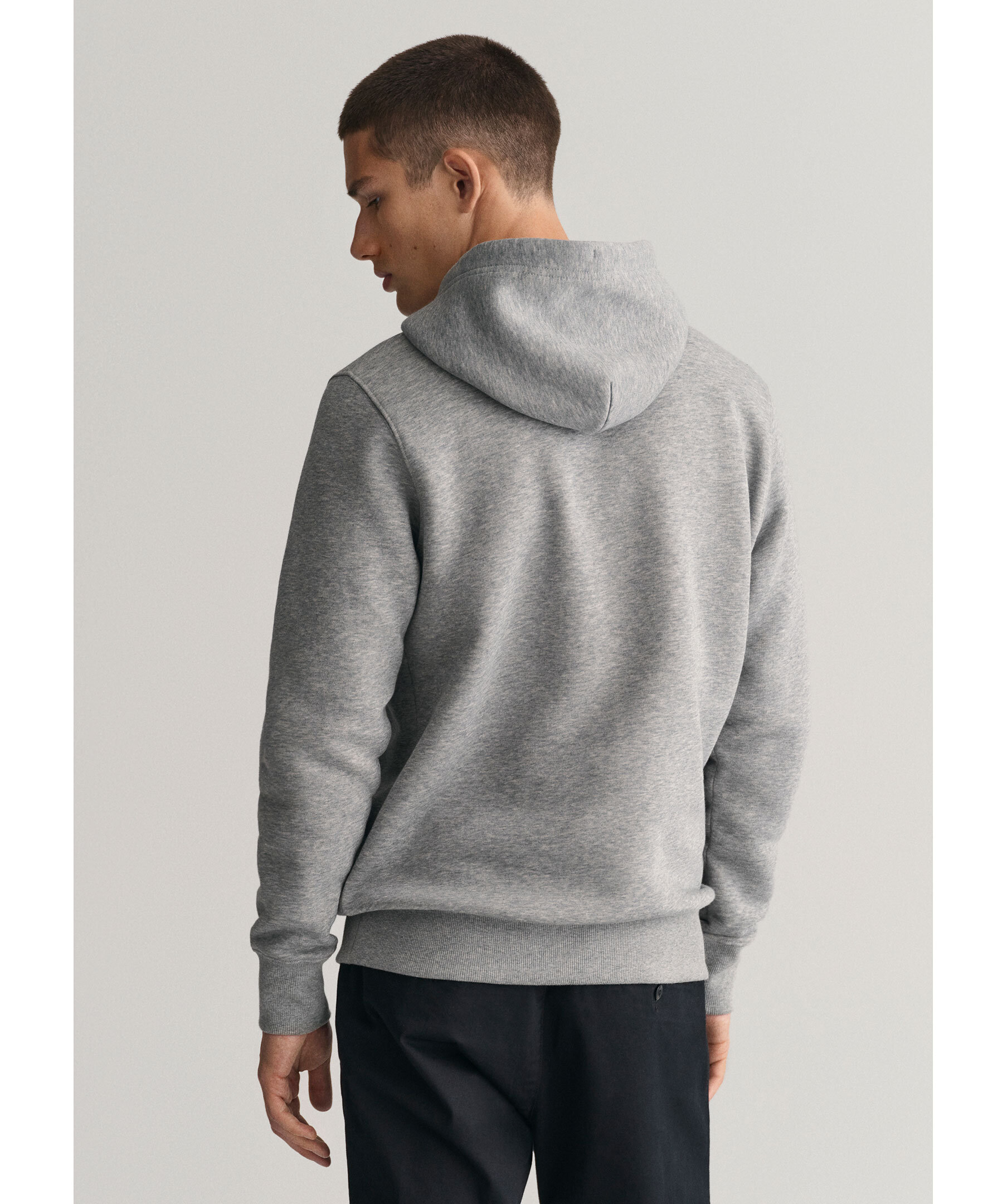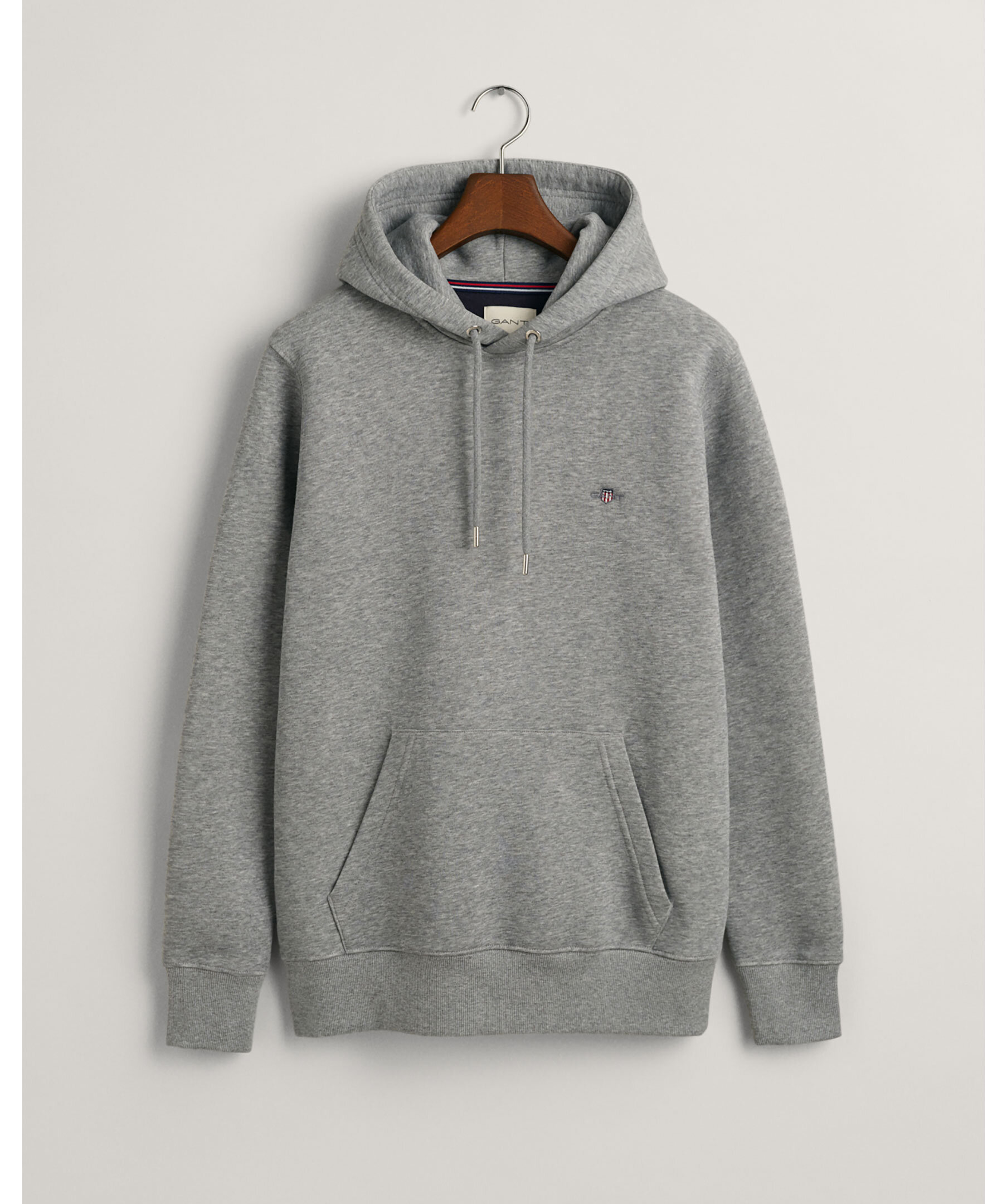 Gråmelerad hoodie från Gant. Hoodien har huva, känguruficka på magen, ribbstickade muddar vid ärm- och plaggslut samt broderad Gant-logotyp på bröstet. Tillverkad i en bomullsblandning.