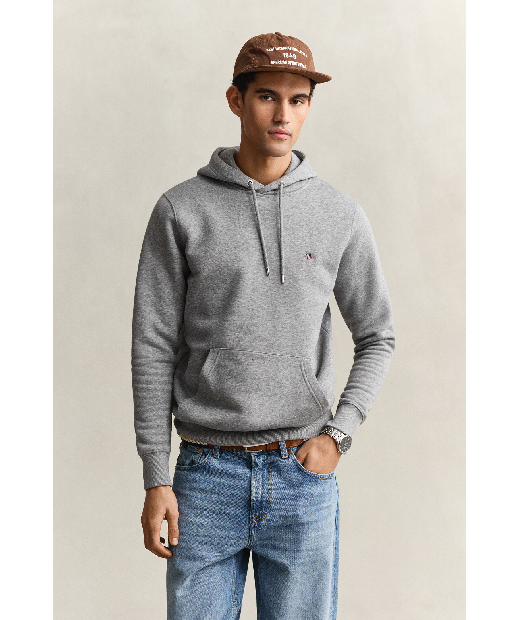 Gant. Reg shield hoodie - Grå