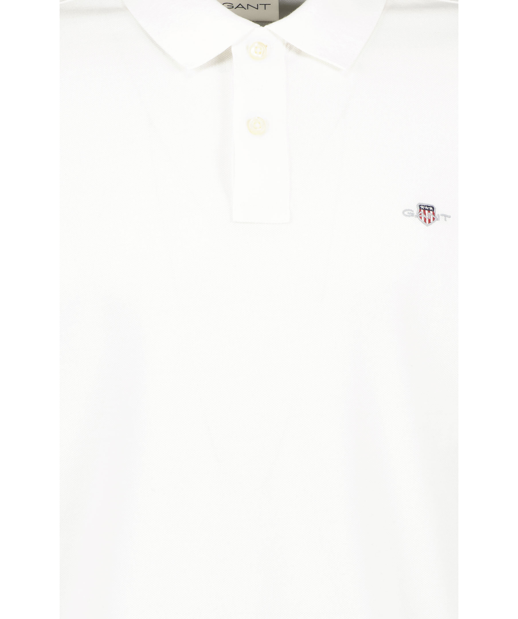 Vit pikétröja från Gant. Tillverkad i 100% bomull. Broderad logga på bröstet, normal passform. Slätstickad krage. Korta sidosprund.