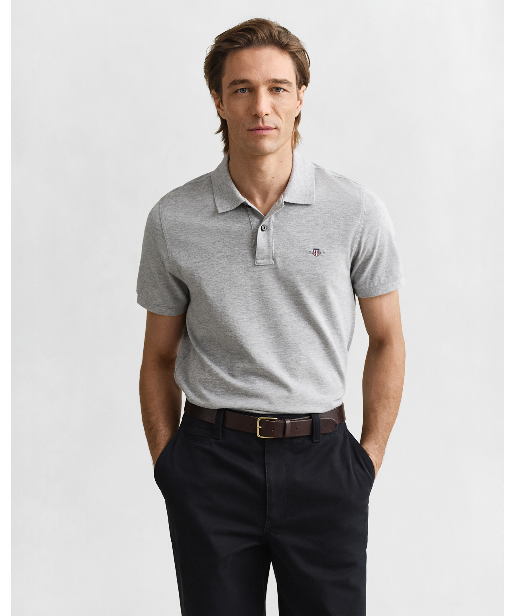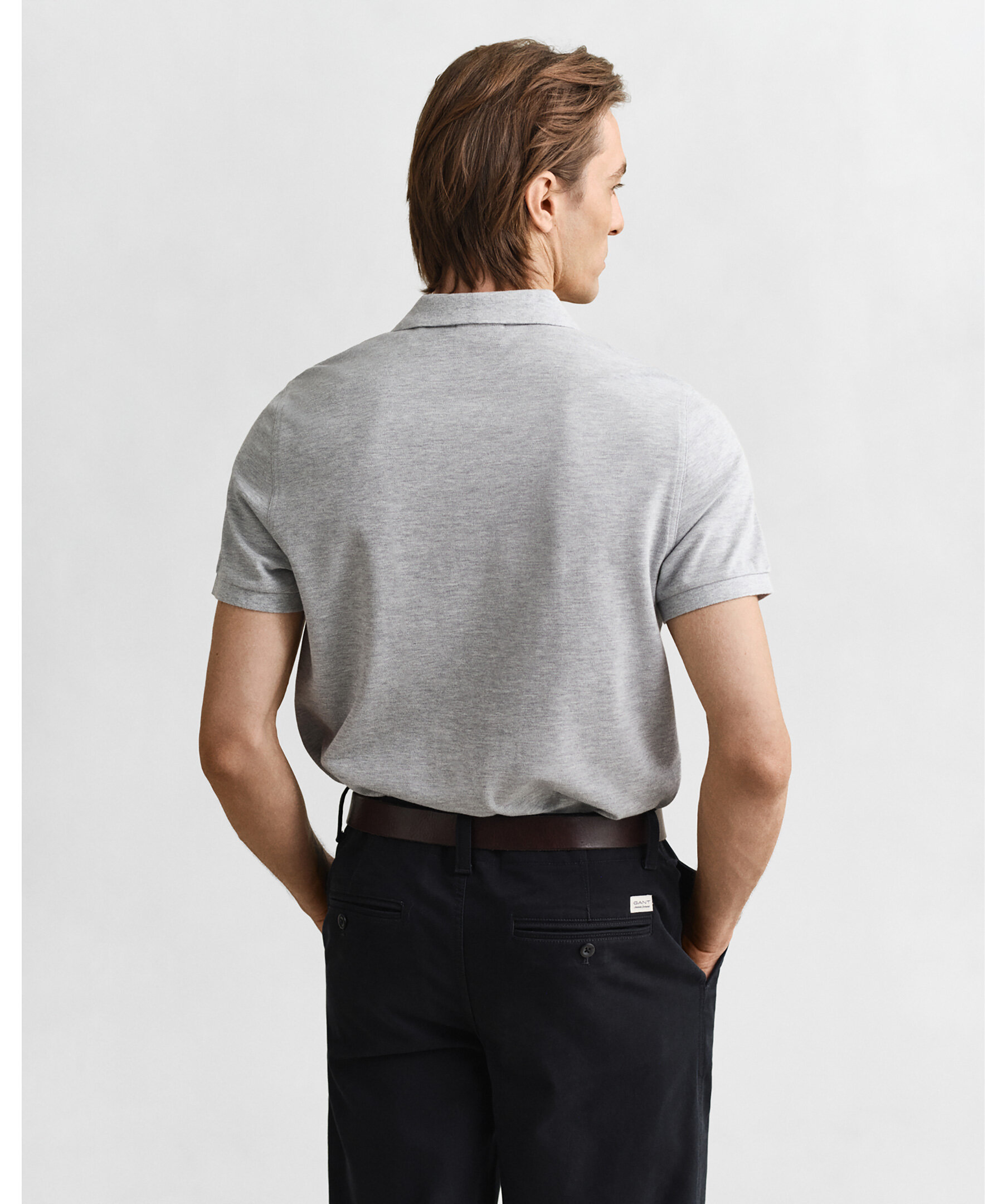Grå pikétröja från Gant. Tillverkad i 100% bomull. Broderad logga på bröstet, normal passform. Slätstickad krage. Korta sidosprund.