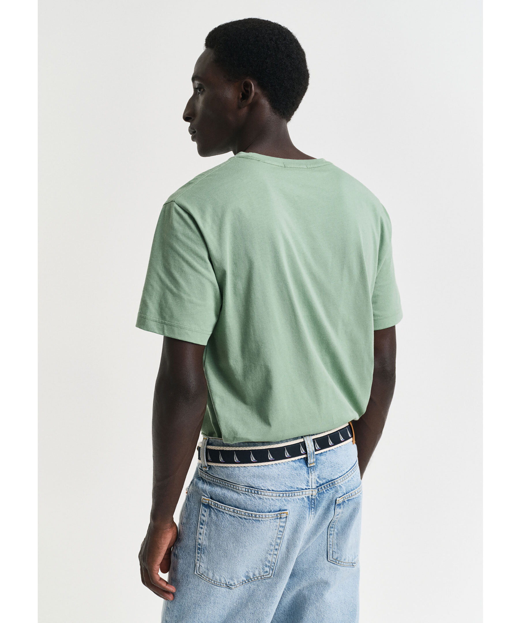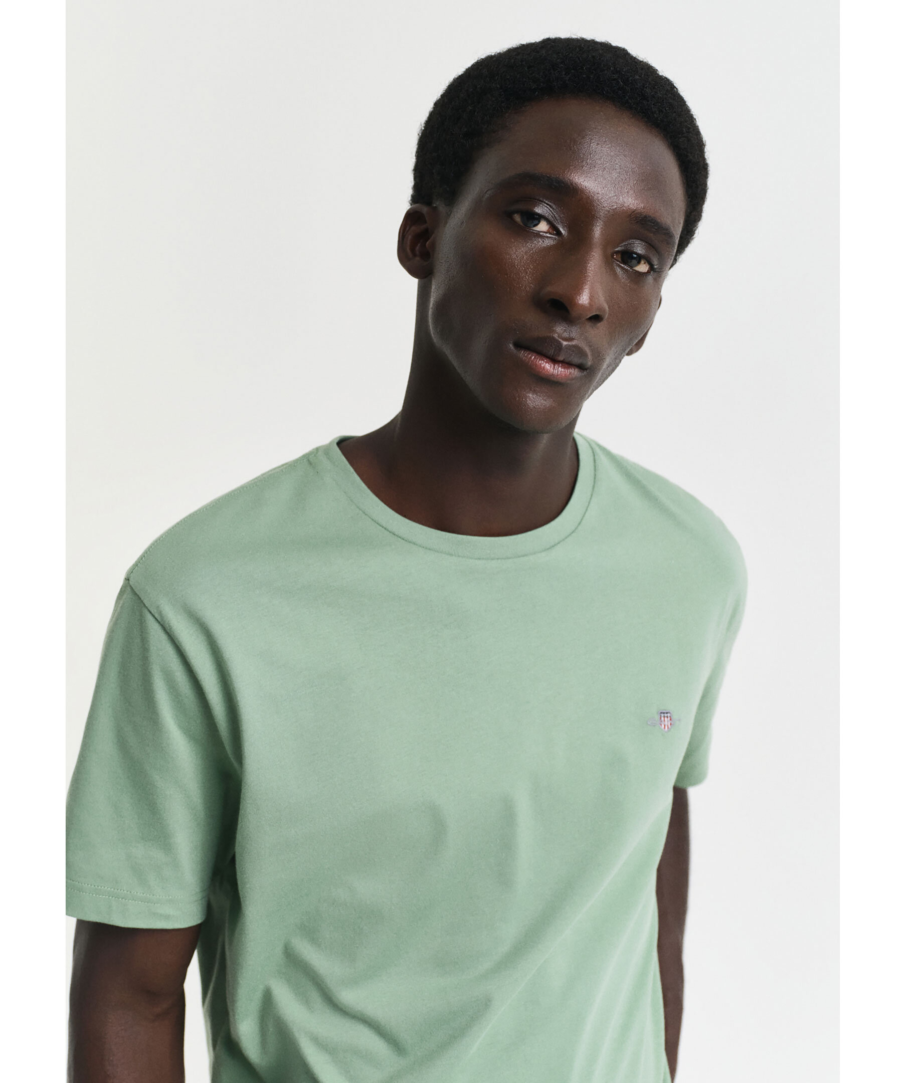 Grön T-shirt från Gant. T-shirten har ribbad rund krage, liten broderad logotyp på vänster bröst och är tillverkad av 100% bomull.