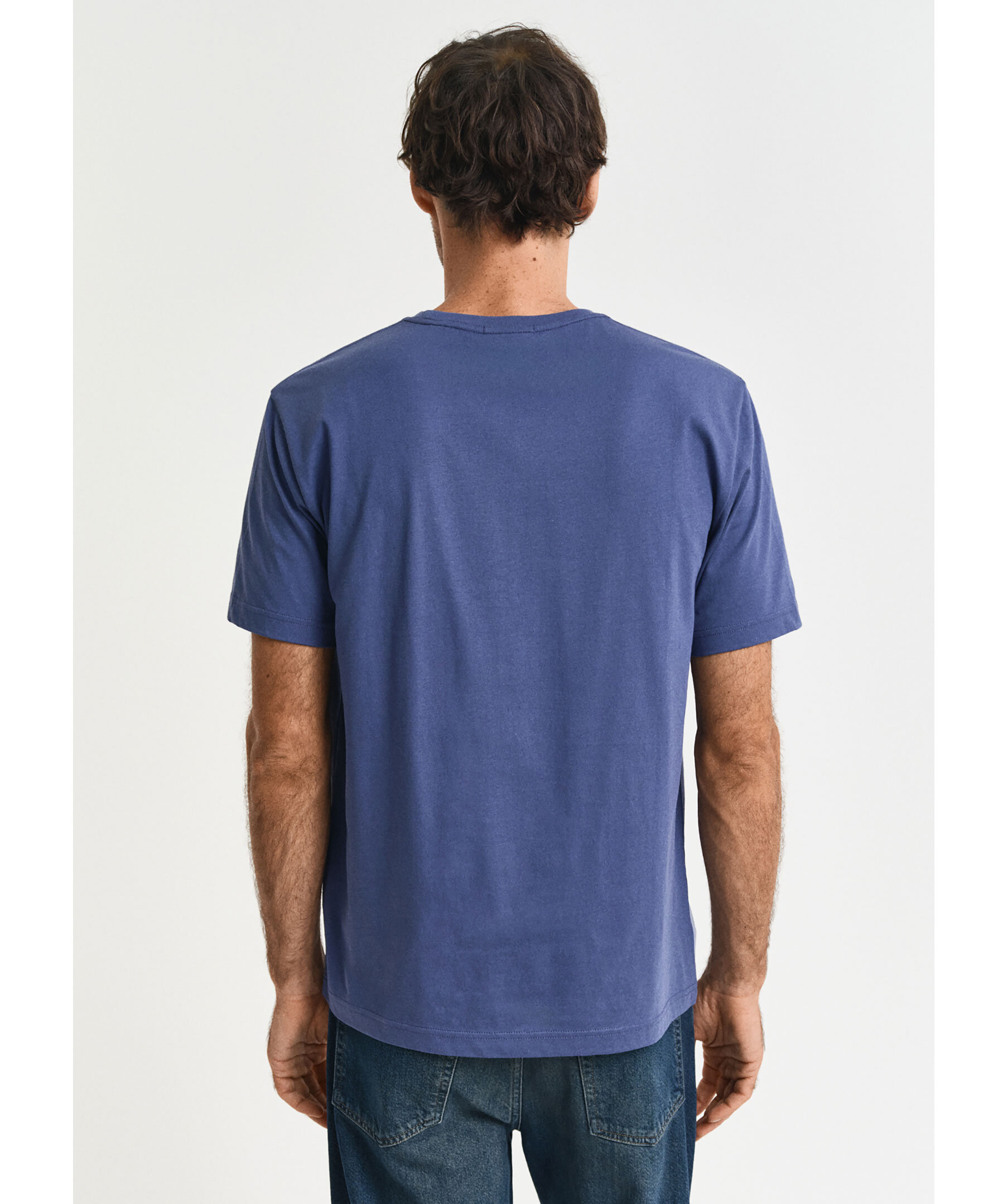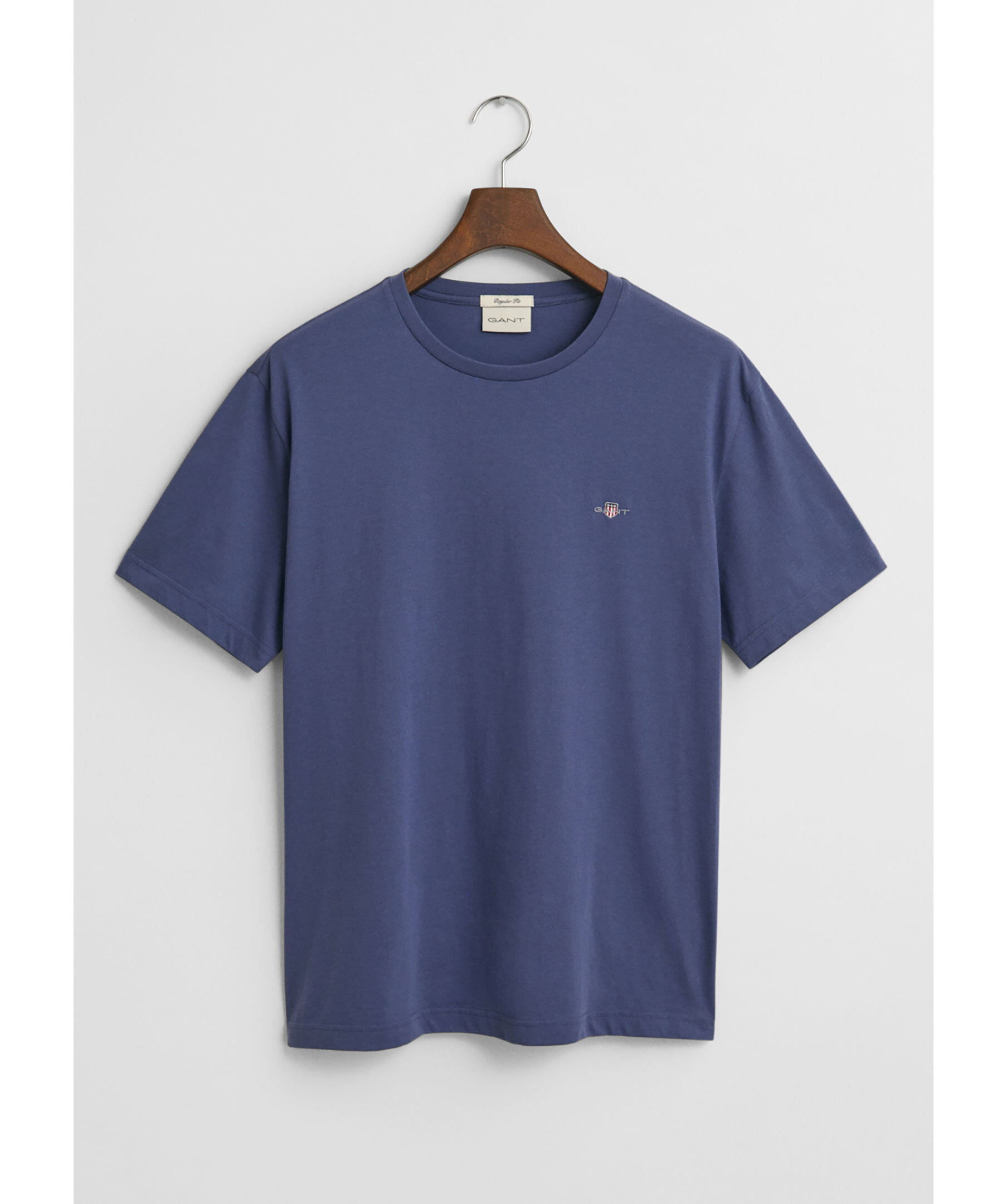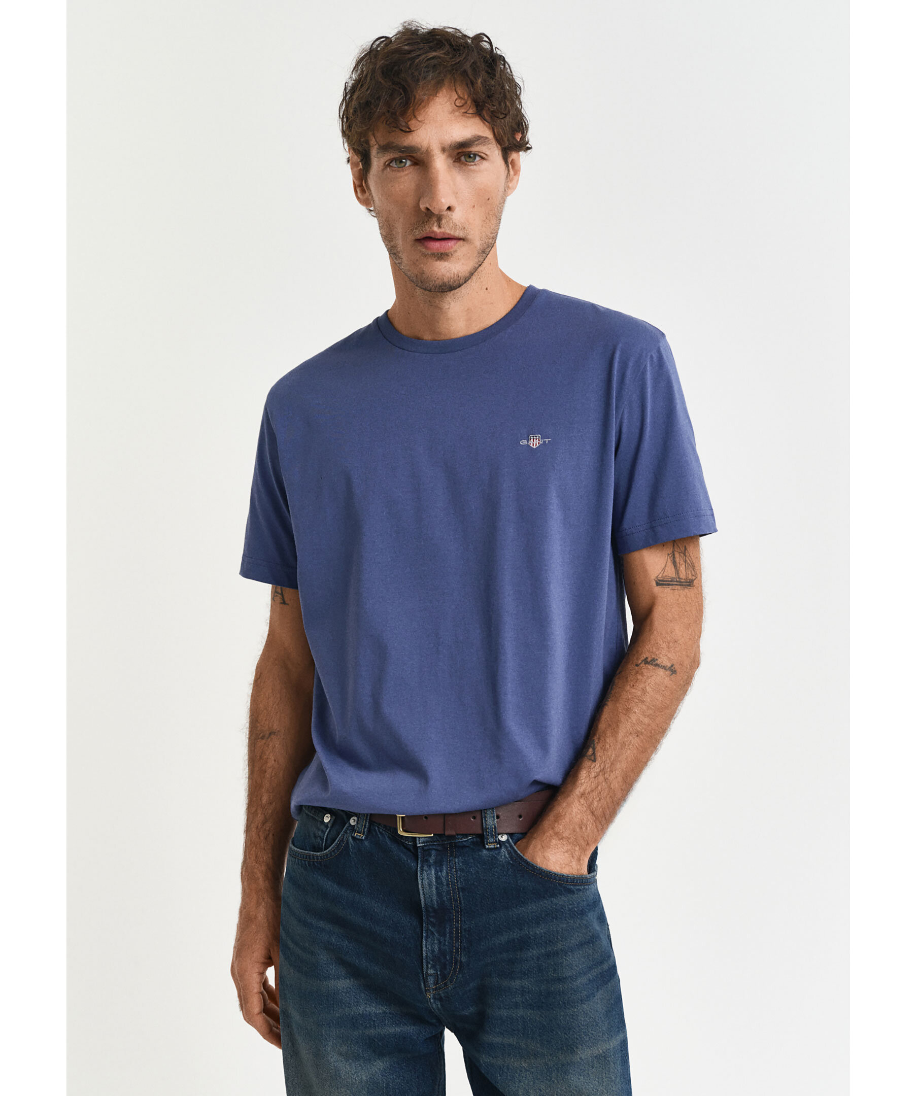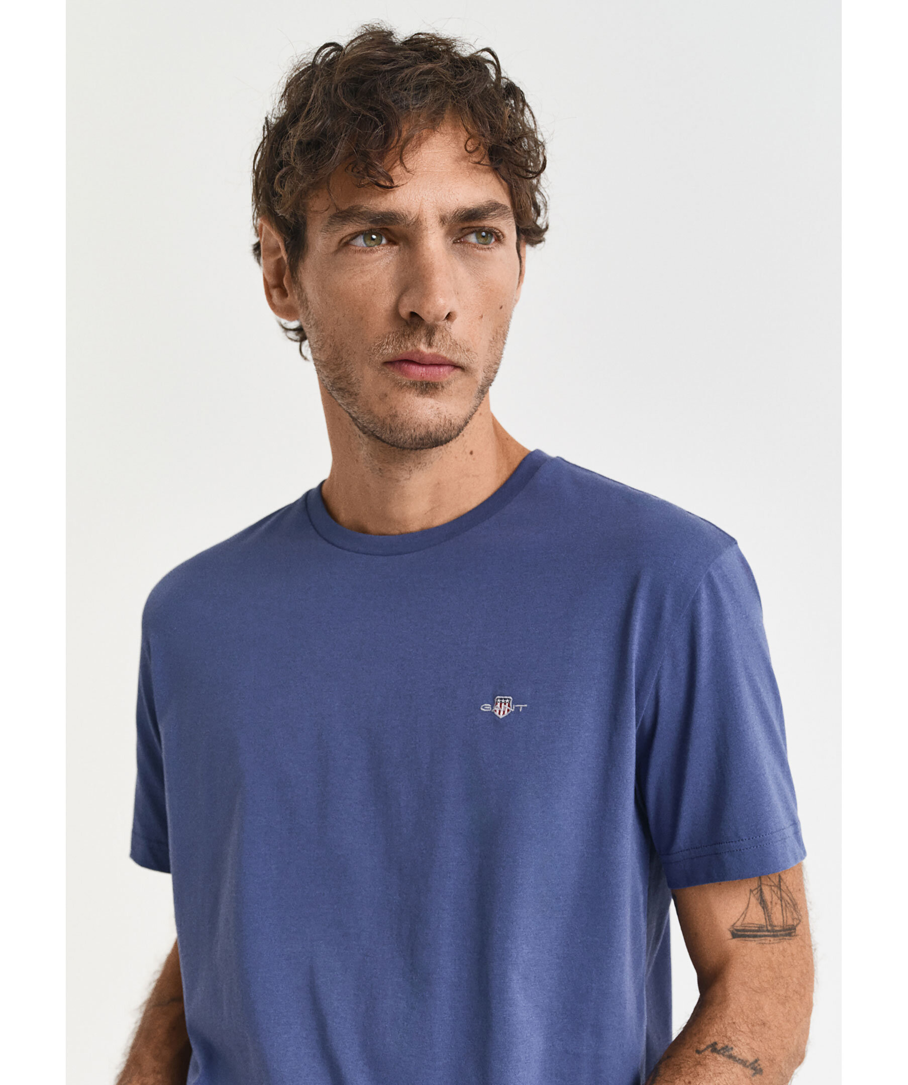 Blå T-shirt från Gant. T-shirten har ribbad rund krage, liten broderad logotyp på vänster bröst och är tillverkad av 100% bomull.