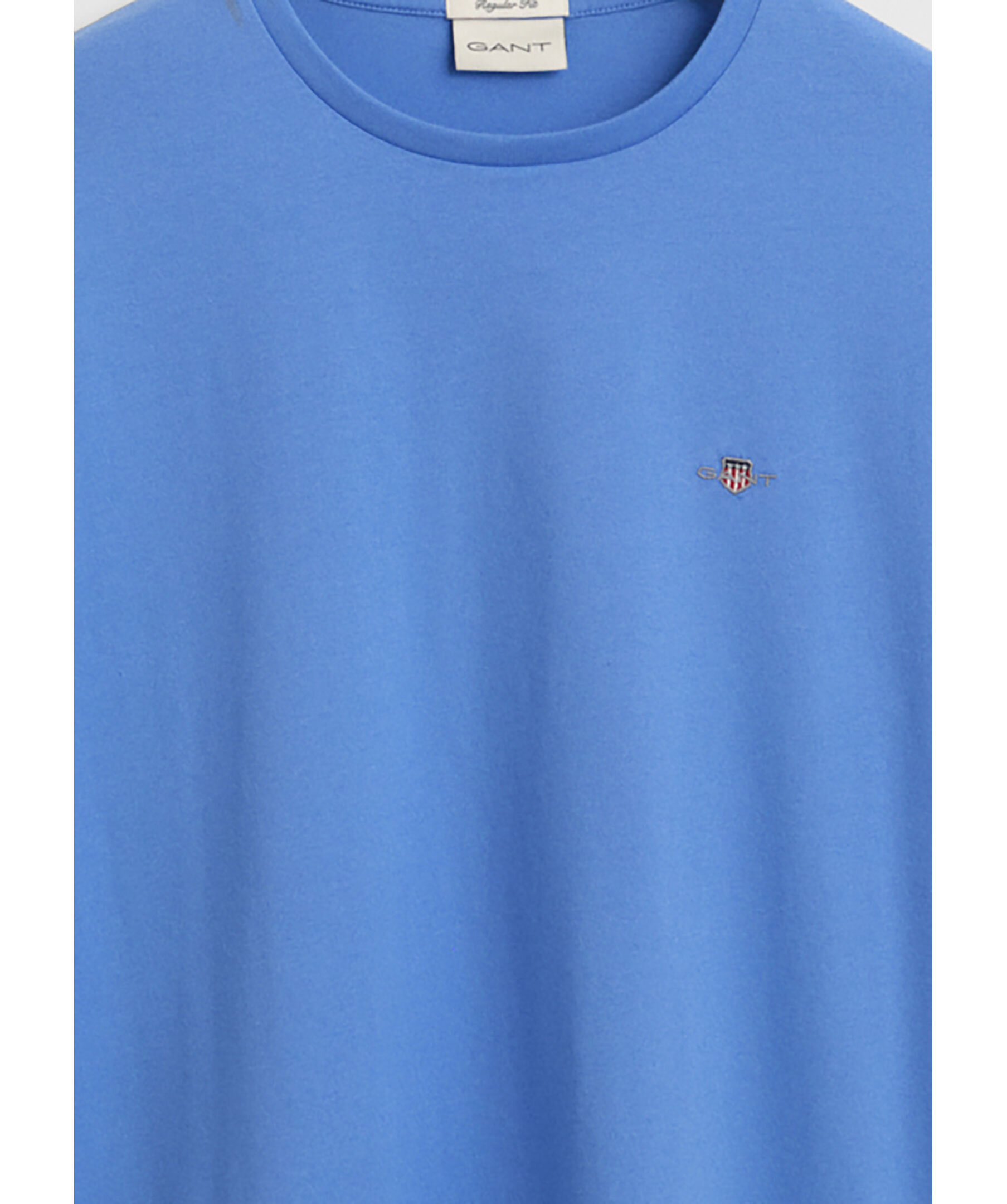 Blå T-shirt från Gant. T-shirten har ribbad rund krage, liten broderad logotyp på vänster bröst och är tillverkad av 100% bomull.