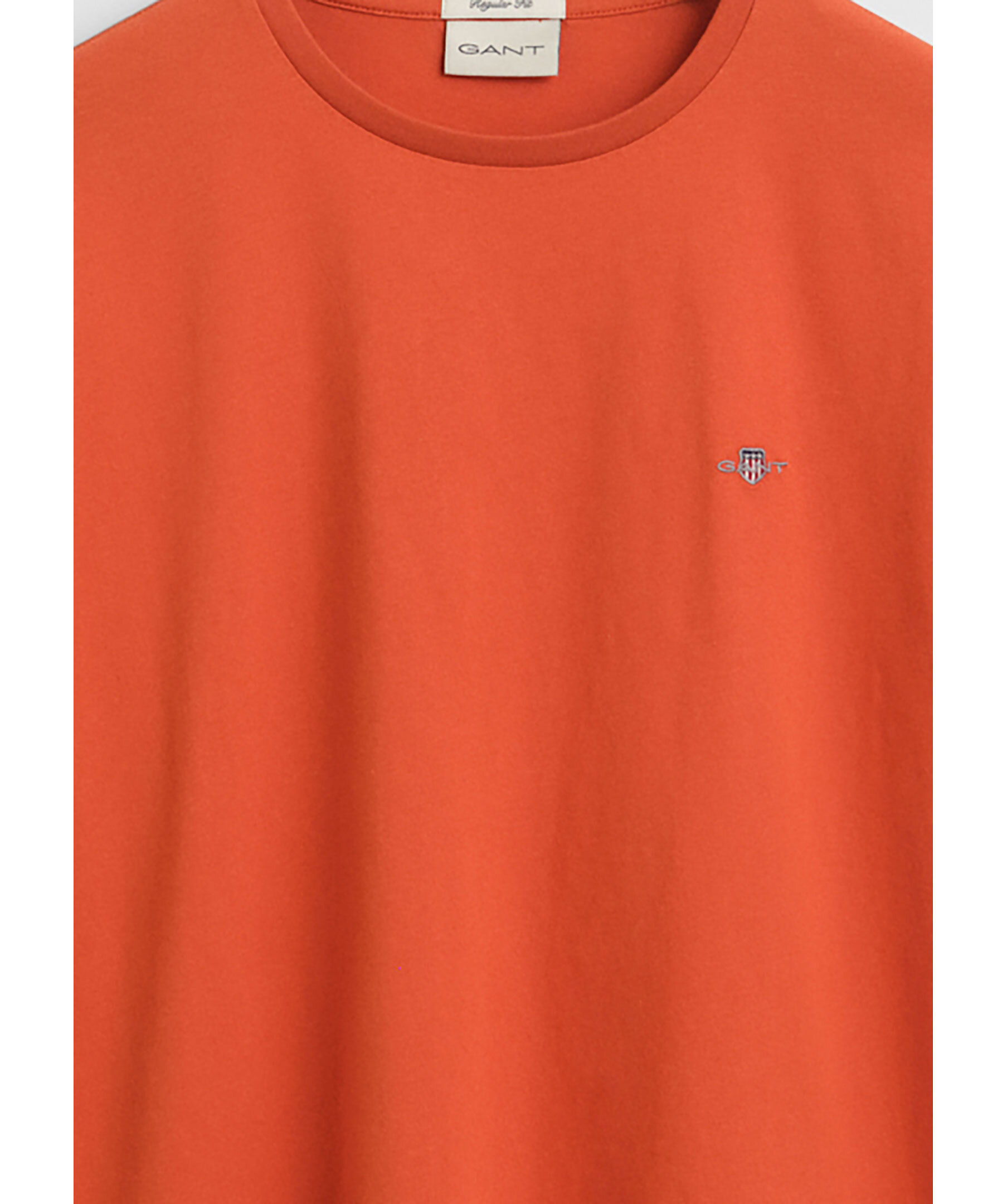 Orange T-shirt från Gant. T-shirten har ribbad rund krage, liten broderad logotyp på vänster bröst och är tillverkad av 100% bomull.