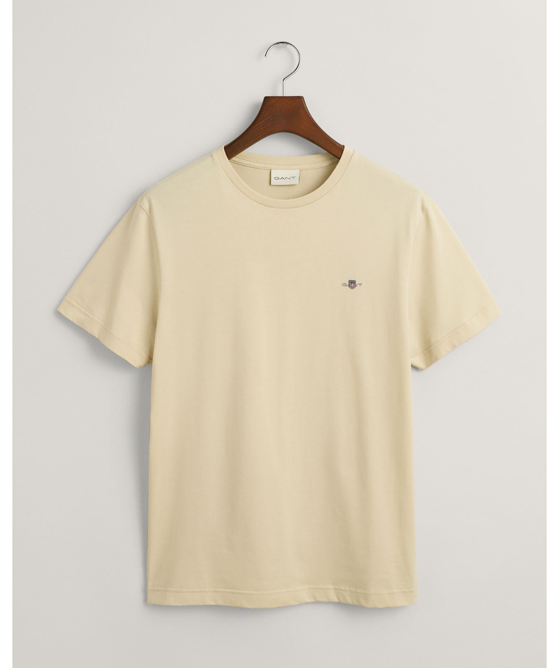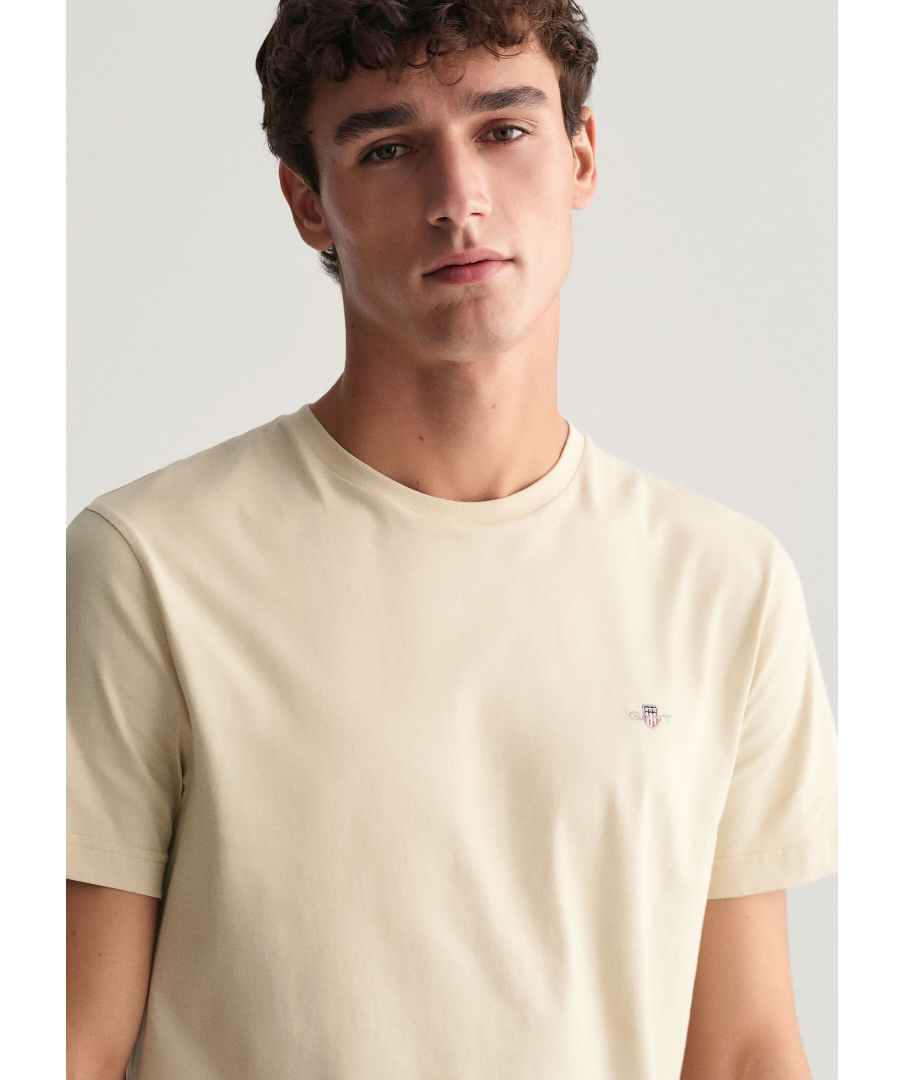 Beige t-shirt med en liten sköldlogotyp broderad på bröstet, gjord i bomull med en fin ribbstickning i halsringningen för ultimat komfort. Ett fantastiskt basplagg du kan använda separat eller under en stickad tröja, jacka eller matcha med jeans, chinos eller shorts.