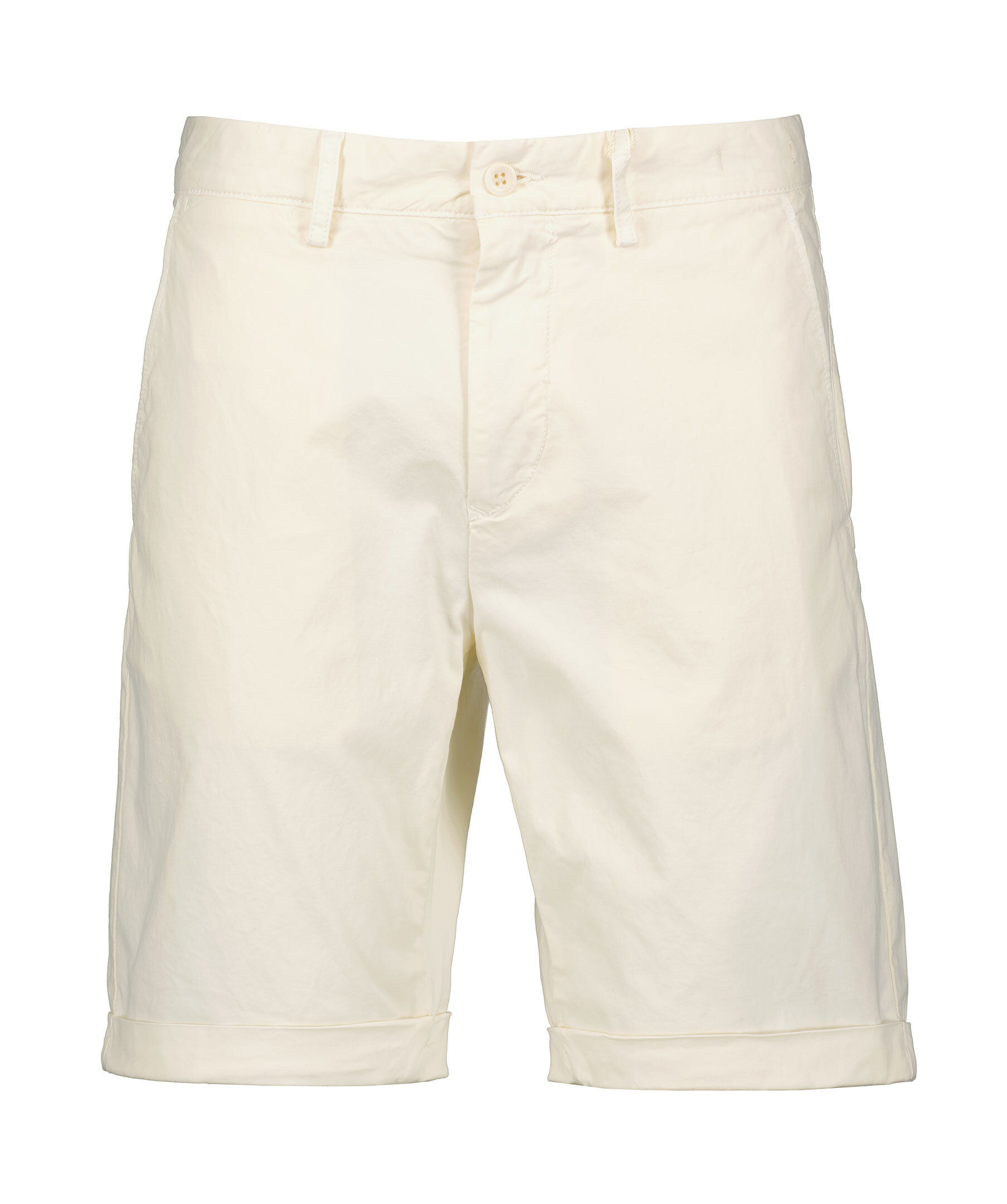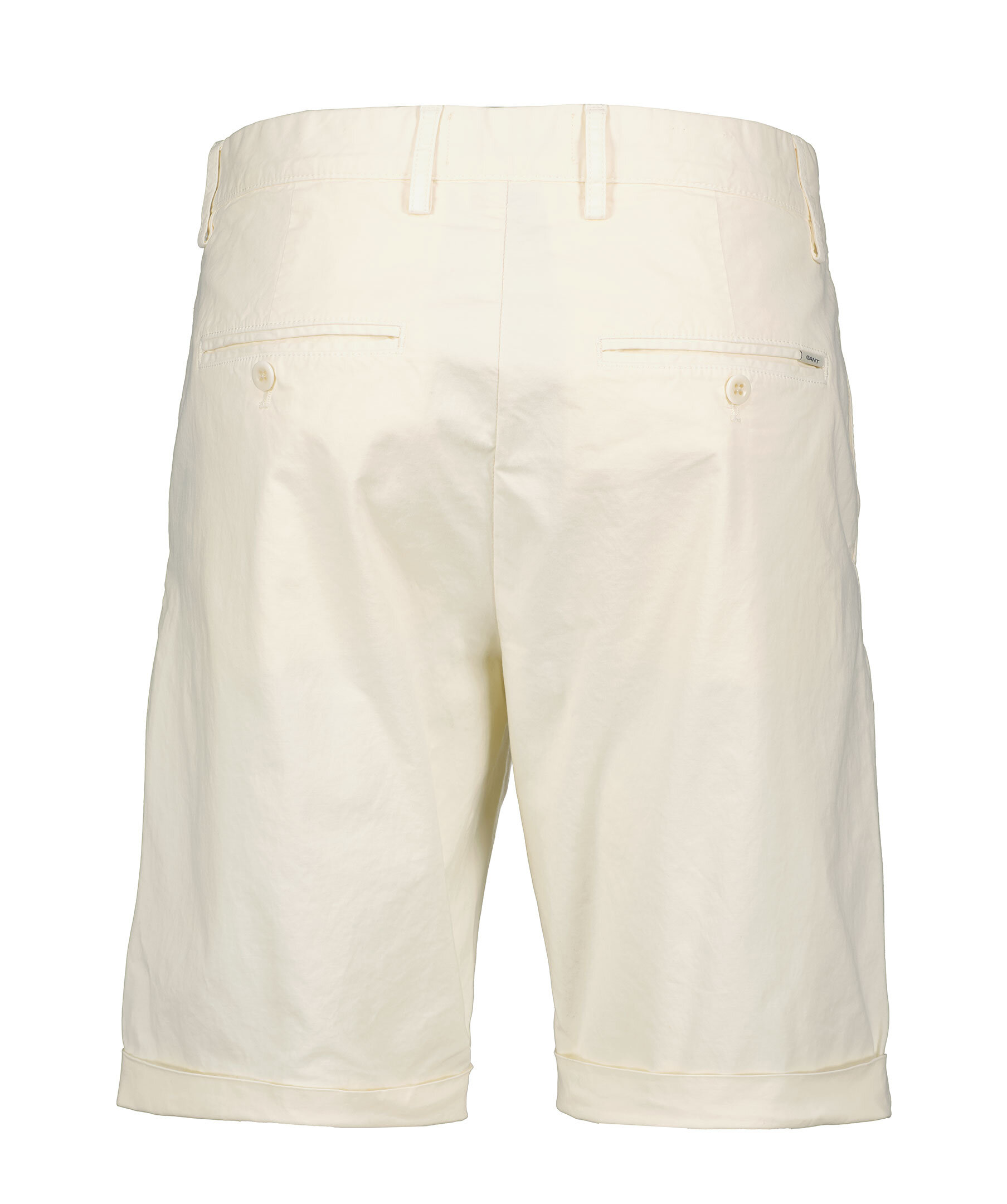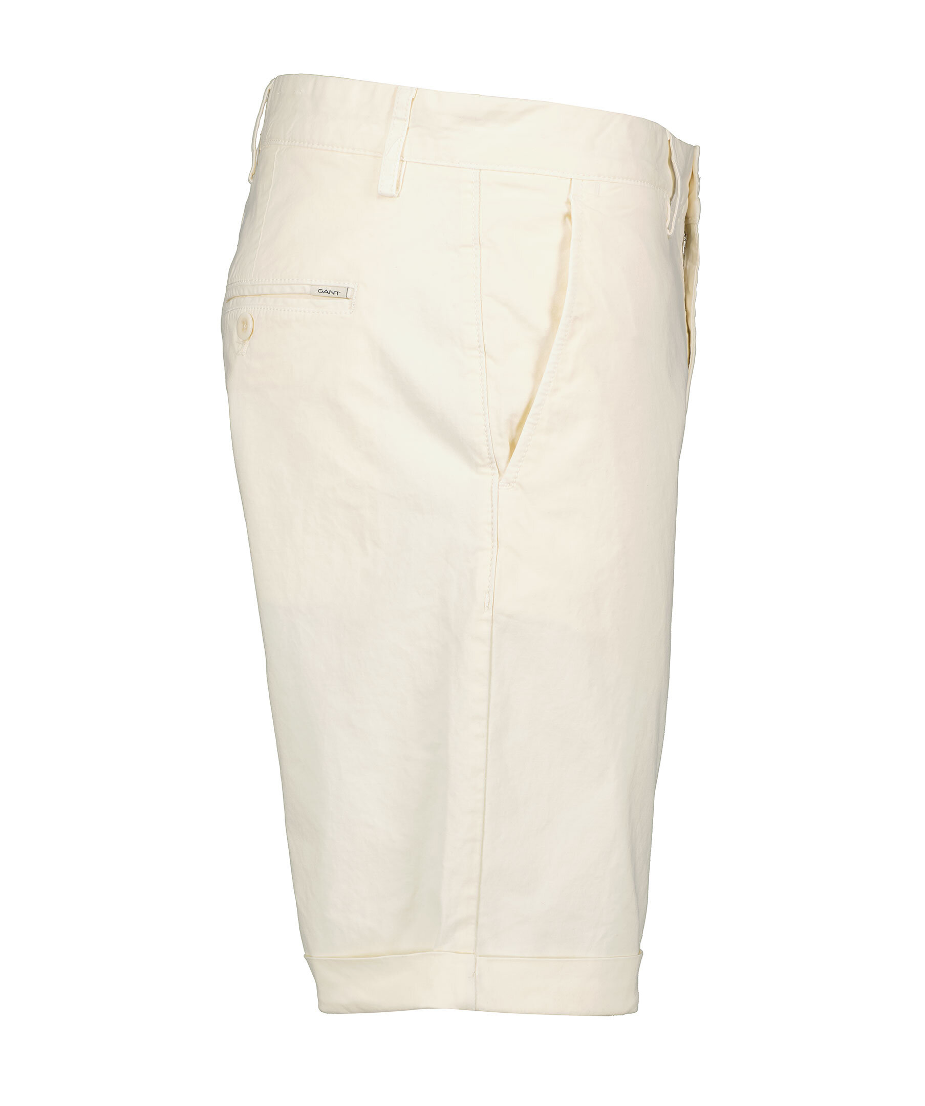 Krämvita chinos-shorts från Gant. Skräddarsydda i en fin bomullstwill samt en stretchig bomullsblandning. Mellanhög midja, knappstängning, snedställda fickor fram, raka bakfickor med knapp, bälteshällor samt uppvikta ben. Normal passform.