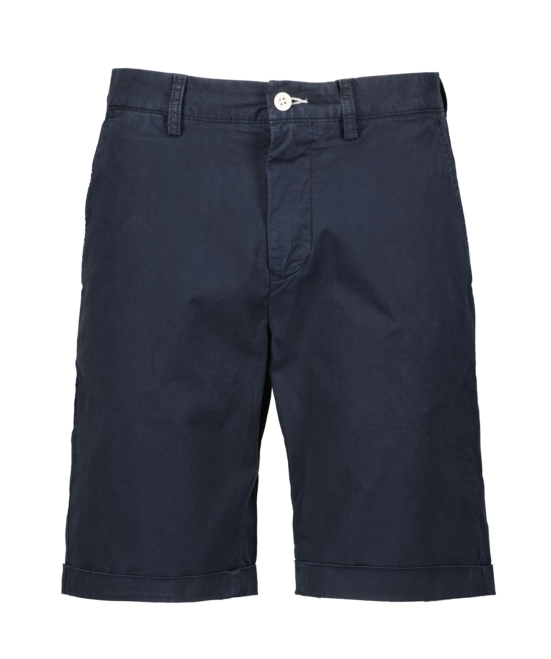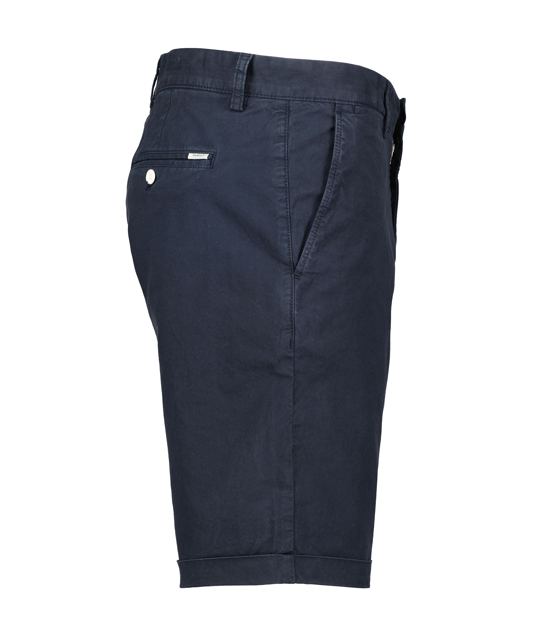 Mörkblå chinos-shorts från Gant. Skräddarsydda i en fin bomullstwill samt en stretchig bomullsblandning. Mellanhög midja, knappstängning, snedställda fickor fram, raka bakfickor med knapp, bälteshällor samt uppvikta ben. Normal passform.