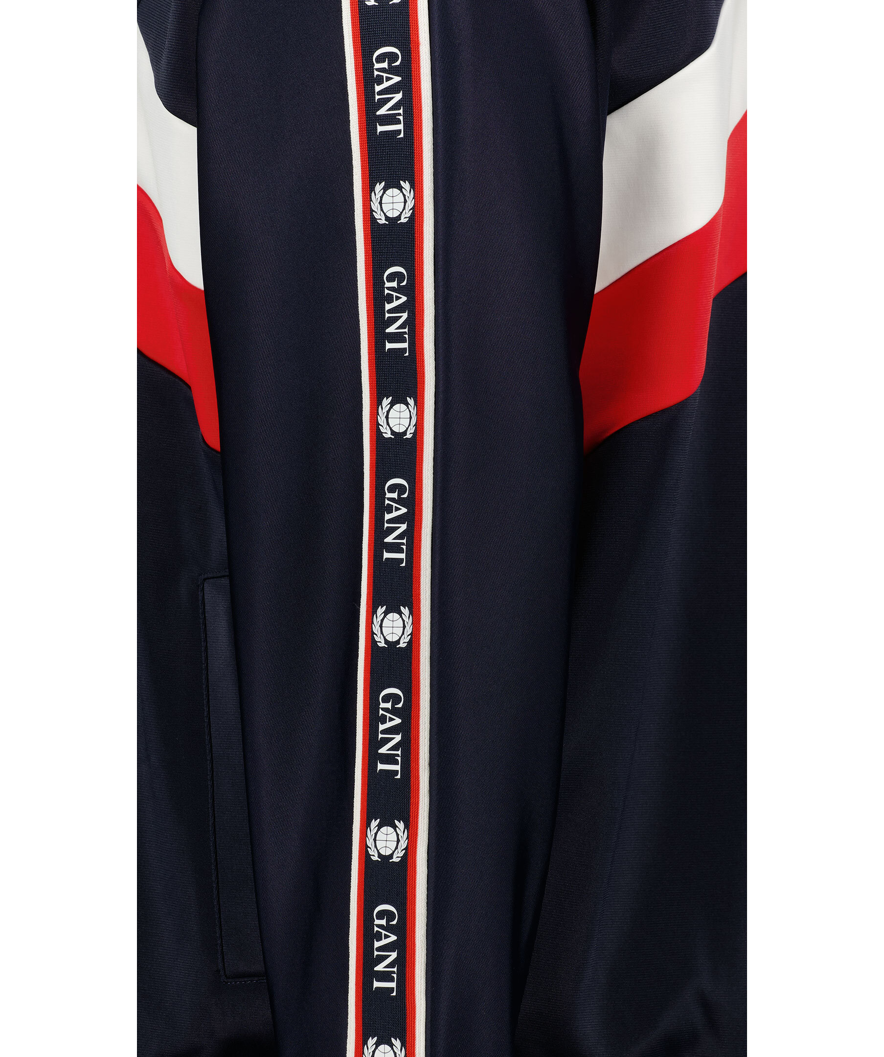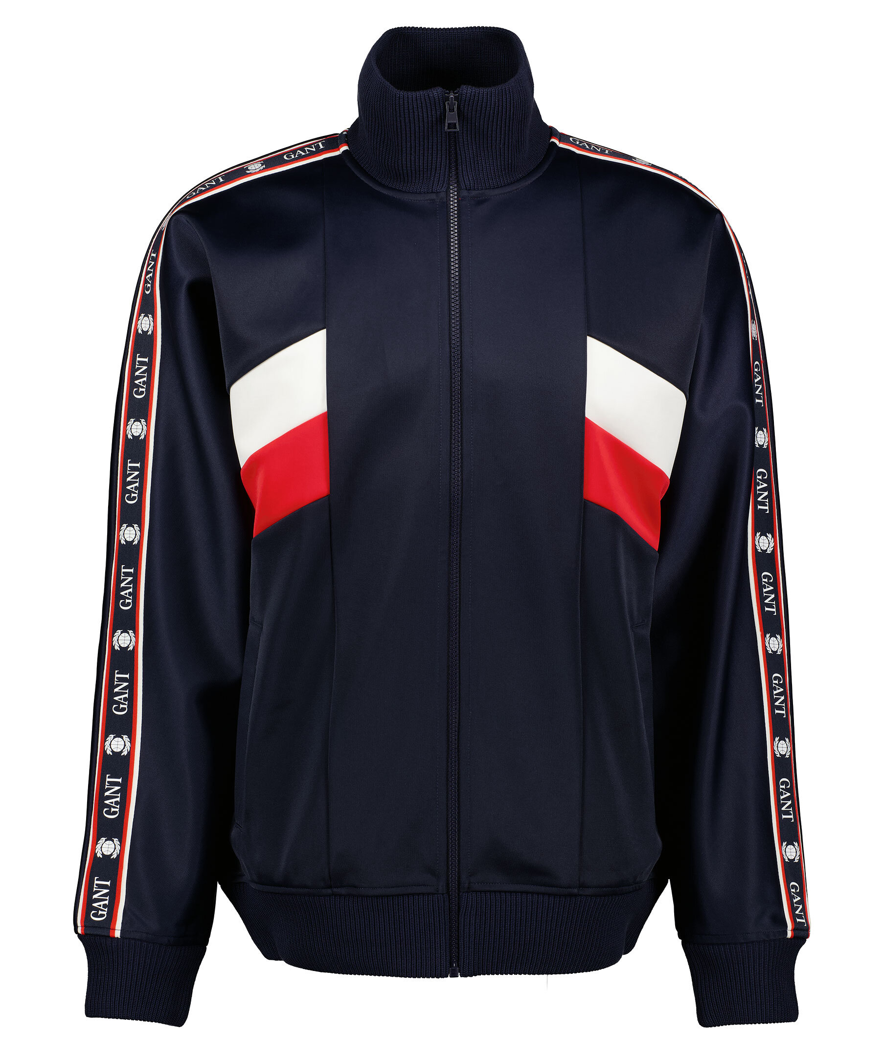 Marinblå tracksuitjacka med en relaxed fit, fladdermusärm och rymlig silhuett. Rivärer med logotyper över axlar och ärmar samt insydda färgblock.Dragkedjestängning fram, två framfickor och ribbstickade muddar. Kombinera med matchande tracksuitbyxor för en helsportig outfit.