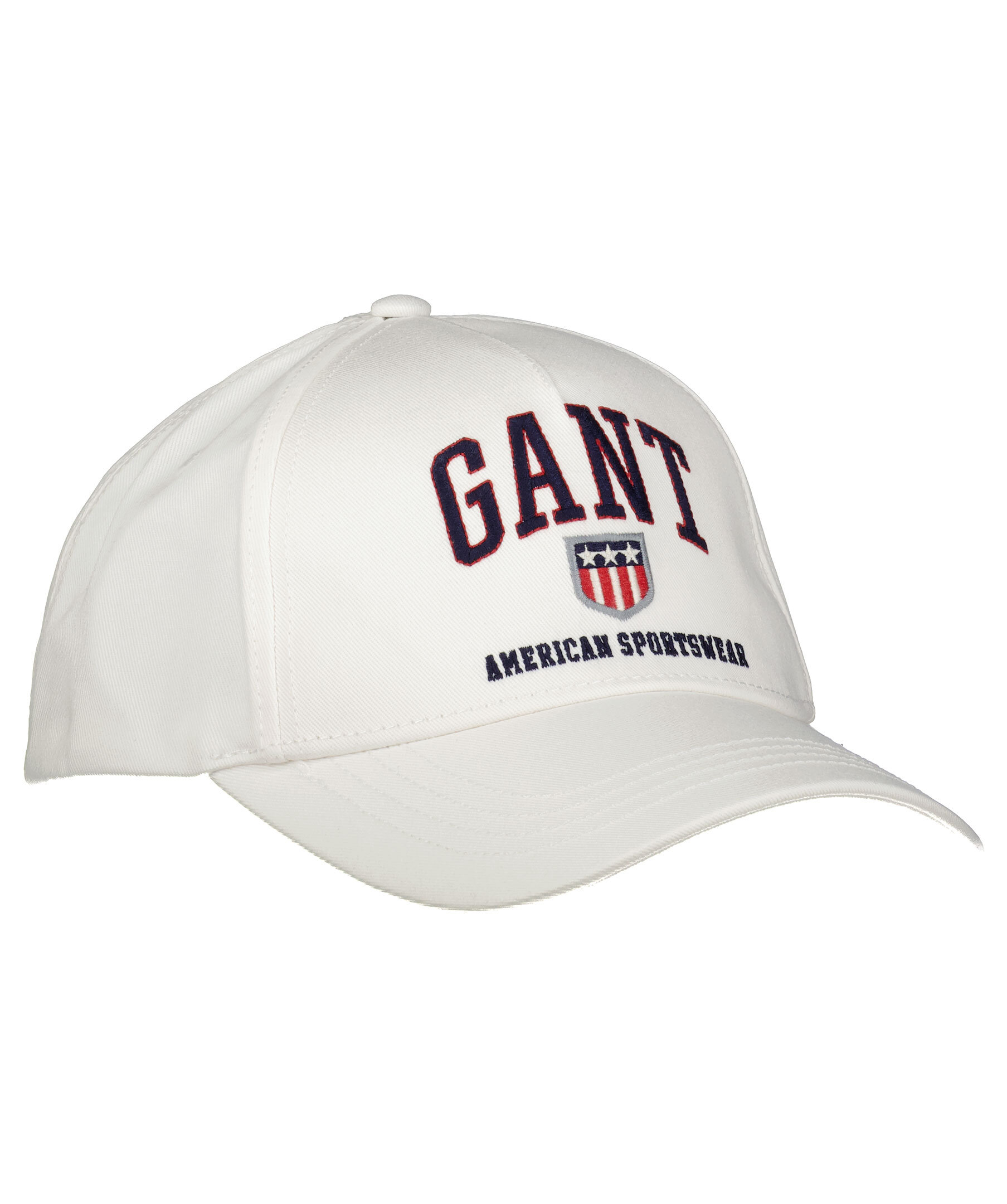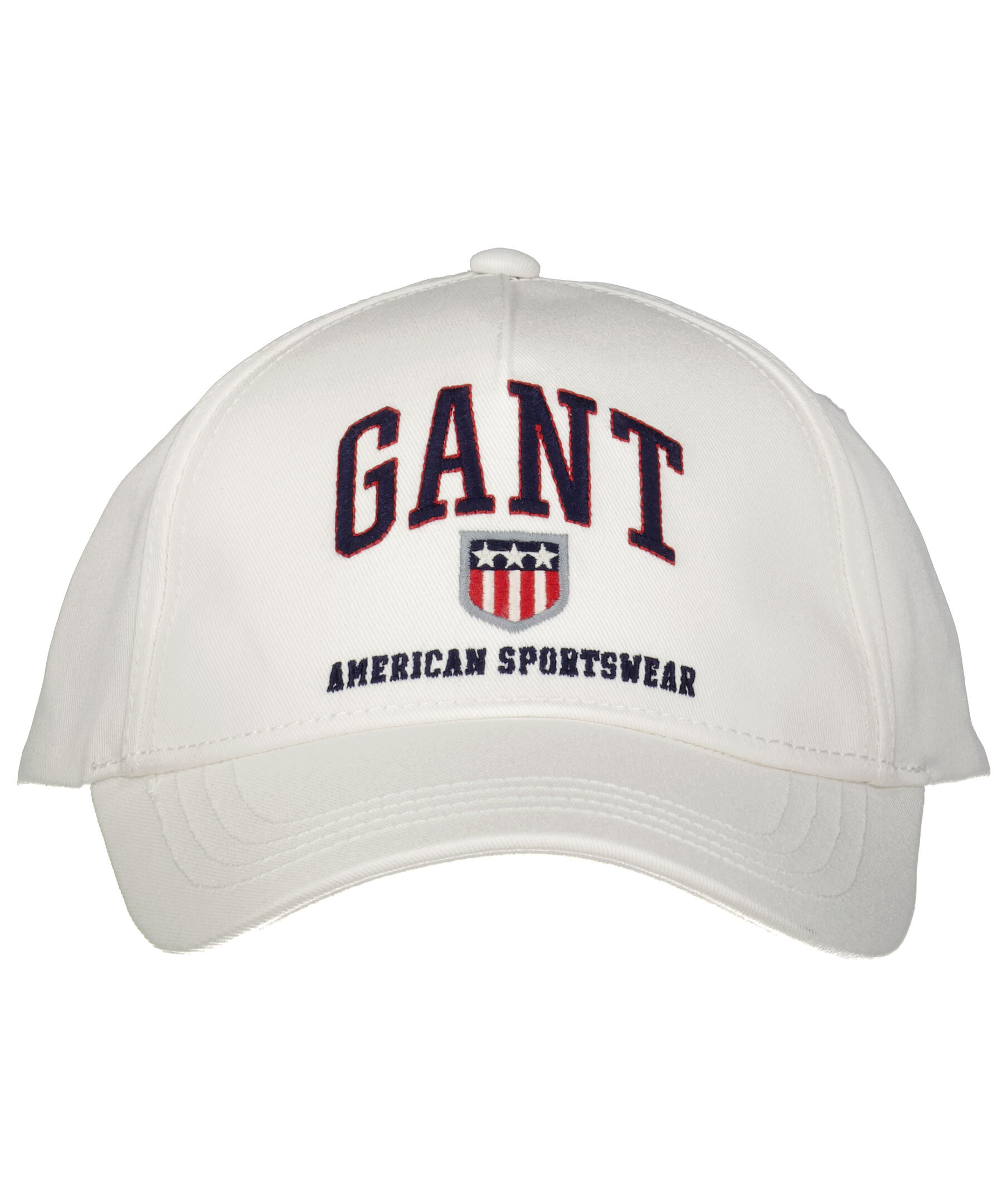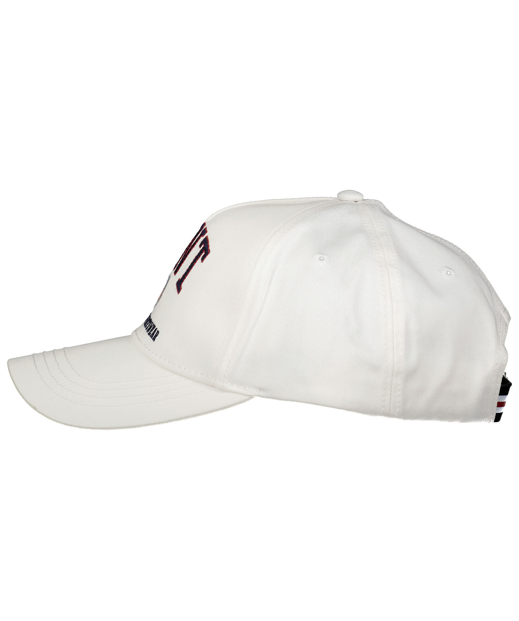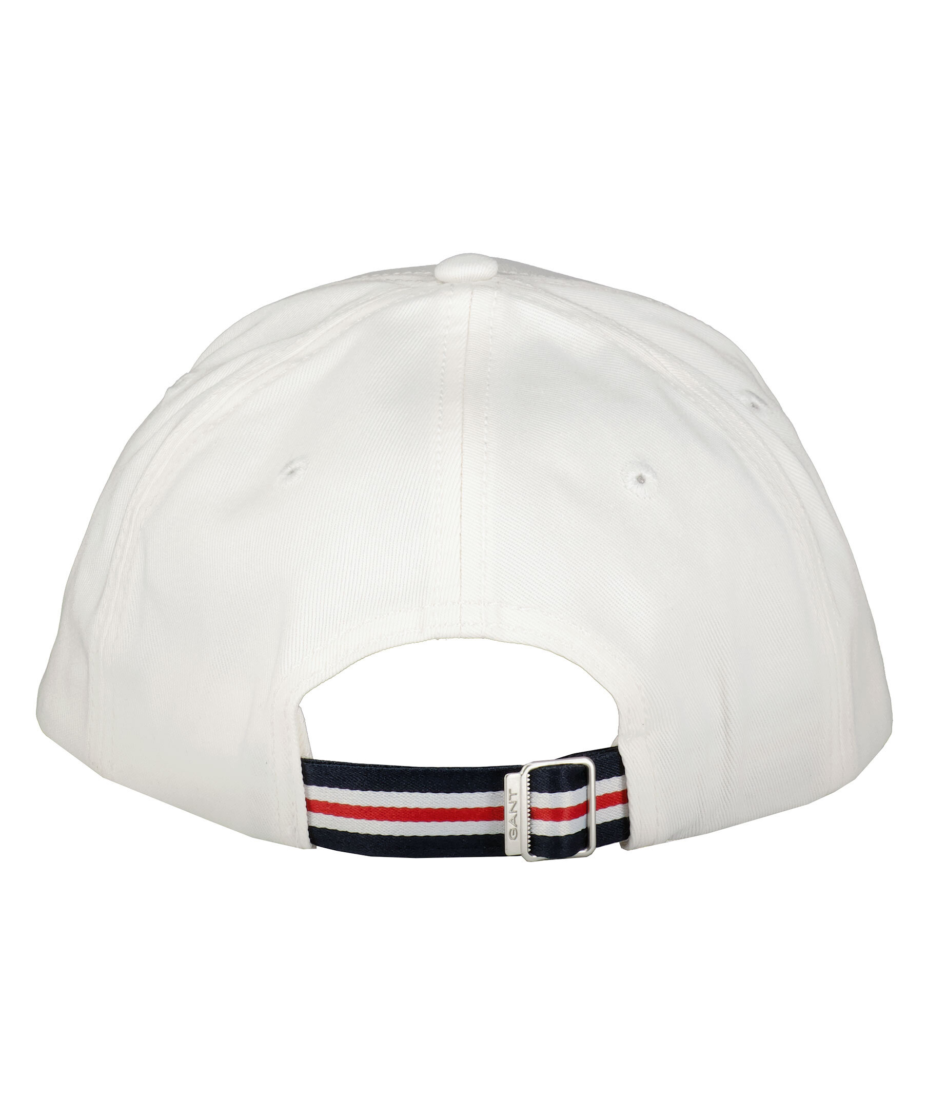 Vit keps från Gant. Retro inspirerad logotyp med den klassiska Gant-flaggan framtill och randigt reglerbart spänne baktill.