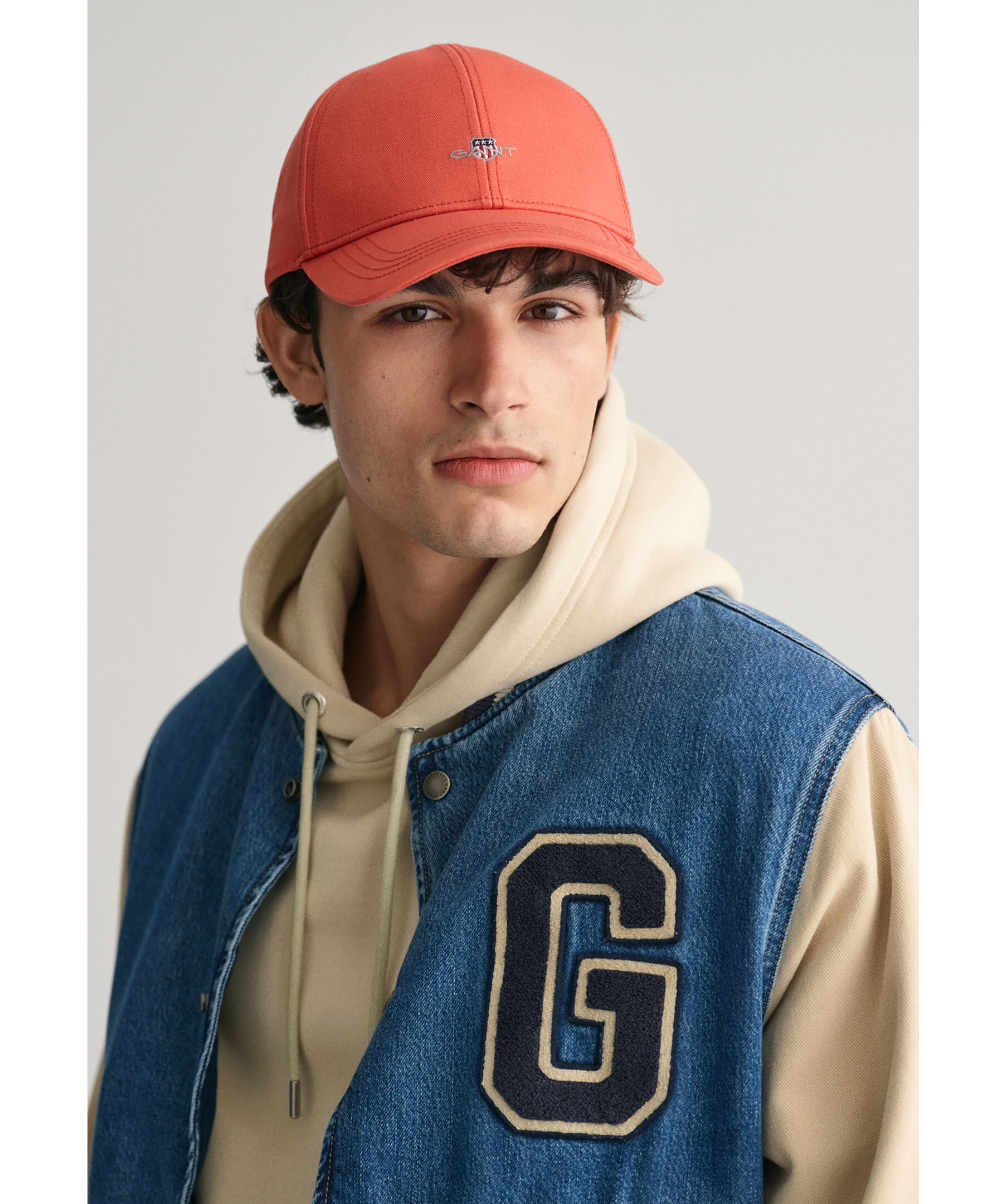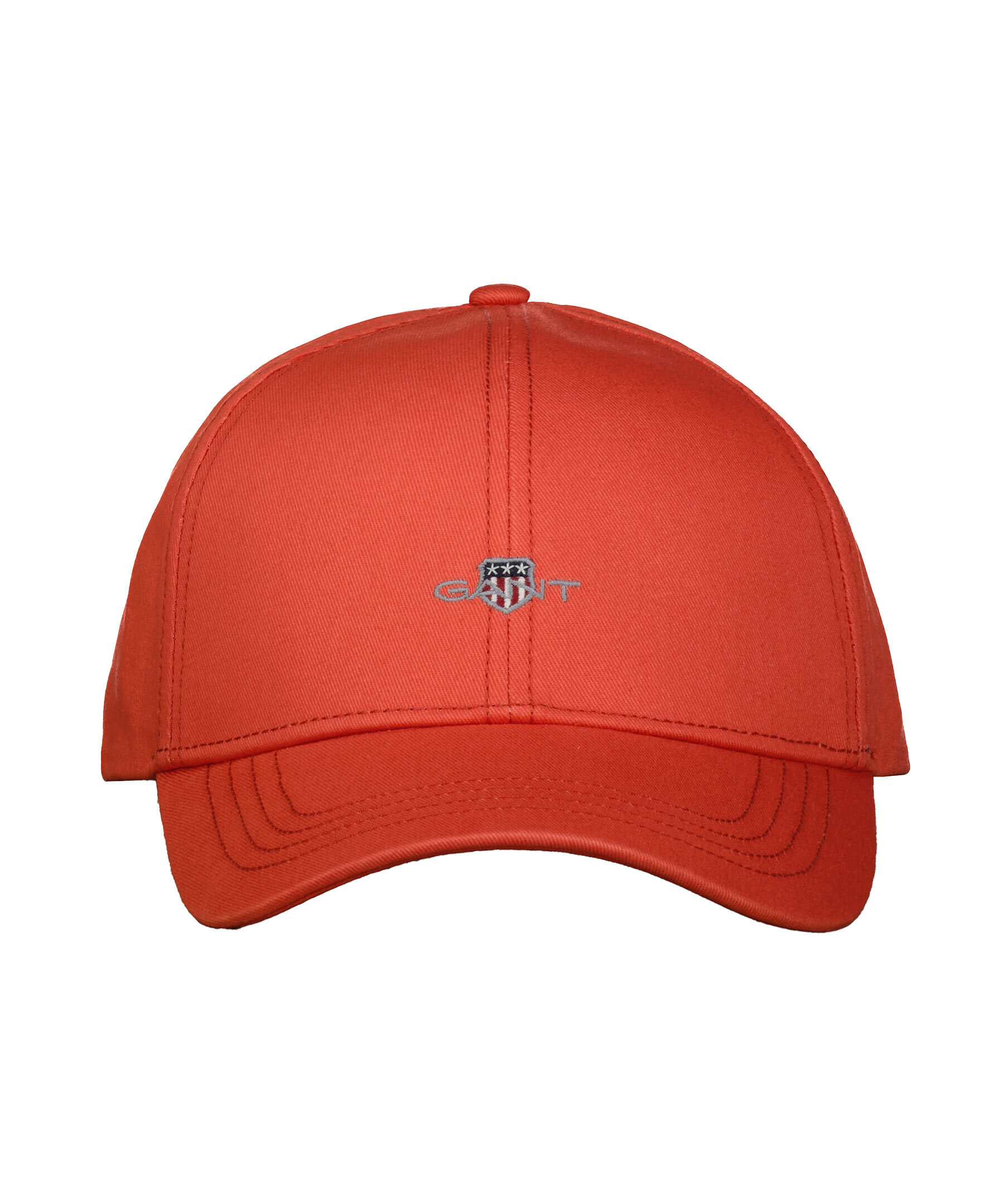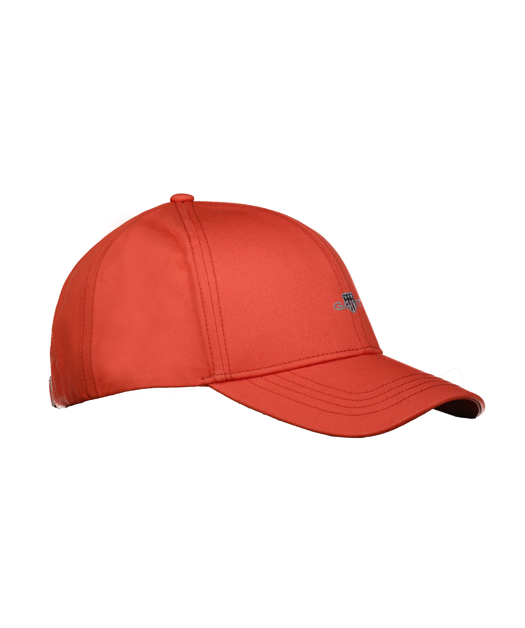Korallröd keps från Gant. Sportig keps med sex paneler och en normal och justerbar passform. Den är broderad med deras klassiska sköldlogotyp i liten skala på framsidan och präglad med deras GANT-logotyp på metallspännet i nacken. Tillverkad i 100% bomull.