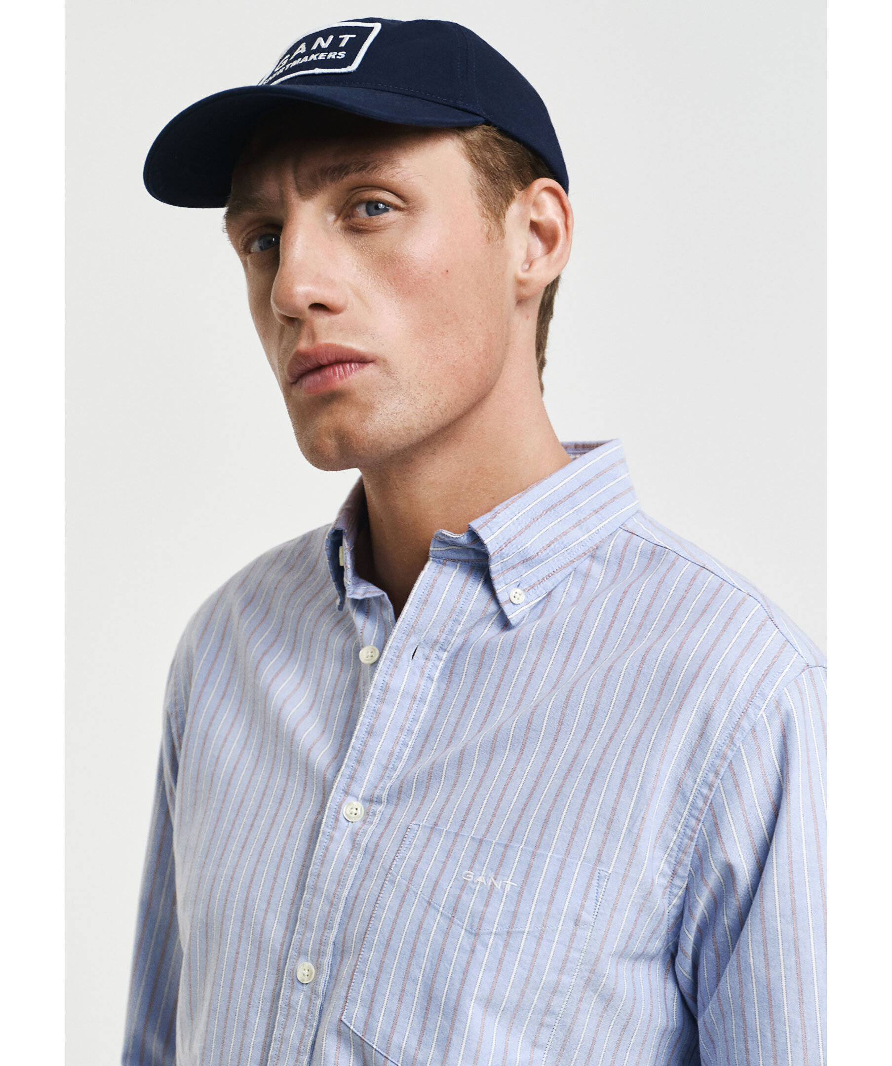 Mörkblå keps från Gant. Kepsen är inspirerad av vintageplagg från GANT och har sex paneler, justerbar rem baktill med graverat GANT-metallspänne samt ett GANT-märke broderat på framsidan. Tillverkad i ekologisk bomull.