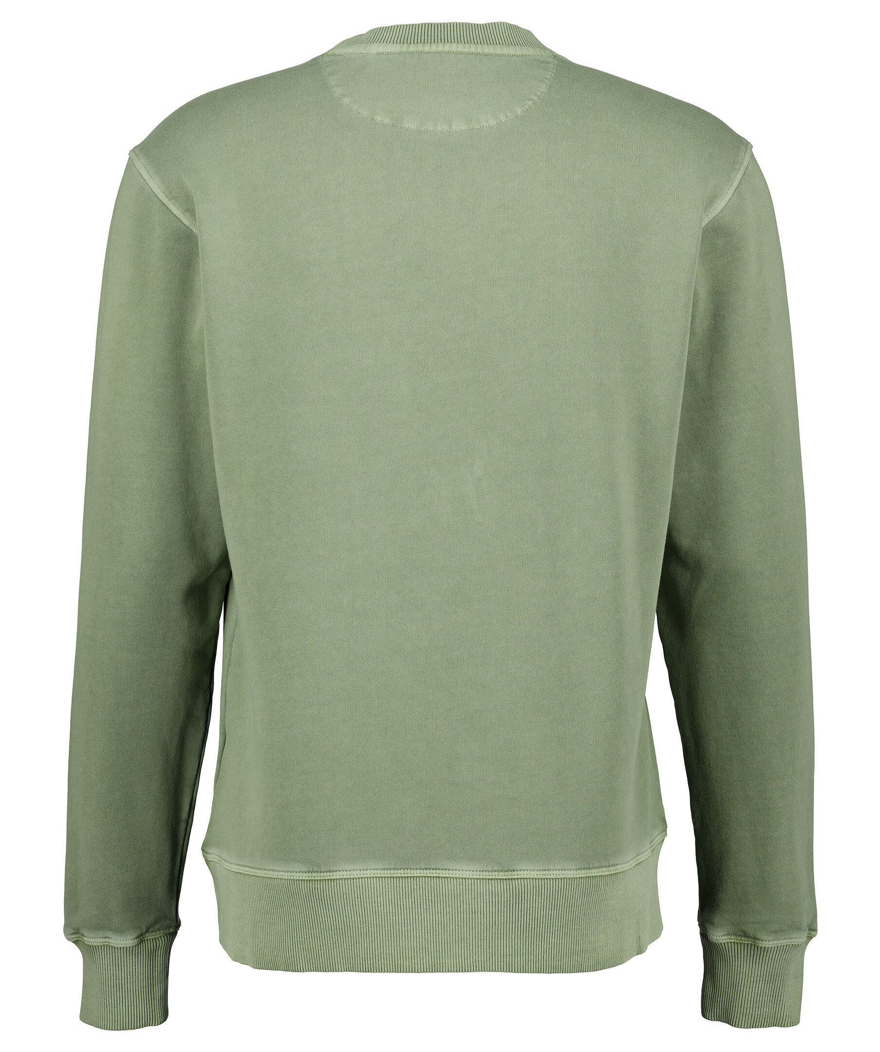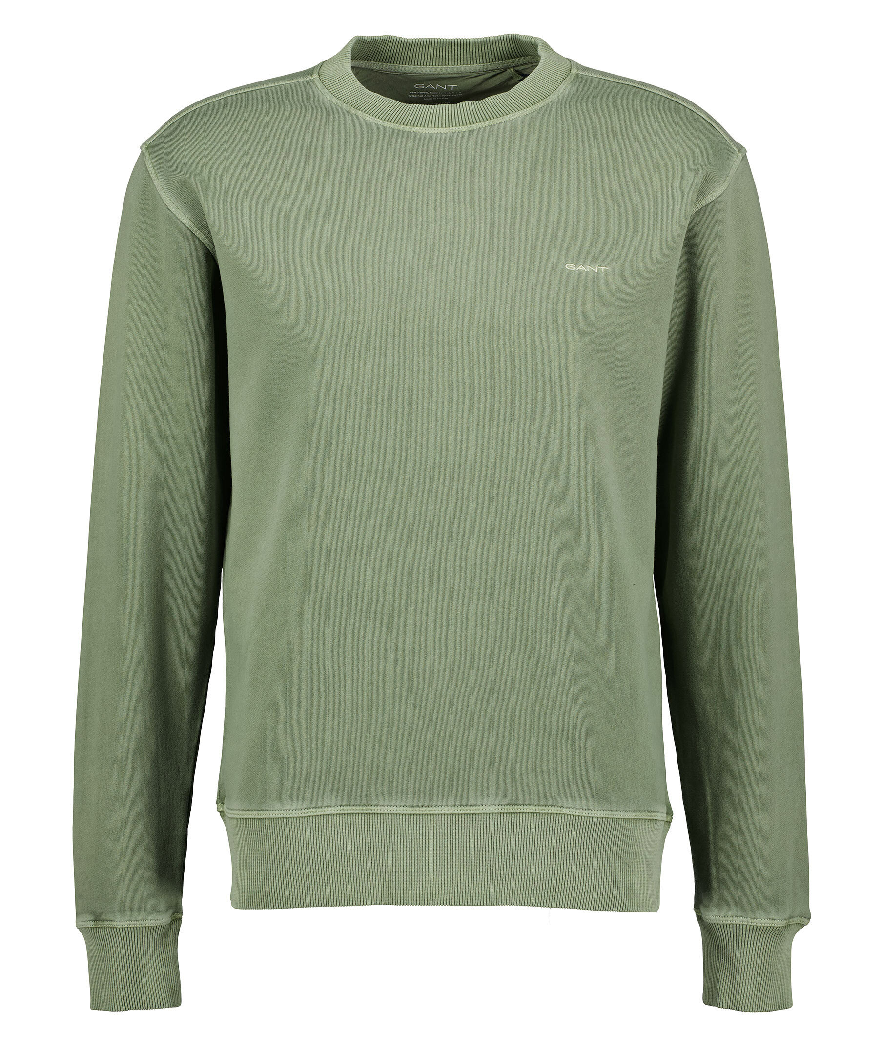 Grön sweatshirt från Gant med blekt finish. Broderad logotyp på vänster bröst. Ribbstickade muddar vid ärm- och plaggslut, samt ringningen. Tillverkad i 100% bomull.